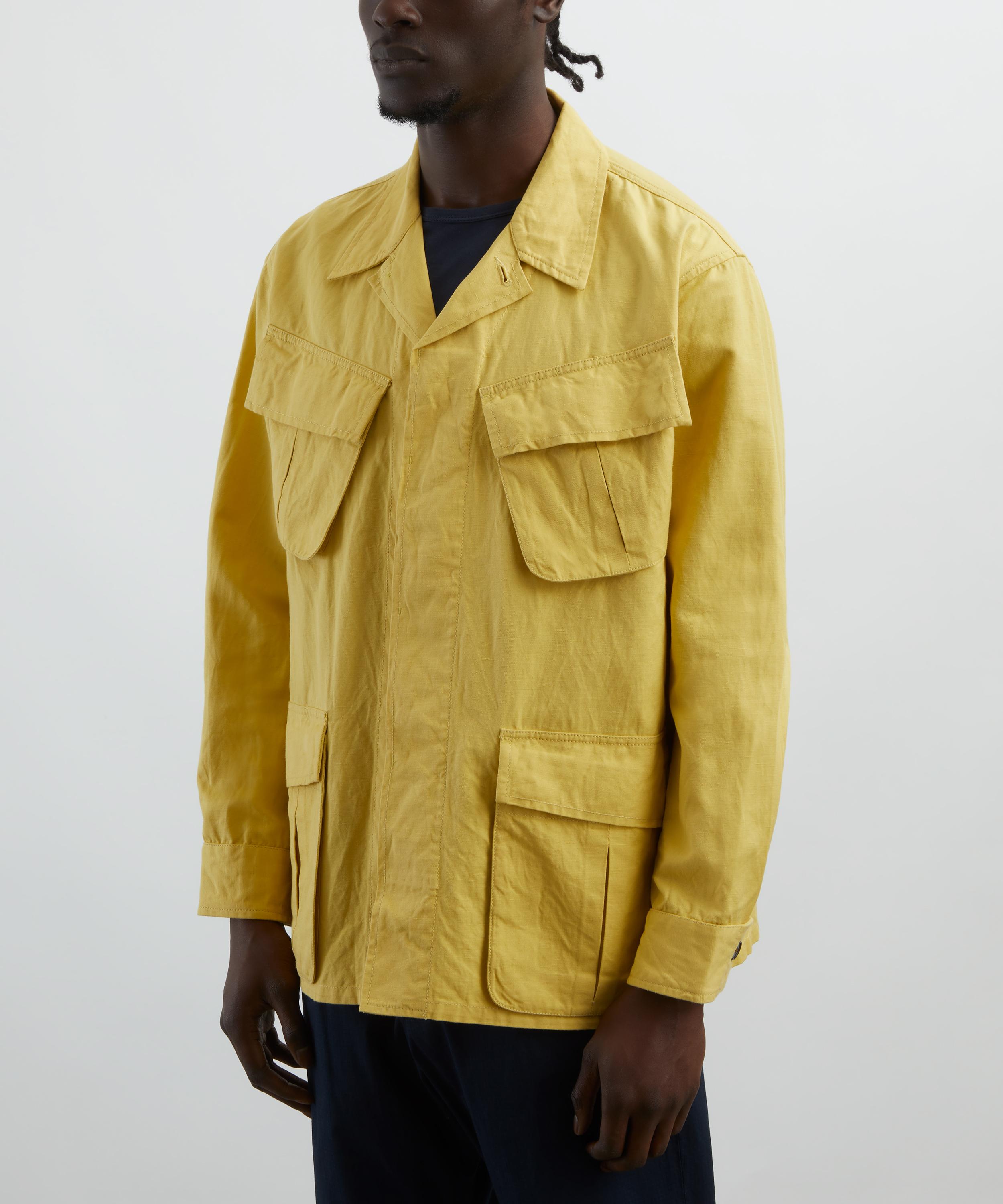 Crafted from a breathable linen-cotton blend, the Jungle Jacket is inspired by classic U.S. Army tropical uniforms. Designed for a relaxed fit, it features a notched collar and multiple pockets, delivering a timeless, utilitarian look that works across seasons.