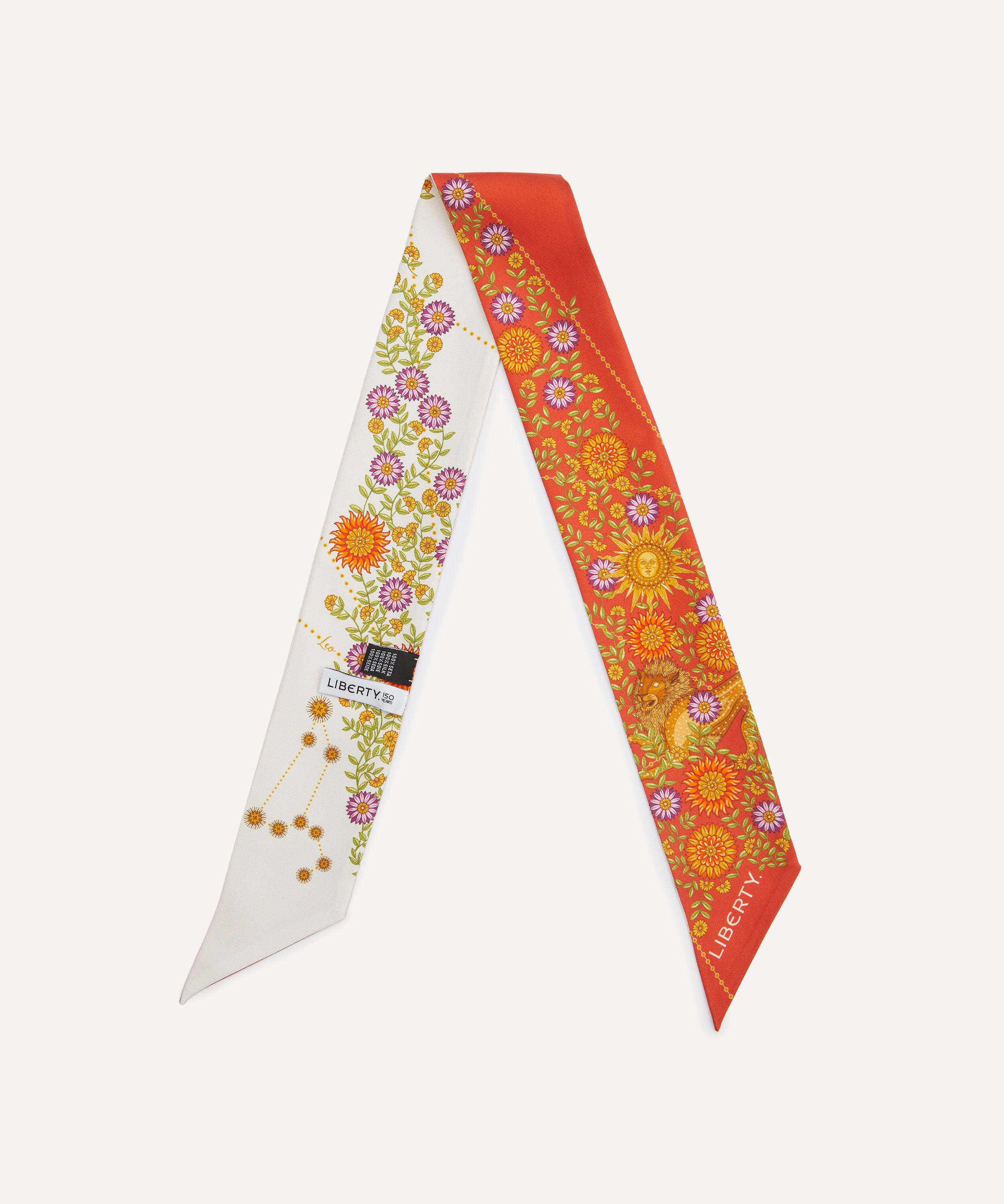 Chart your course through the stars and finish your look with Liberty’s Leo Ribbonette silk scarf – a celestial tapestry inspired by the age-old enchantment of the zodiac.