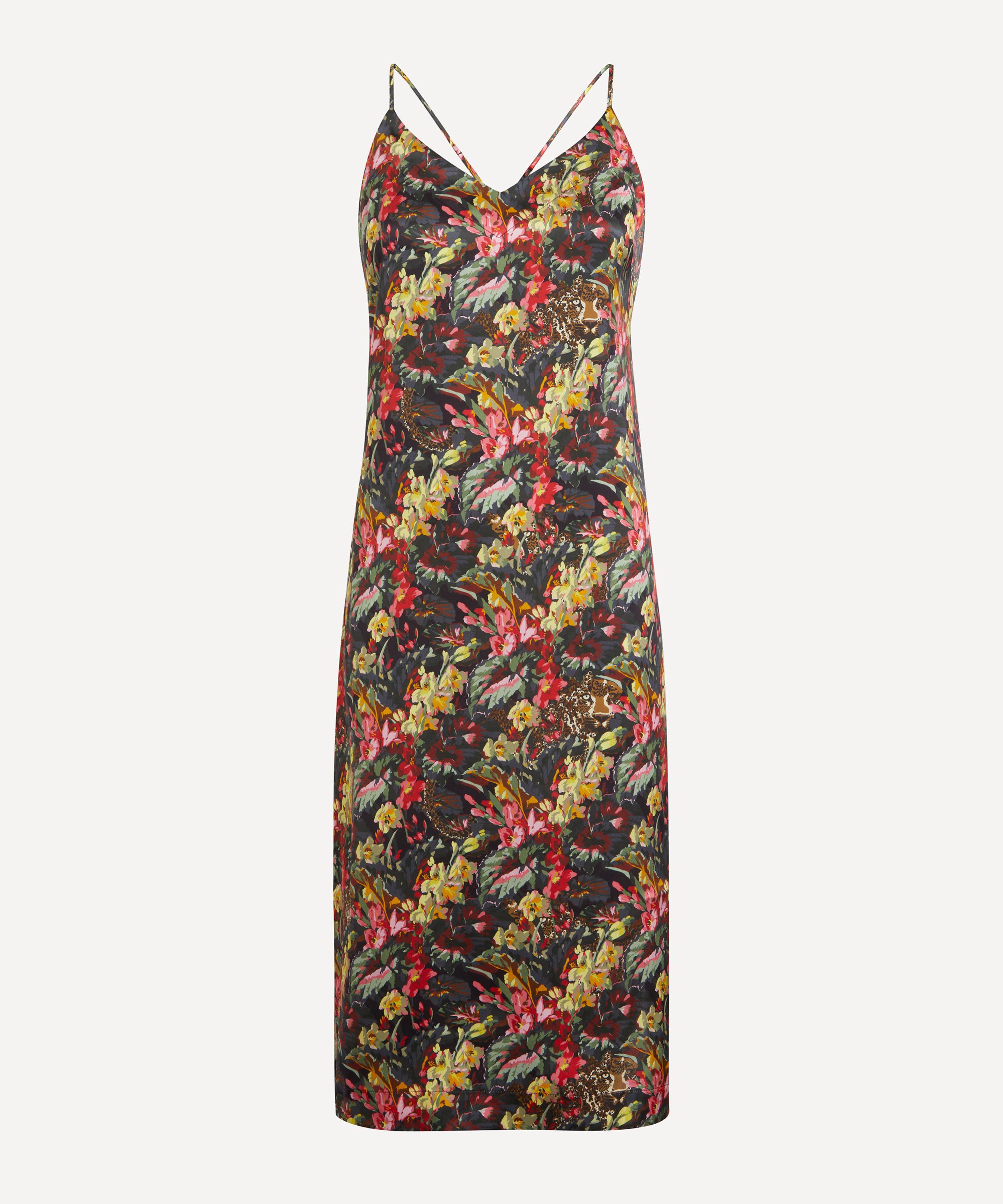 Expertly crafted from a sumptuously soft silk satin for fluid softness and lustre, showcasing adjustable straps which cross over at the back, it’s finished with our Leopard print: a bright and bold design featuring a leopard peering out from behind dense tropical florals.