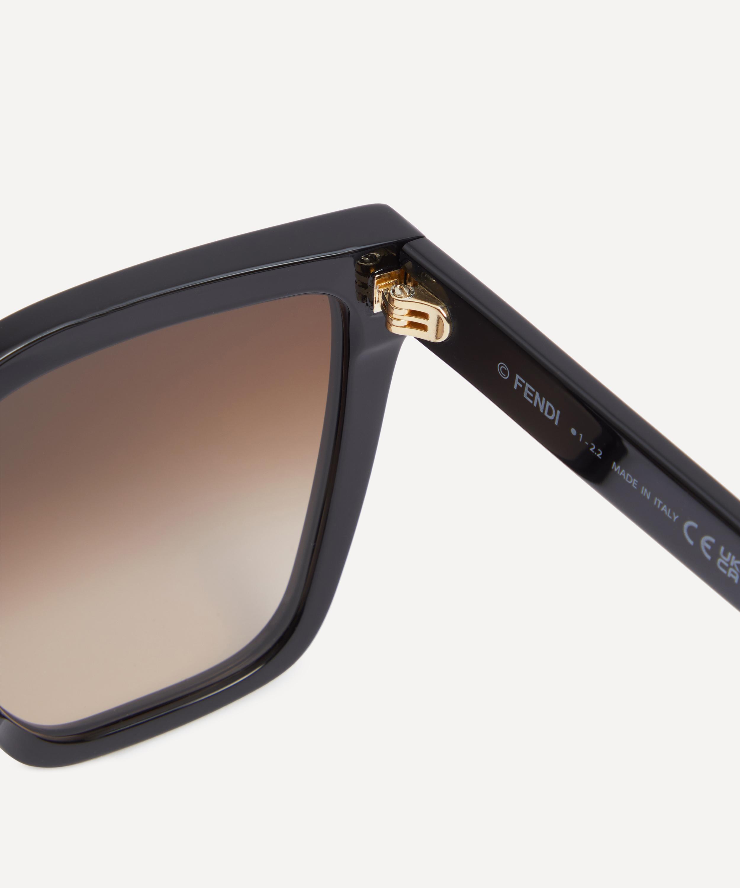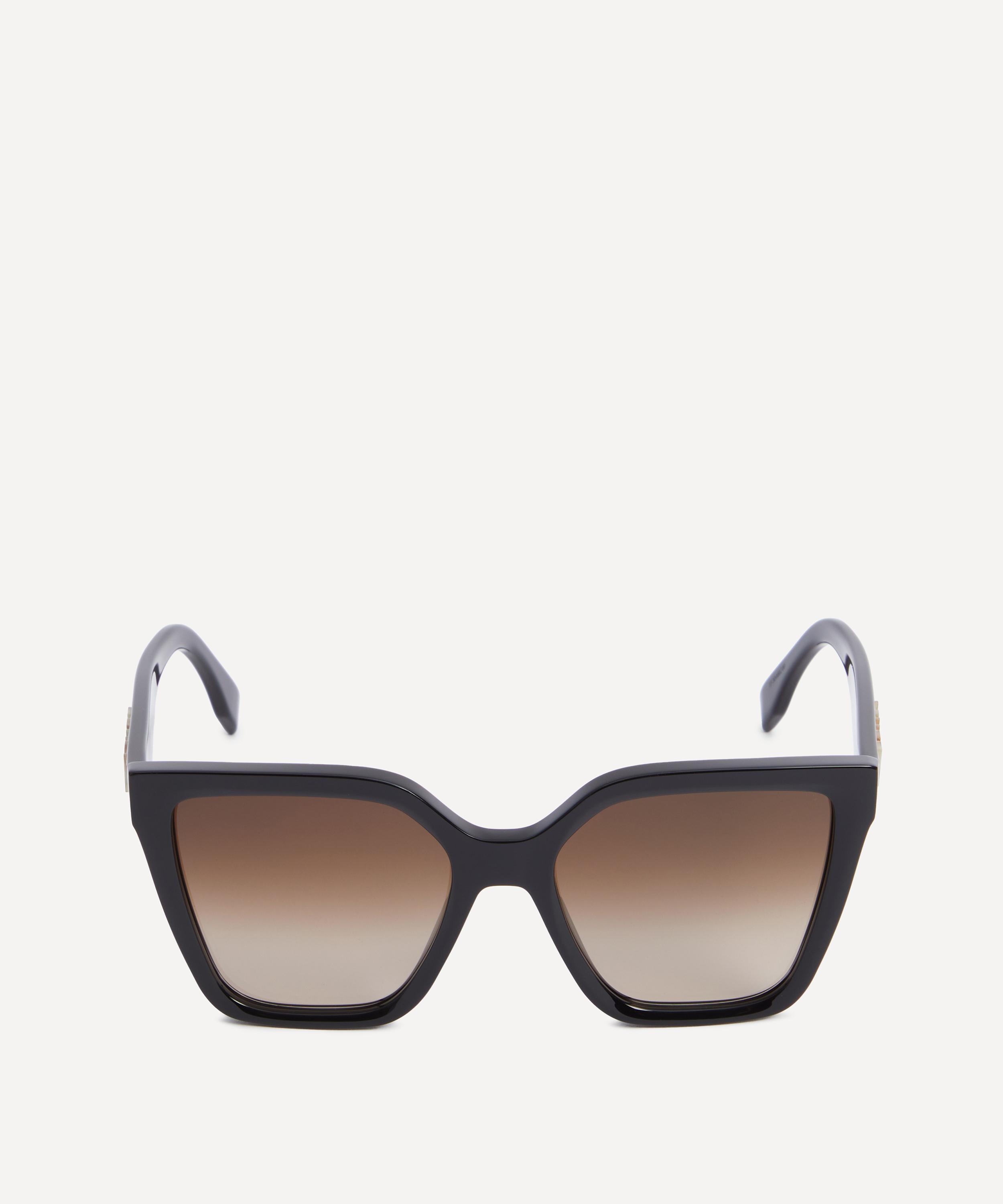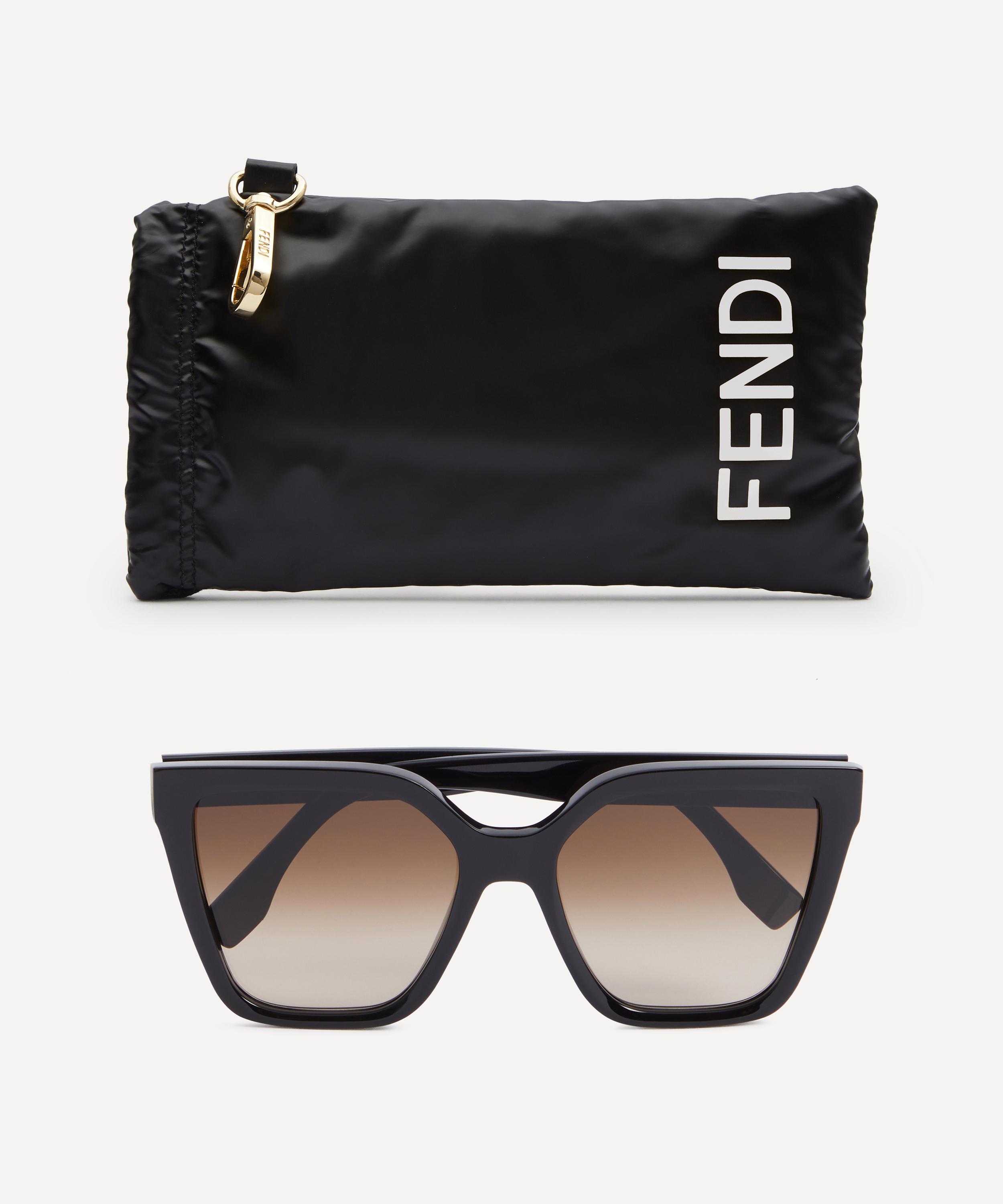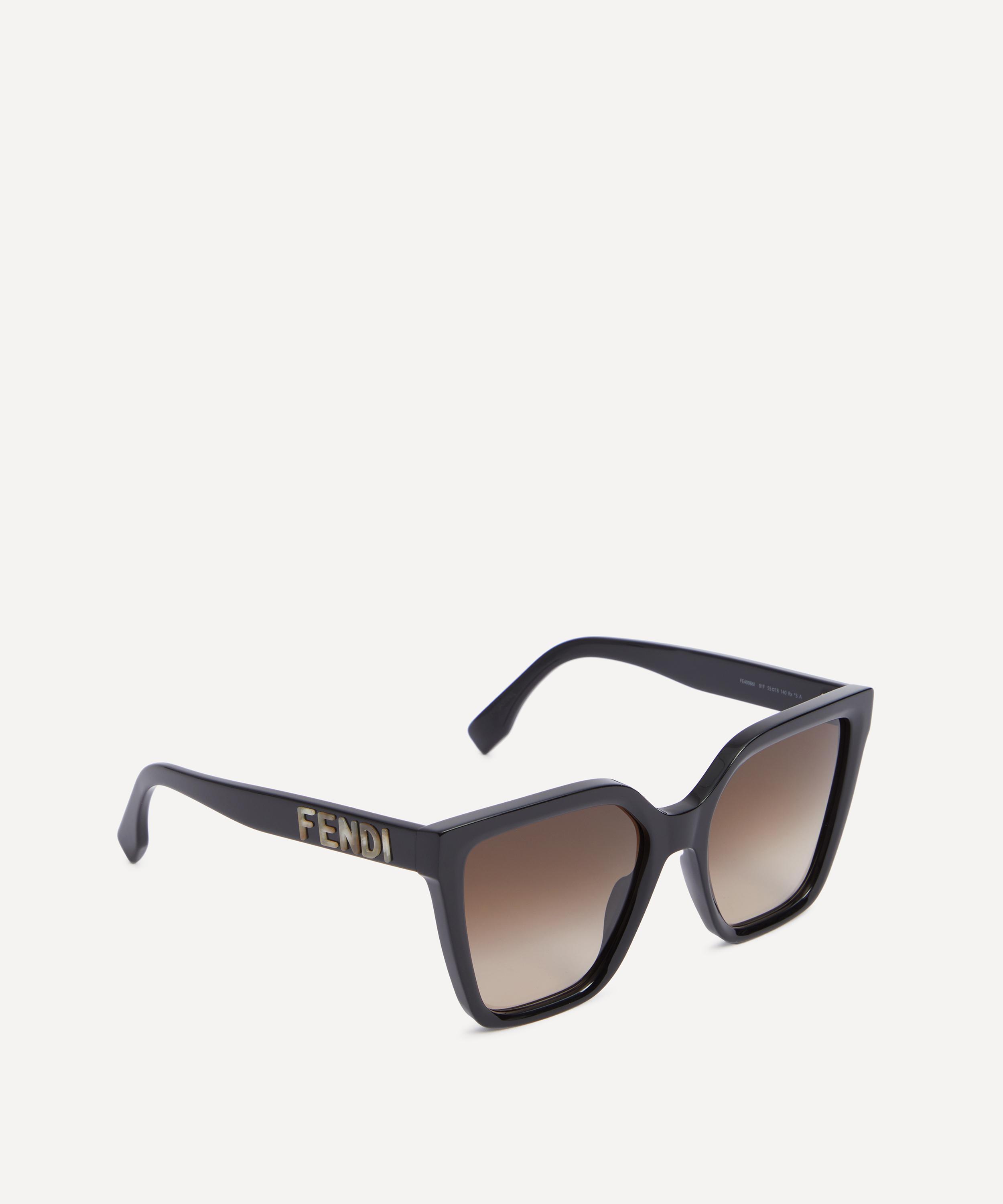 Reigning queen of statement sunglasses Fendi puts a cool, contemporary spin on a classic square silhouette. Crafted from glossy black acetate, these sunglasses are finished with brown gradient lenses and contrast logo lettering to the temples.