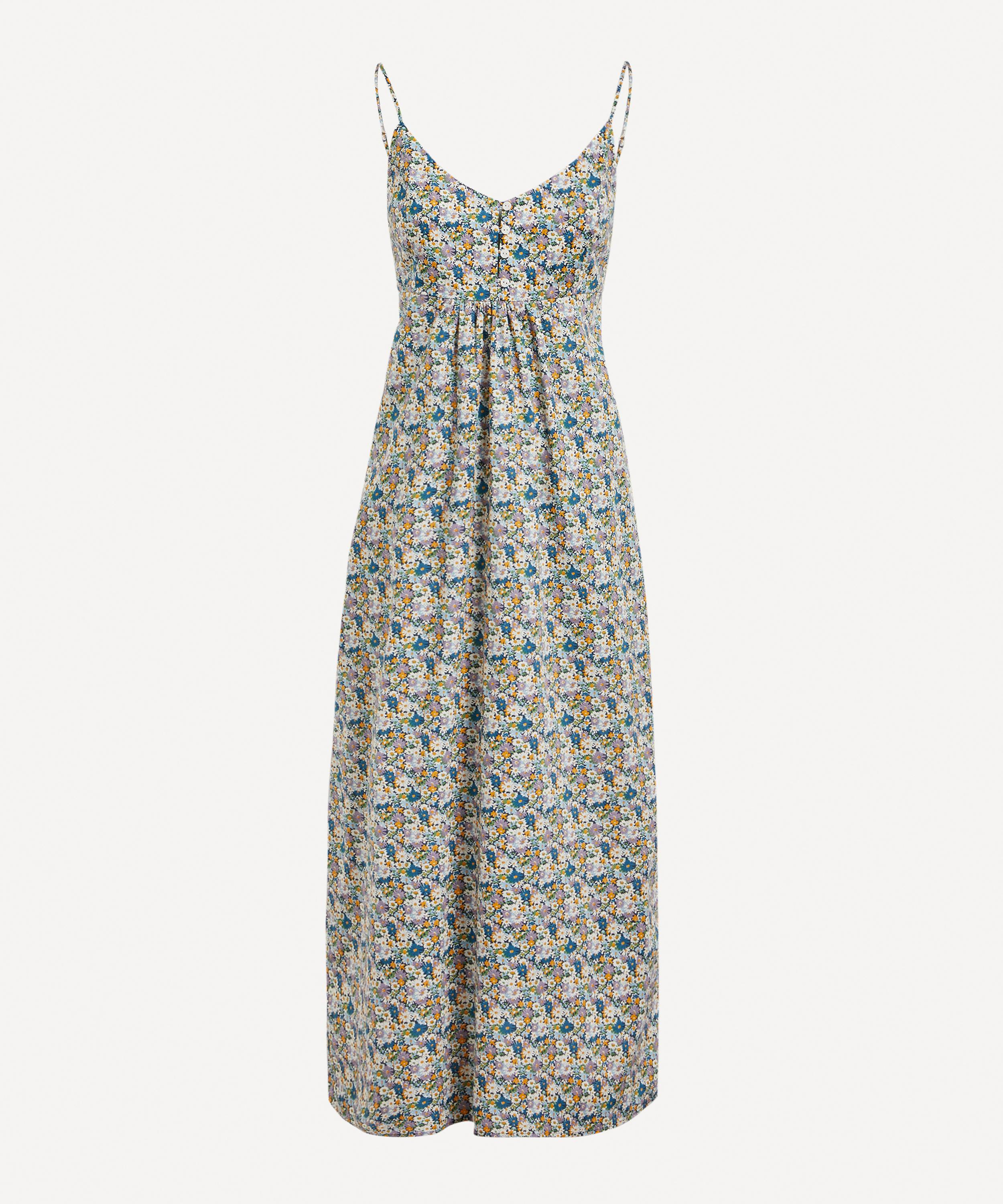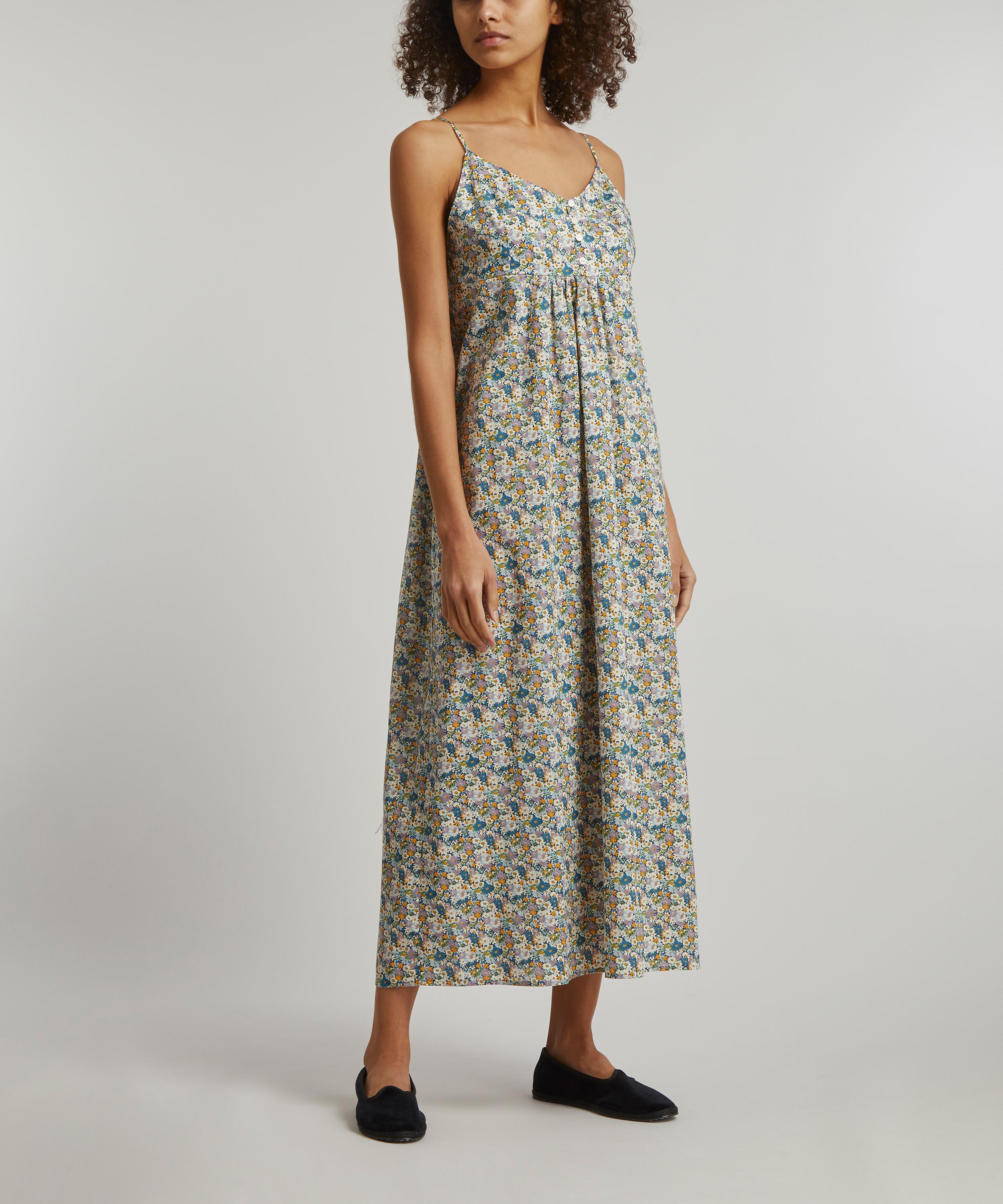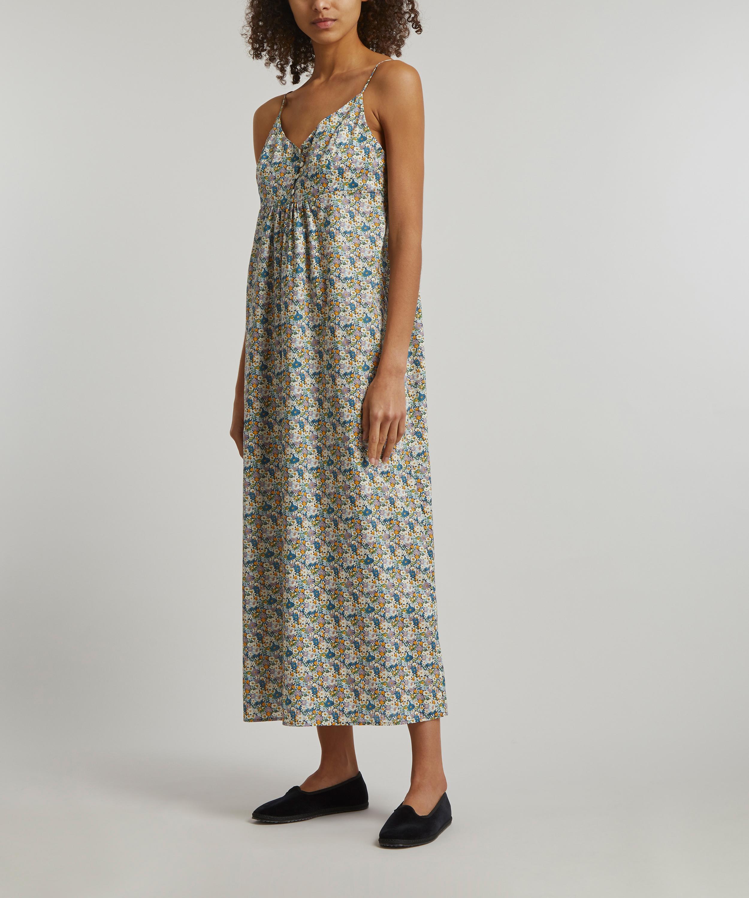 Tana is a true Liberty signature – a light, fluid revelation of a fabric that we’ve been perfecting for over a century, ultra-smooth to the touch and ideal for keeping cosy yet cool at night. Finished with adjustable spaghetti straps and button fastenings at the front and back, this midi length women’s chemise nightie spotlights our Libby print - a layout of dense, simplified daisies, drawn with a very fine outline. Originally hand painted during the 1930s and printed at Liberty’s Merton print works, this all-over repeat pattern pays homage to the most quintessential Liberty floral style.