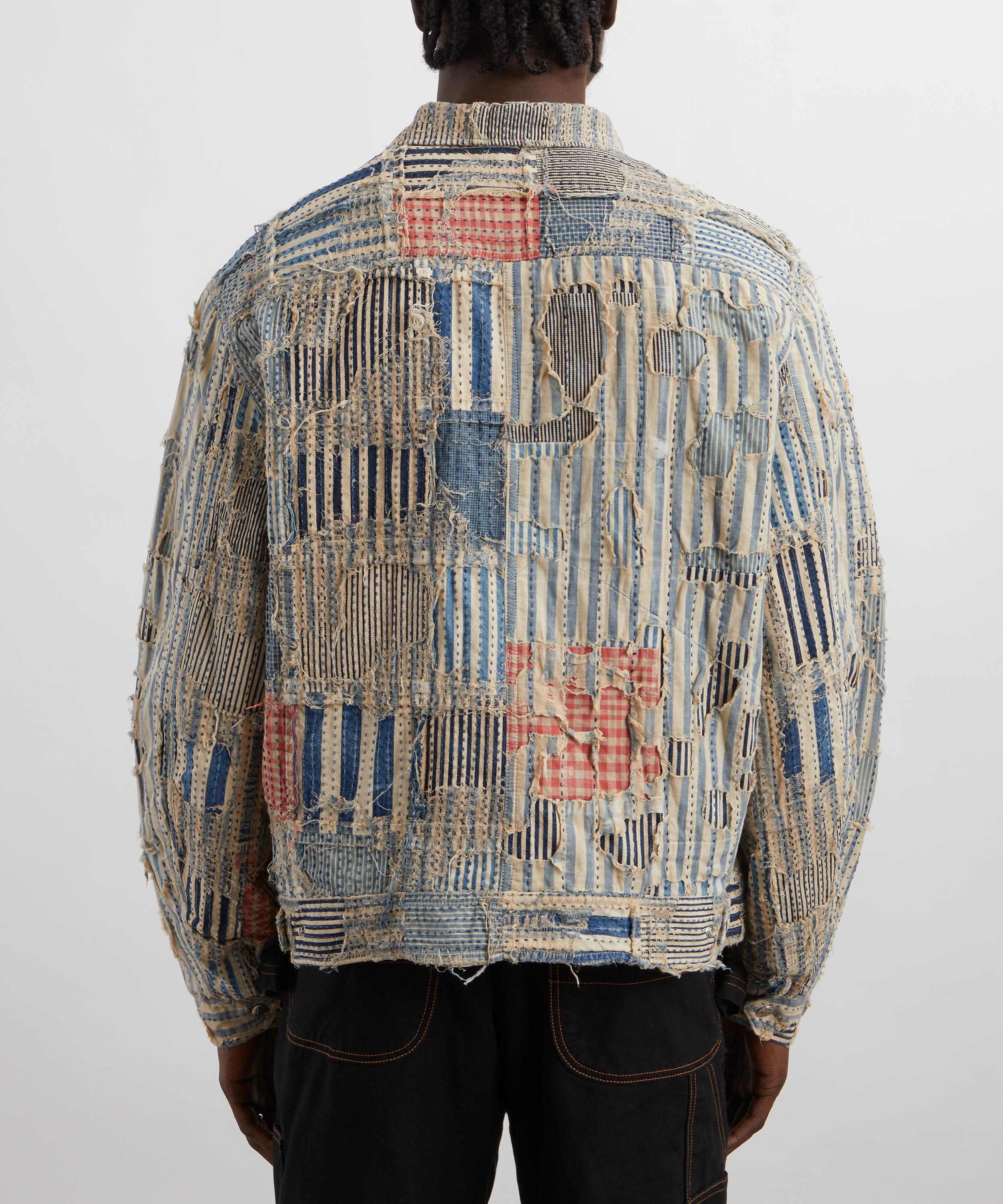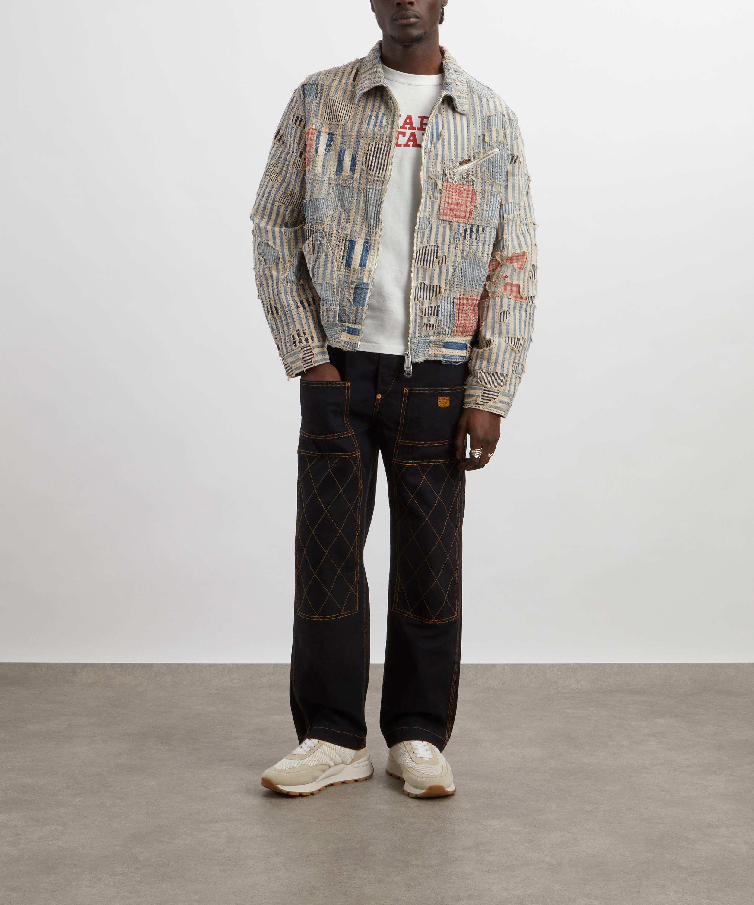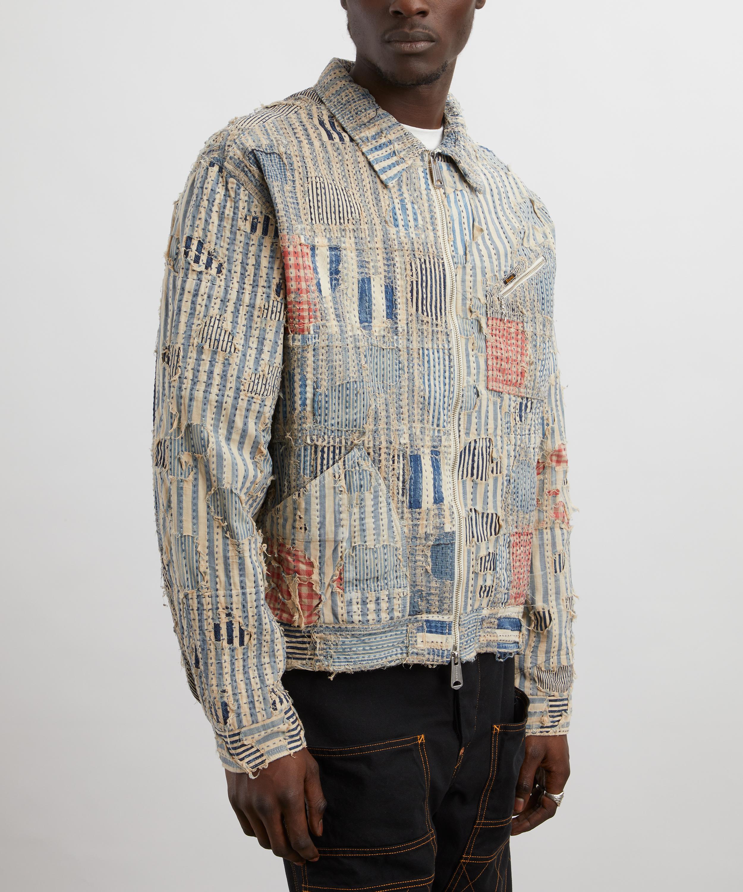 The Liberty Distressed Embroidered Blouson Jacket from cult Japanese label KAPITAL is designed with a modern, streetwear-inspired aesthetic.