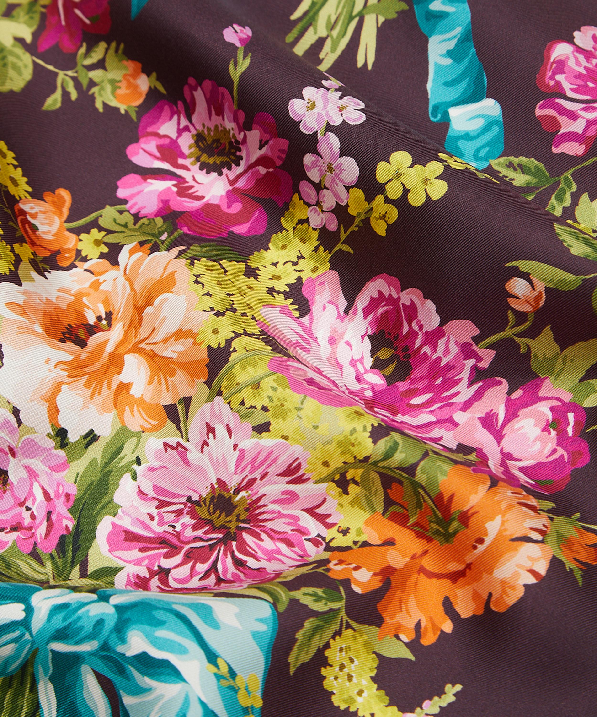 Assembled from an array of botanical prints unearthed in the Liberty archive, Bow Bouquet pays homage to the kaleidoscope of colours and the splendour of nature’s beauty, boasting a symphony of opulent blooms. Echoing the grandeur of the Regency era, this dramatic display features roses, peonies, asters, lilac, and larkspur, forming breathtaking bouquets delicately bound together with vibrant satin bows.
