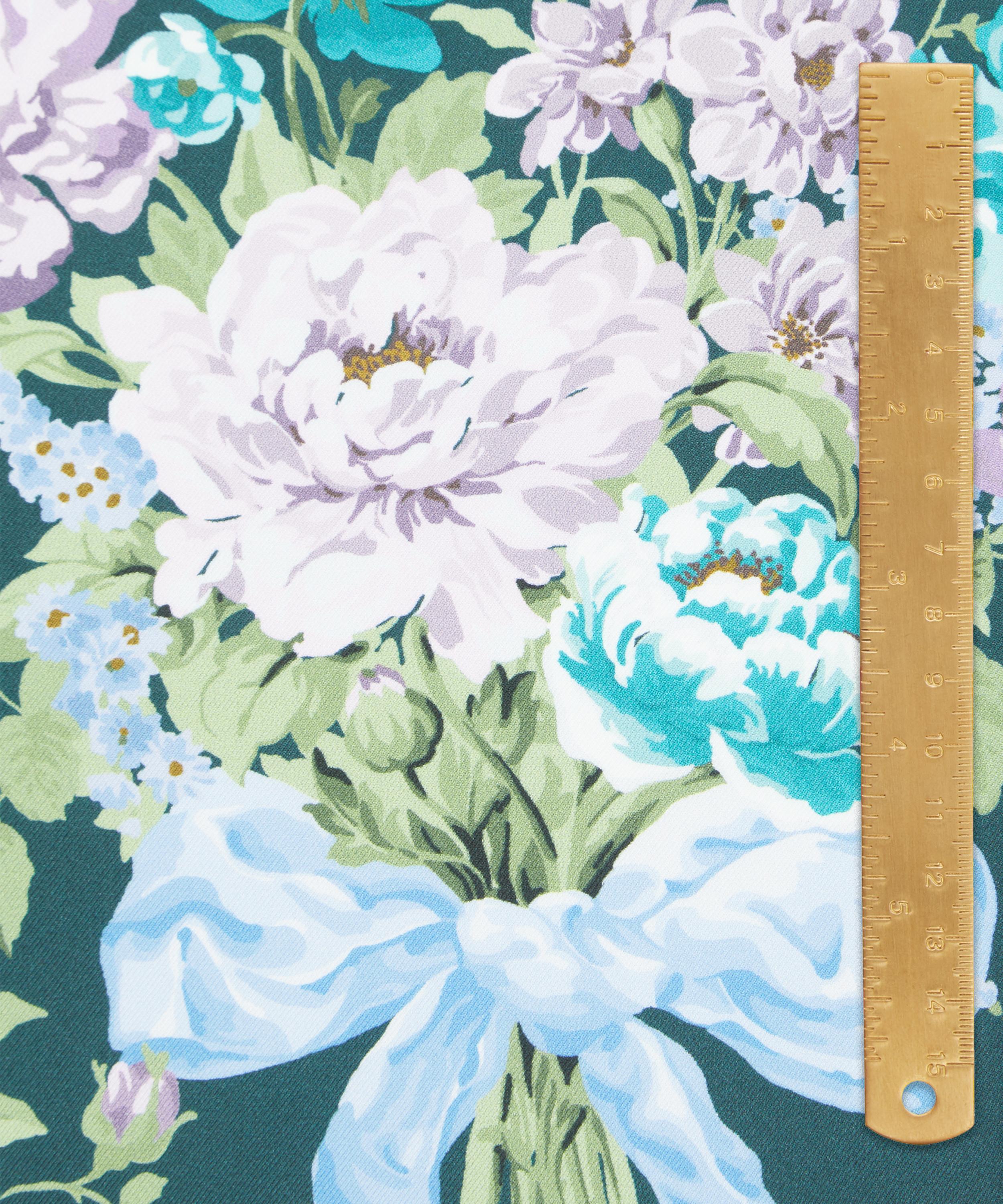 Assembled from an array of botanical prints unearthed in the Liberty archive, Bow Bouquet celebrates the kaleidoscope of colours and the splendour of nature’s beauty, boasting a symphony of opulent florals. Echoing the grandeur of the Regency era, this theatrical pattern features roses, peonies, asters, lilacs, and larkspur, forming breath-taking bouquets delicately bound together with silk satin bows. This print is part of the Penelope’s Garden chapter of the Liberty Fabrics & Bridgerton collection - paying homage to the beautiful garden settings of the Regency era, where dramatic botanical displays create blooming backdrops perfect for captivating scenes.