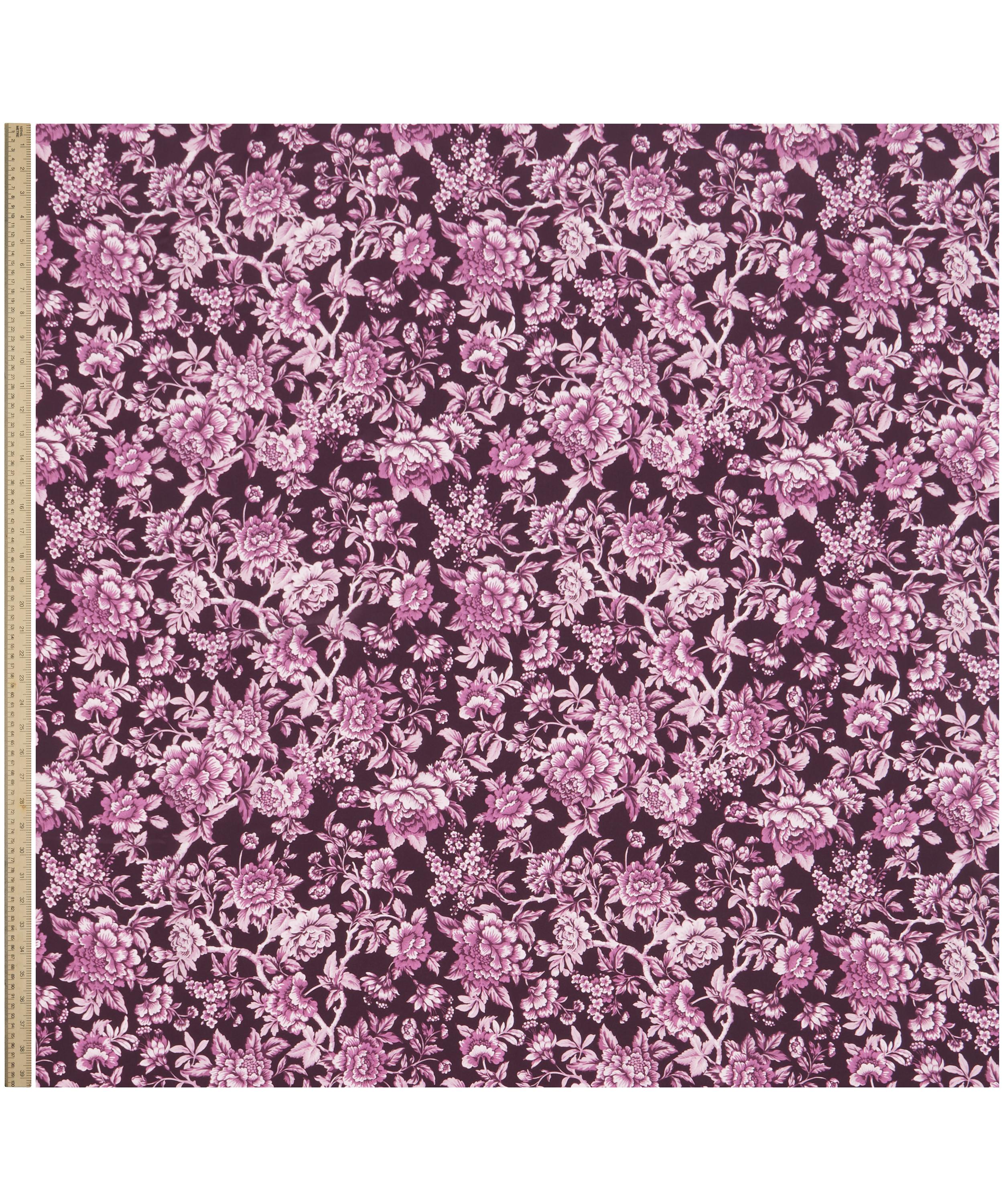 Regency Trail honours Liberty’s illustrious legacy of Tree of Life-style designs, drawing inspiration from a hand-painted artwork dating back to 1969. Meticulously reimagined, the design is characterised by trailing branches adorned with majestic peonies, chrysanthemums, carnations, blossom, and fuchsia, nestled among lush foliage. An interplay of tonal shades adds contrast, depth, and definition, enveloping the pattern in an aura of mystery and refinement. This print is part of the Penelope’s Garden chapter of the Liberty Fabrics & Bridgerton collection - paying homage to the beautiful garden settings of the Regency era, where dramatic botanical displays create blooming backdrops perfect for captivating scenes.