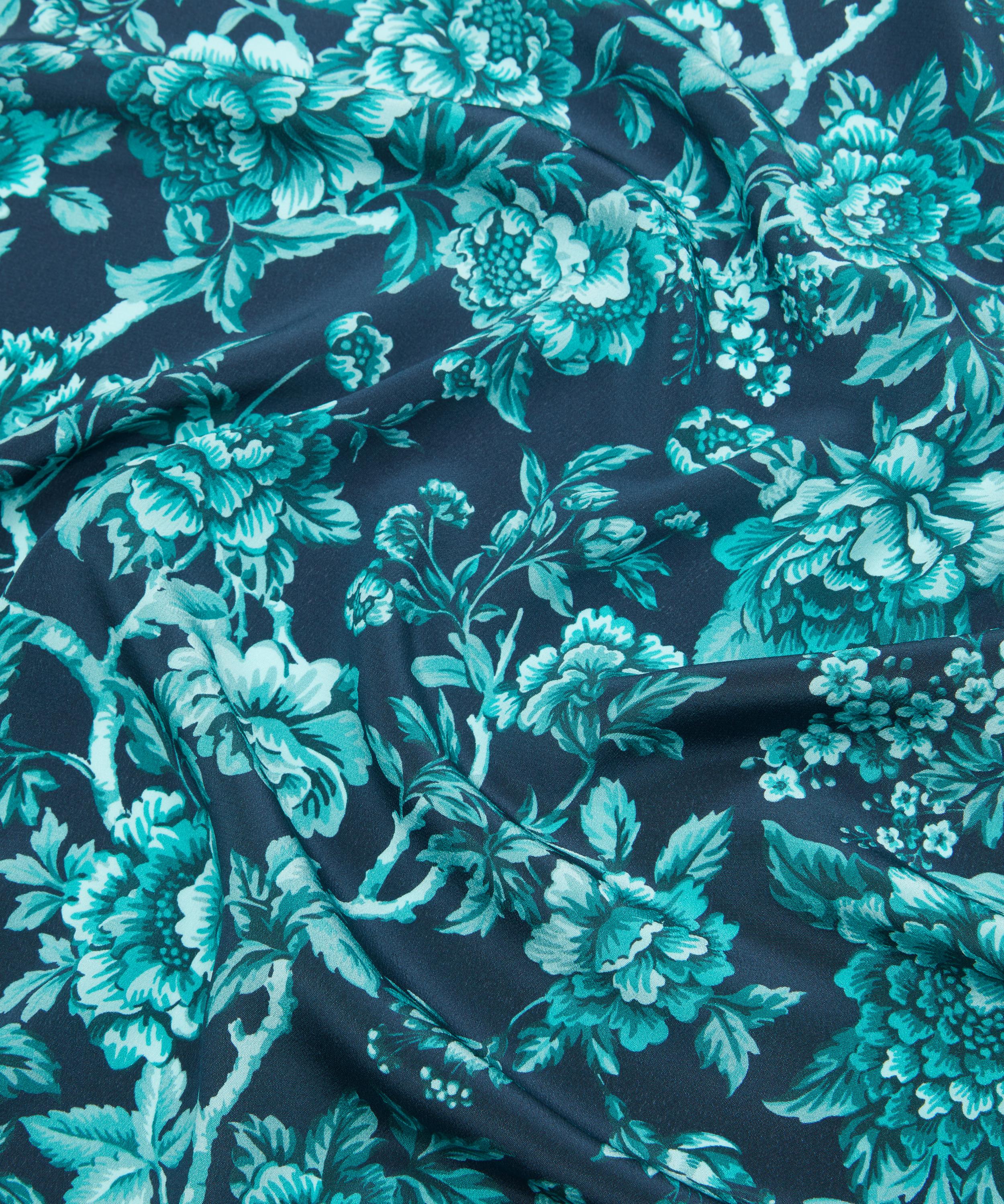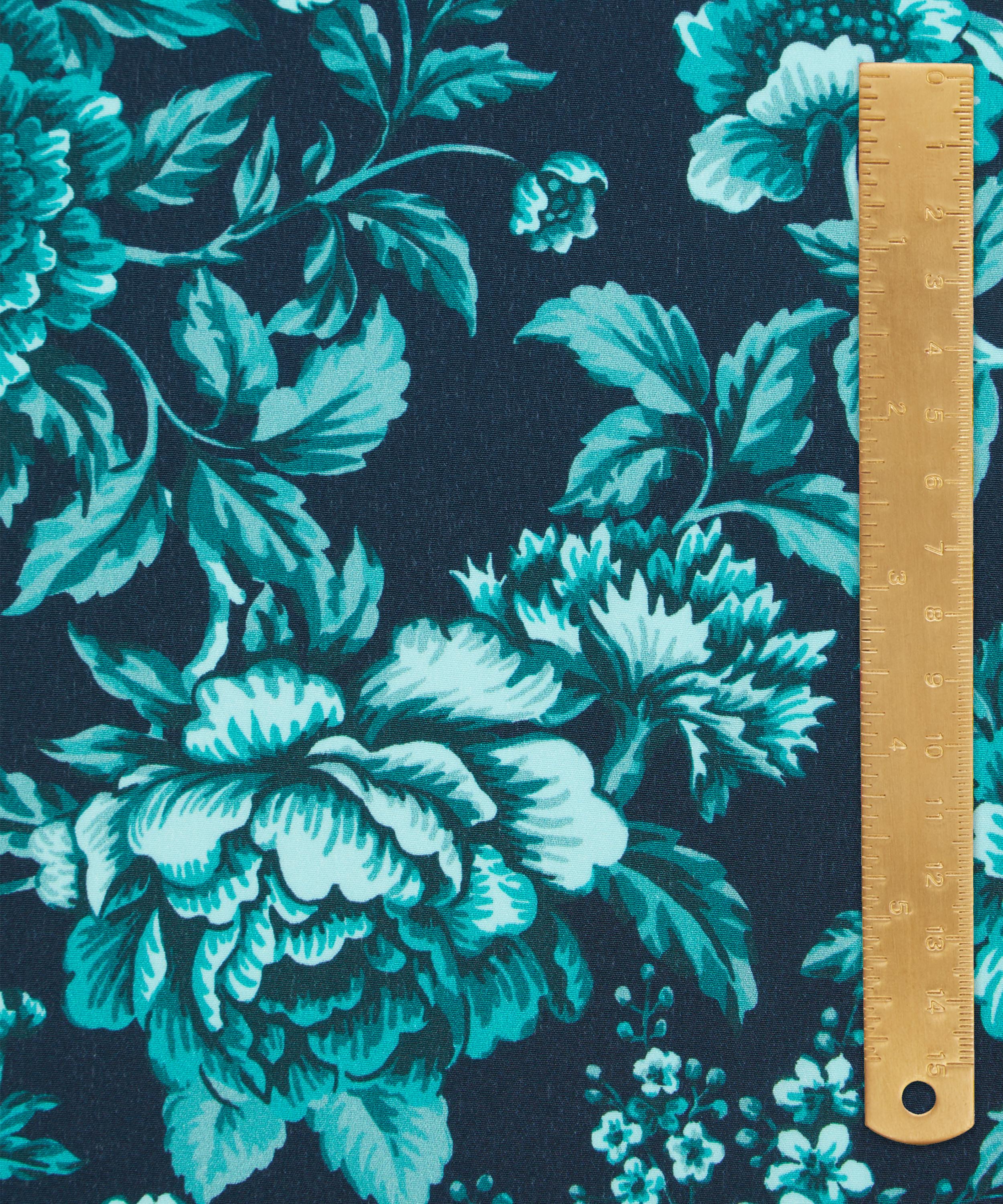 Regency Trail honours Liberty’s illustrious legacy of Tree of Life-style designs, drawing inspiration from a hand-painted artwork dating back to 1969. Meticulously reimagined, the design is characterised by trailing branches adorned with majestic peonies, chrysanthemums, carnations, blossom, and fuchsia, nestled among lush foliage. An interplay of tonal shades adds contrast, depth, and definition, enveloping the pattern in an aura of mystery and refinement. This print is part of the Penelope’s Garden chapter of the Liberty Fabrics & Bridgerton collection - paying homage to the beautiful garden settings of the Regency era, where dramatic botanical displays create blooming backdrops perfect for captivating scenes.