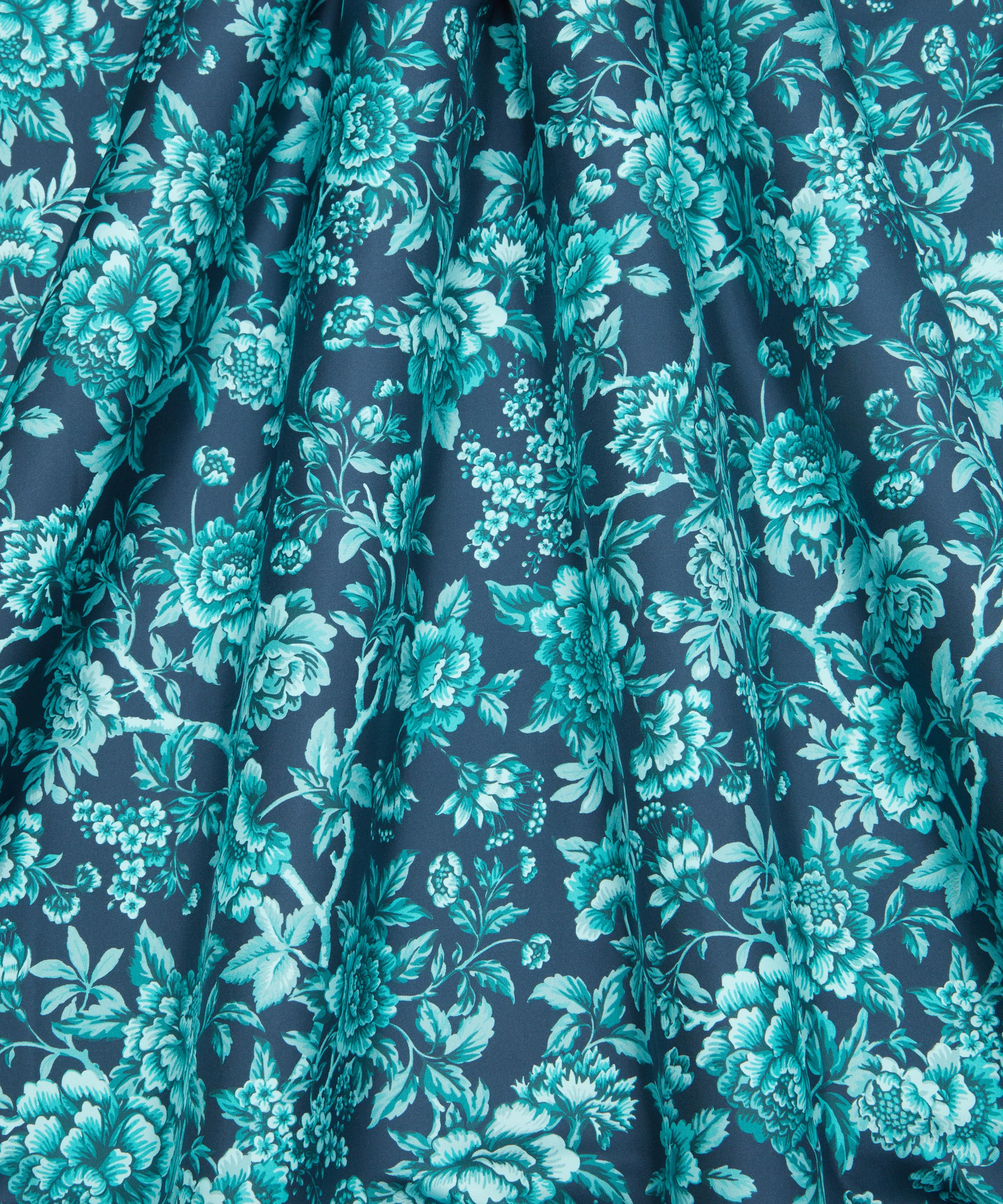 Regency Trail honours Liberty’s illustrious legacy of Tree of Life-style designs, drawing inspiration from a hand-painted artwork dating back to 1969. Meticulously reimagined, the design is characterised by trailing branches adorned with majestic peonies, chrysanthemums, carnations, blossom, and fuchsia, nestled among lush foliage. An interplay of tonal shades adds contrast, depth, and definition, enveloping the pattern in an aura of mystery and refinement. This print is part of the Penelope’s Garden chapter of the Liberty Fabrics & Bridgerton collection - paying homage to the beautiful garden settings of the Regency era, where dramatic botanical displays create blooming backdrops perfect for captivating scenes.