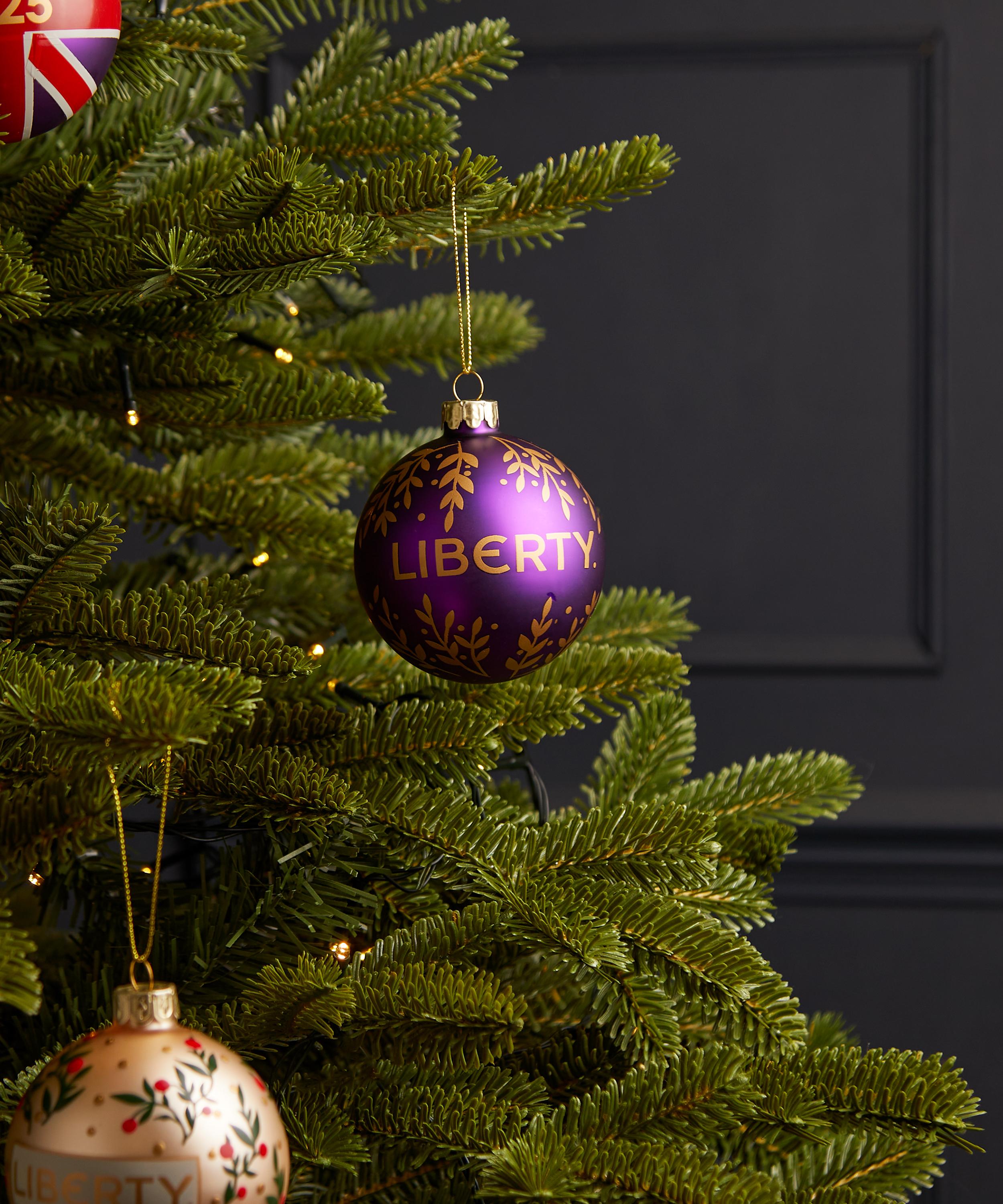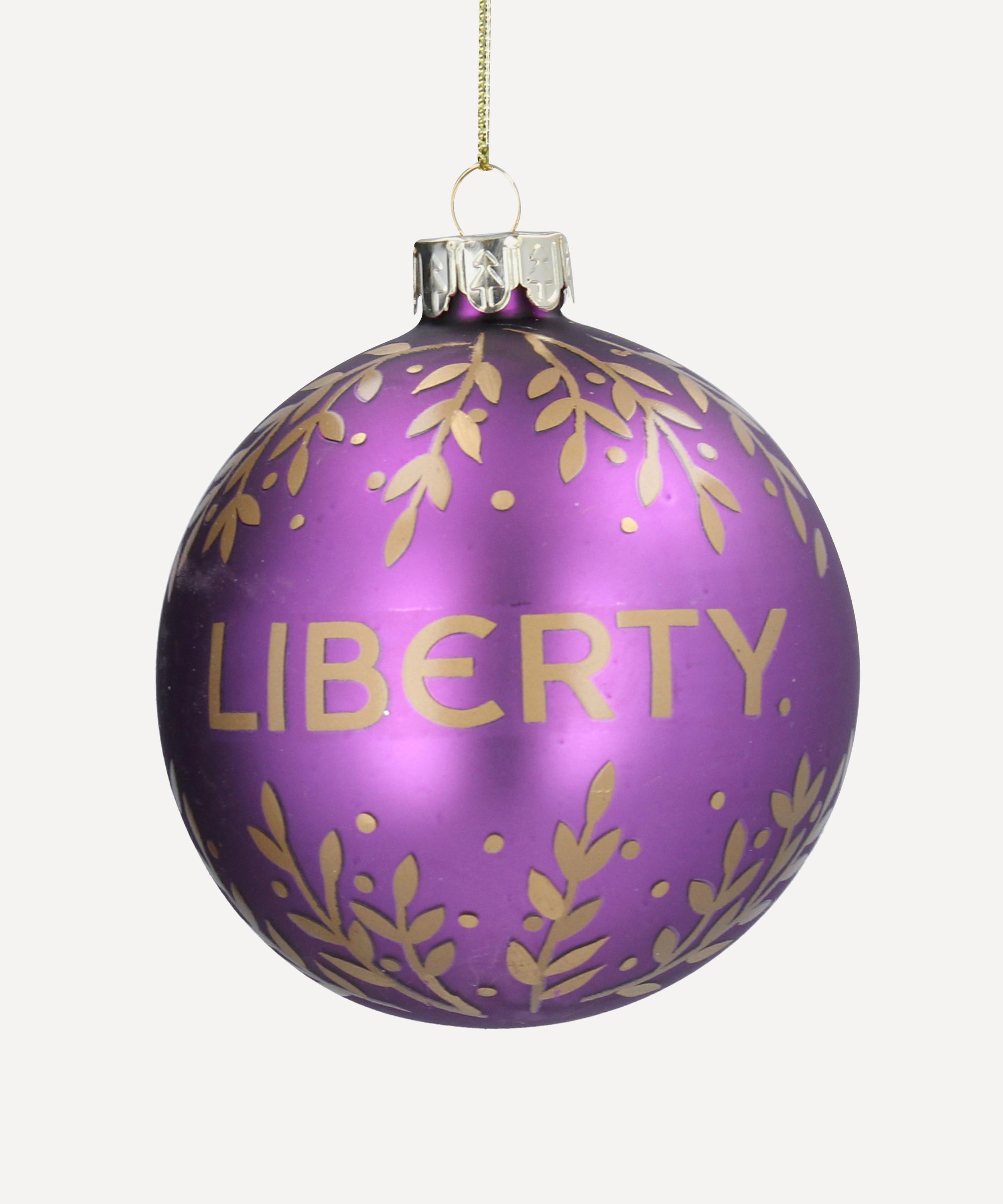 Designed in our signature shade of purple, this classic glass bauble features a smattering of gold-tone detailing, including a Liberty logo to the centre. Complete with a practical hanging loop, this Christmas ornament will bring a dash of our iconic heritage to your festive fir or pine.
