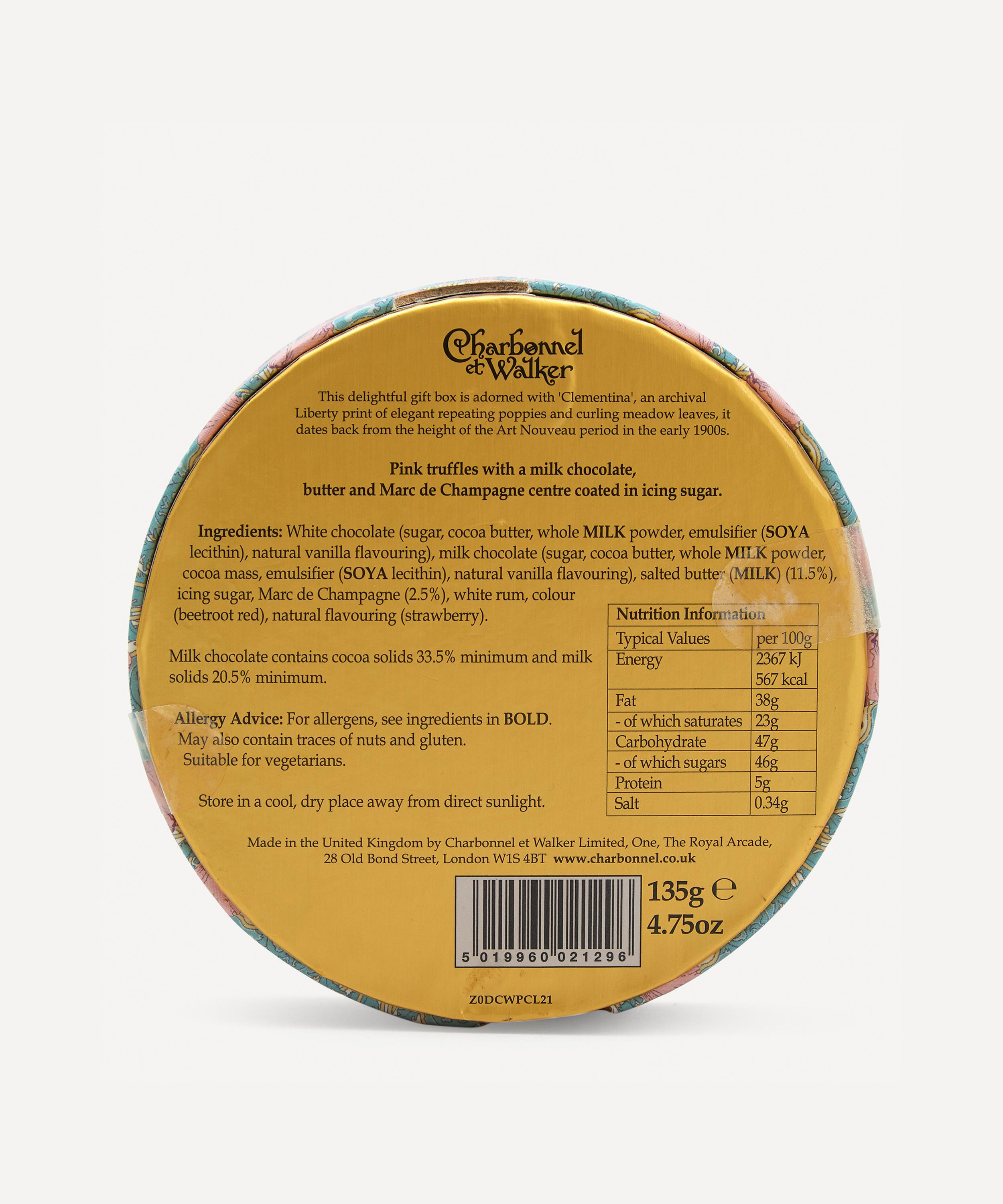 Housed in an exclusive Liberty print gift box, these Pink Marc de Champagne truffles from Charbonnel et Walker are a world-renowned truffle featuring a milk chocolate, butter and Marc de Champagne centre.