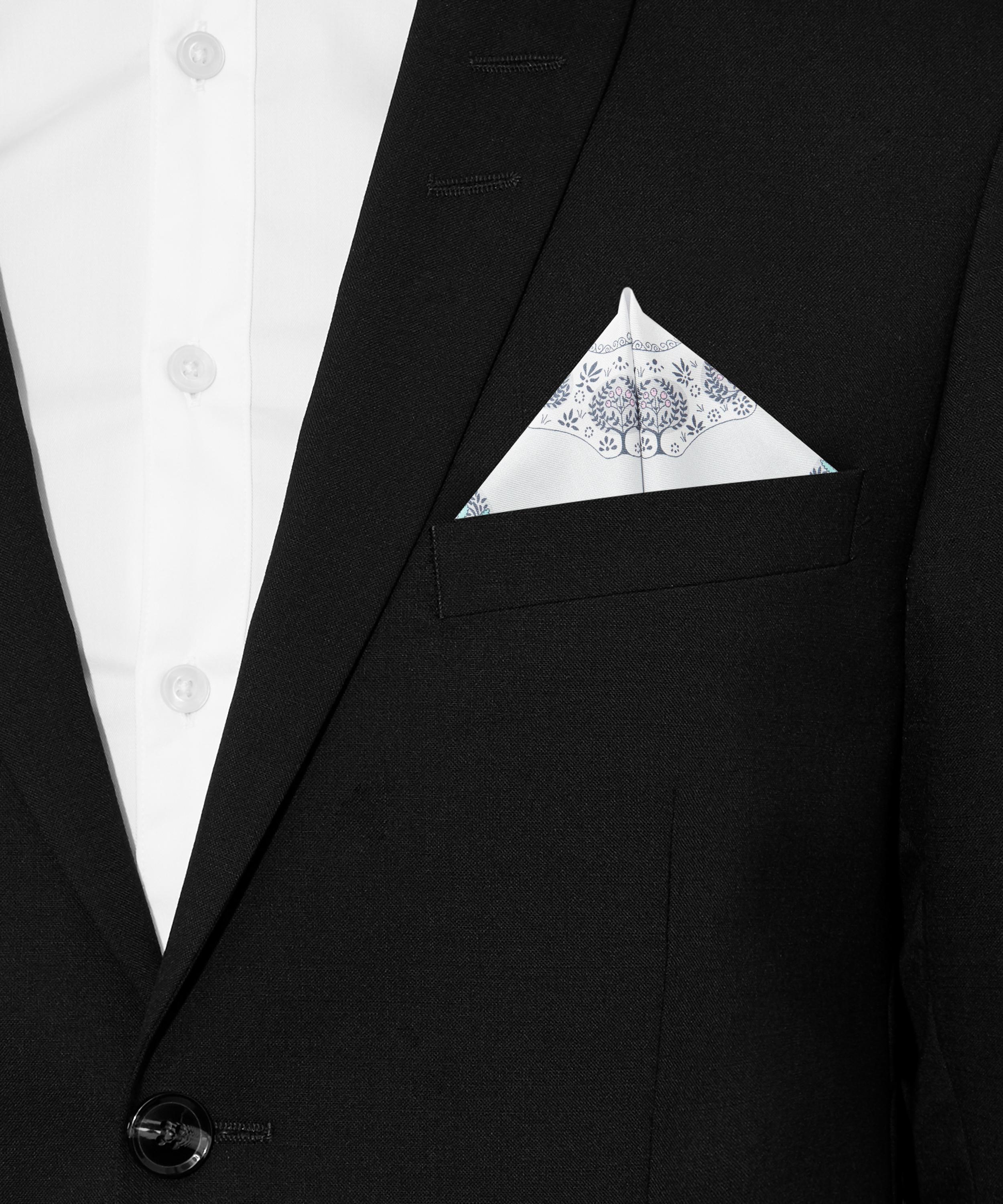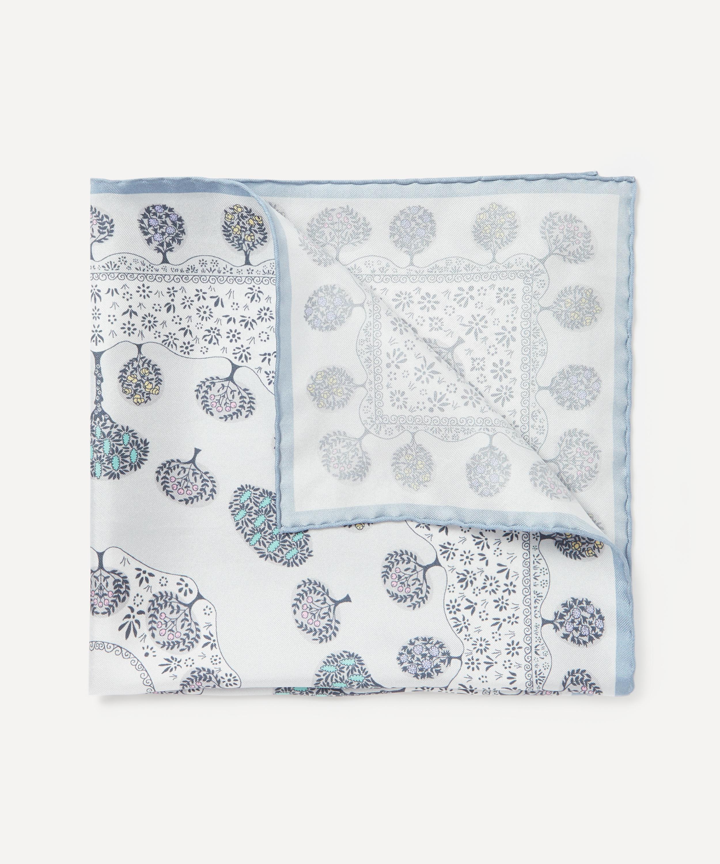 Elevate suiting with an accent of archival Liberty design with the Liberty Trees silk pocket square, made and printed on silk twill by experts in England.