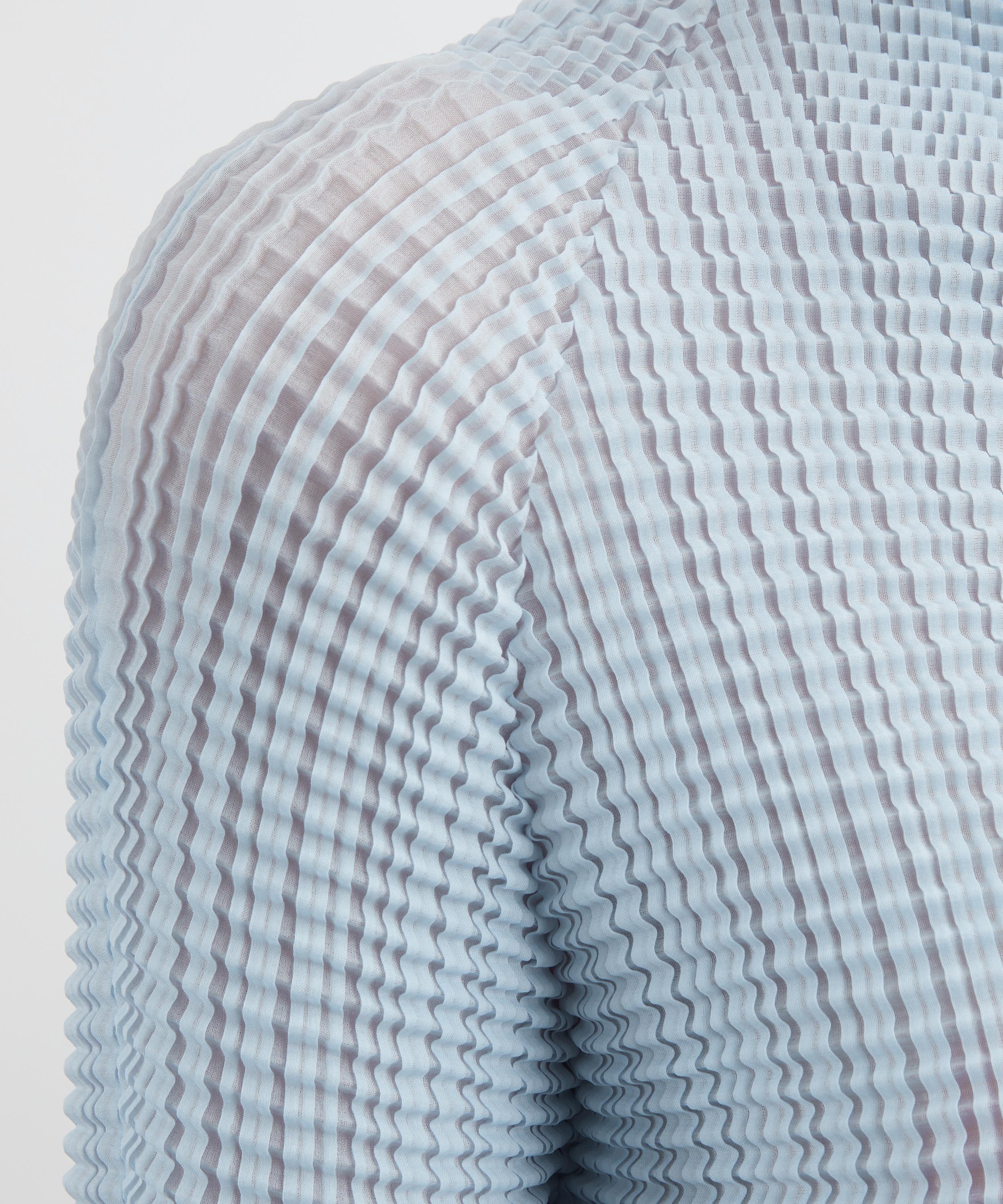 Issey Miyake’s conceptual approach brings a sculptural aesthetic to everyday dressing – reflected in the Wooly Pleats-58 High-Neck Top.