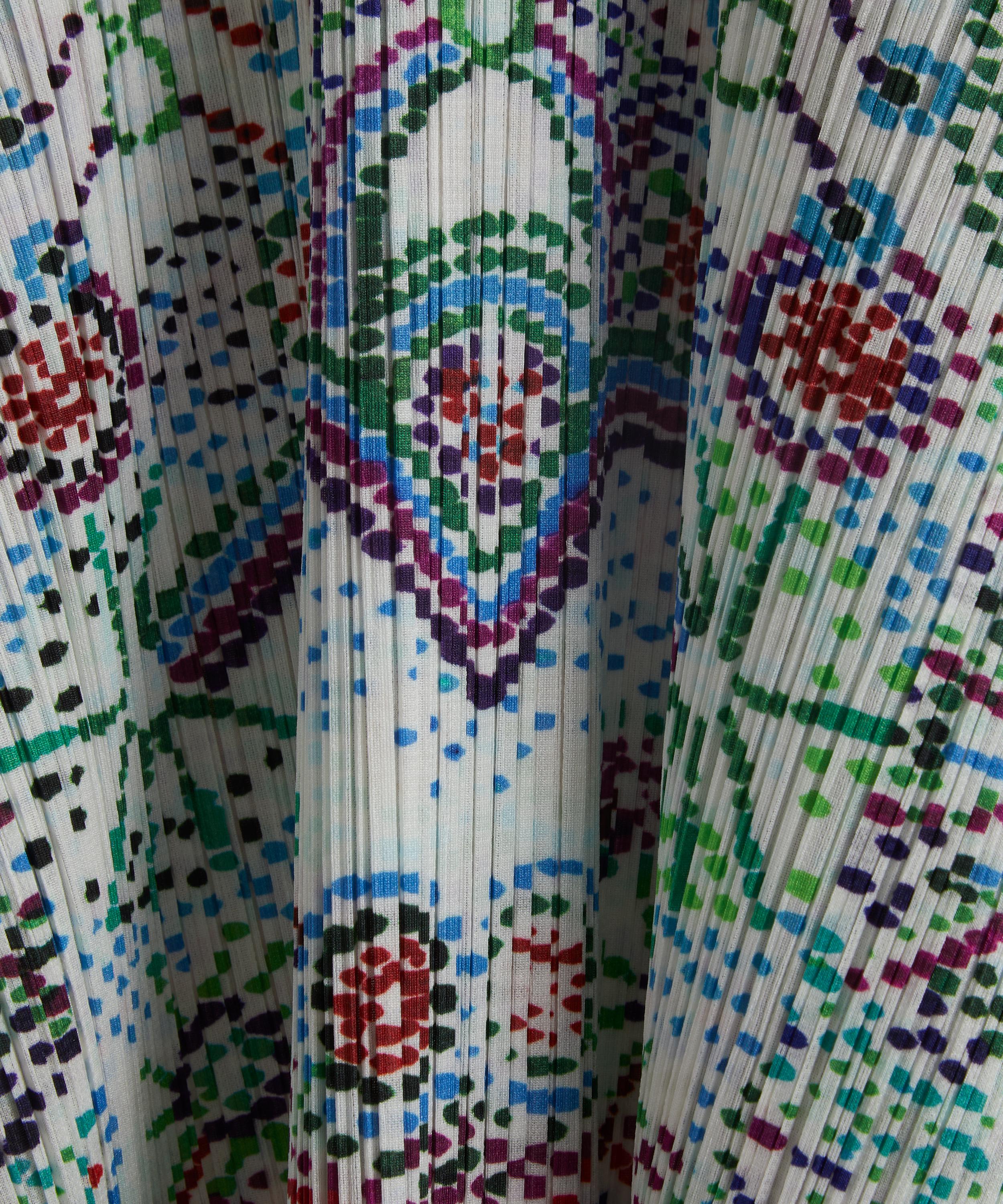 Japanese designer Issey Miyake founded the Miyake Design Studio in Tokyo in 1970. Miyake quickly became known for his groundbreaking pleating techniques; using heat to imbue fabric with a ‘memory’ that keeps pleats in place. Pleats Please launched in 1993 as a capsule collection of Miyake’s patented pleating and today incorporates sculptural dresses, jackets and separates.