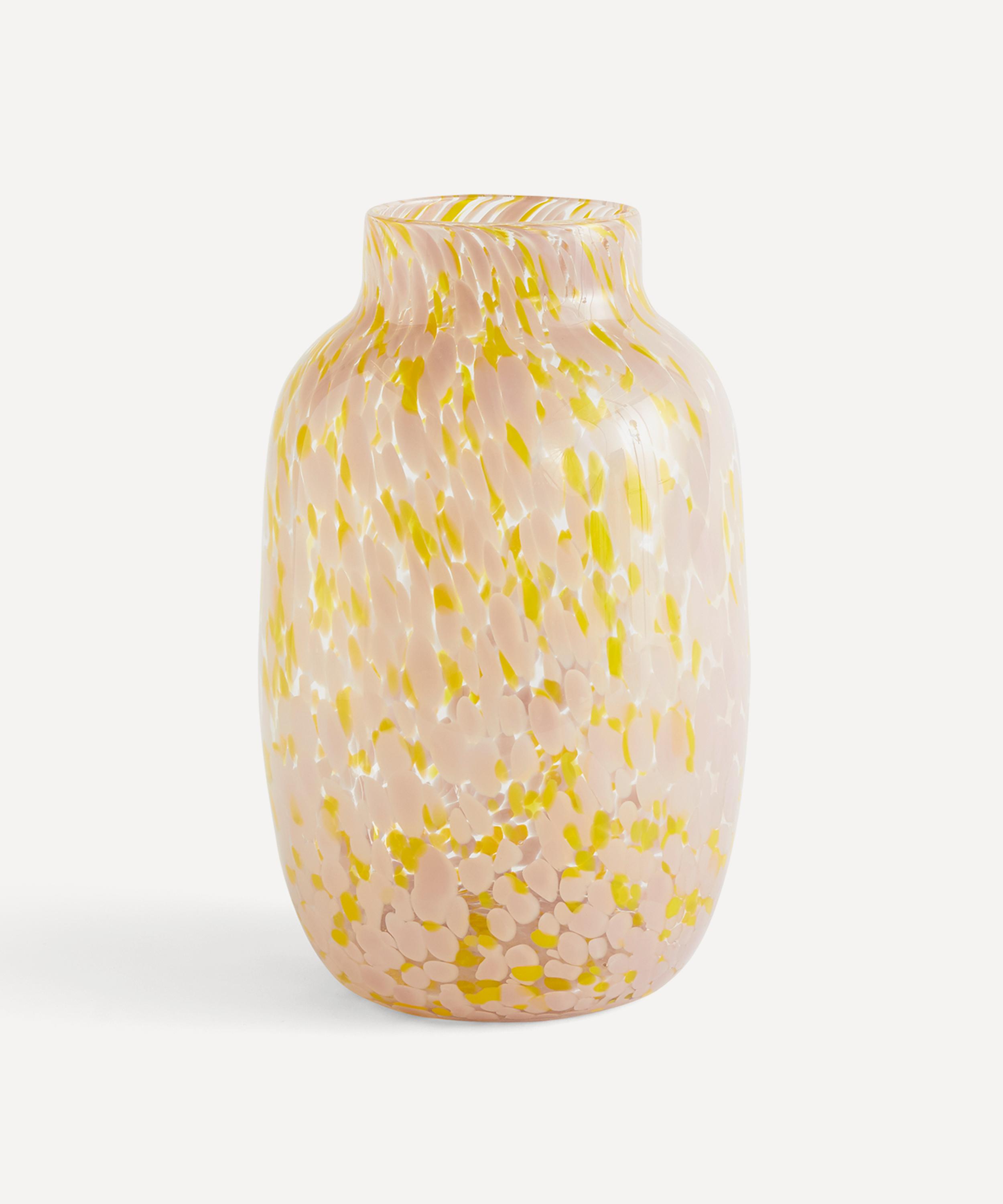 Handmade using a meticulous glassblowing technique that involves multiple layers of coloured glass dots, this piece brings a contemporary twist to any space, channelling HAY's clean aesthetic into wooden shelves or table settings.