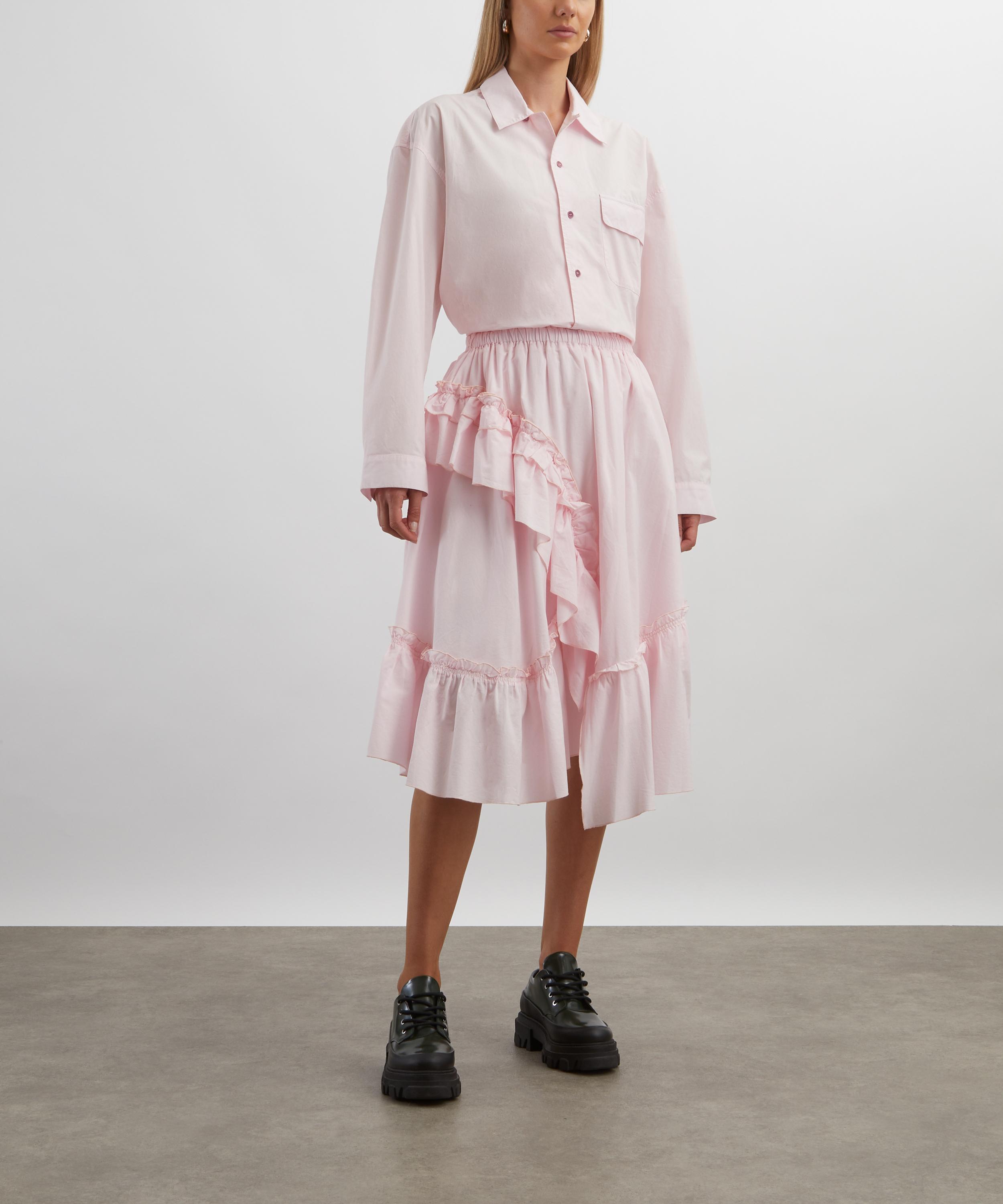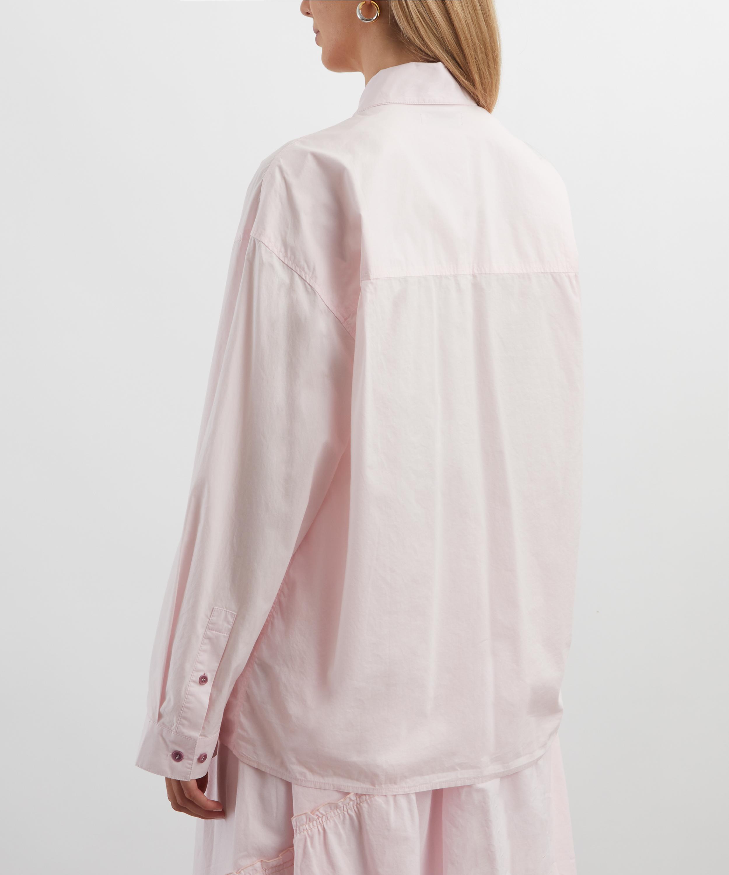Crafted from lightweight cotton, this light pink shirt offers a boxy, relaxed fit with a Cuban collar, button fastening, and a chest flap pocket for a utilitarian touch.