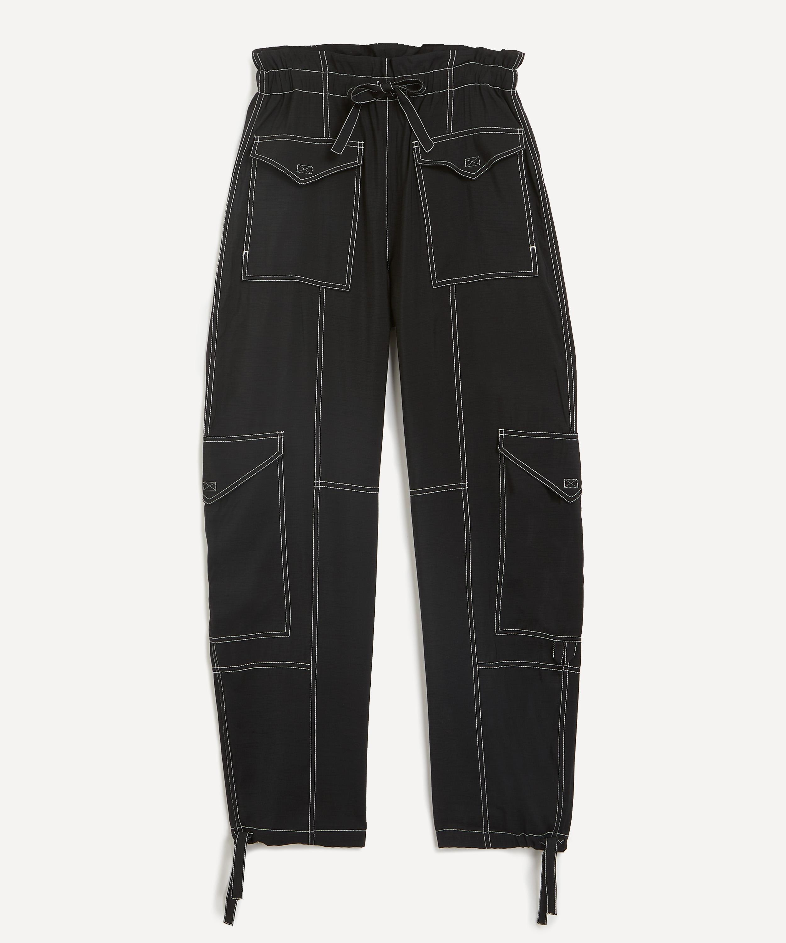 Give your casual edit the ultimate utilitarian edge with these high-rise, cargo-style trousers from GANNI. Designed for a relaxed fit with a rounded barrel-leg and adjustable drawstring hems, this pair is detailed with multiple pockets and contrast white detailing throughout.