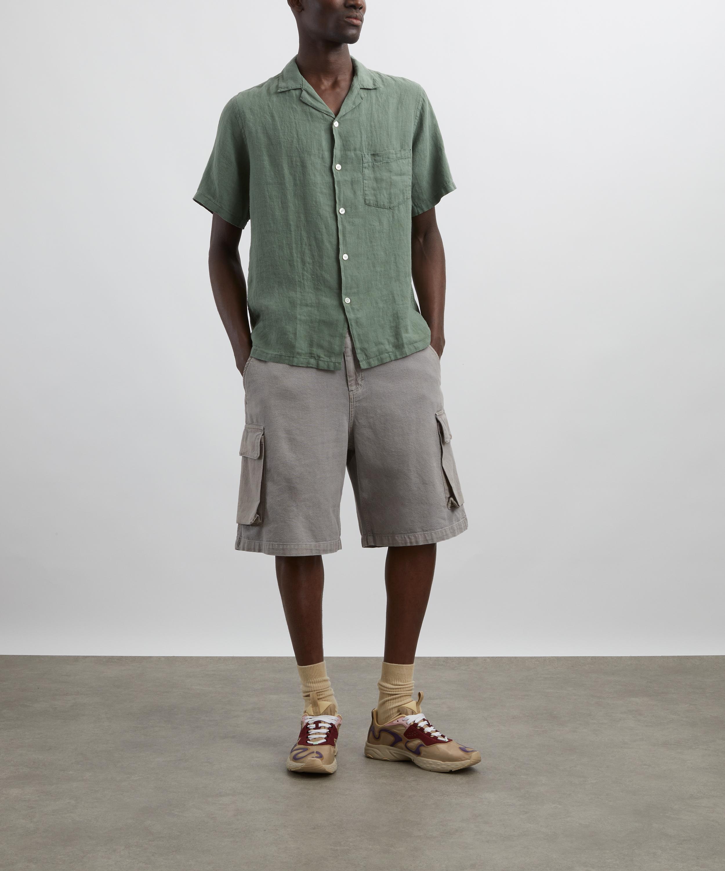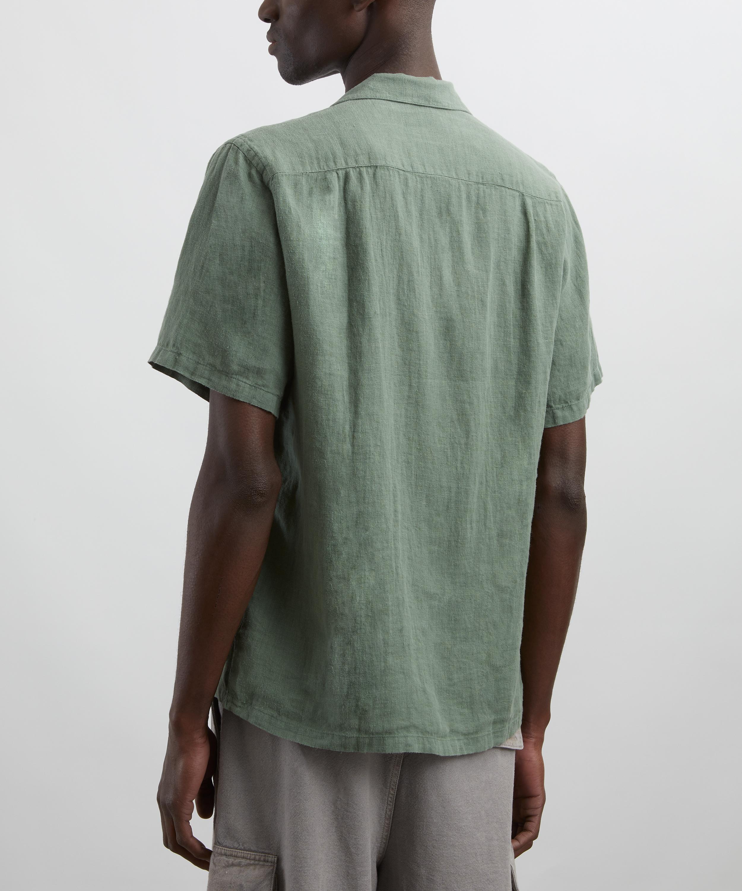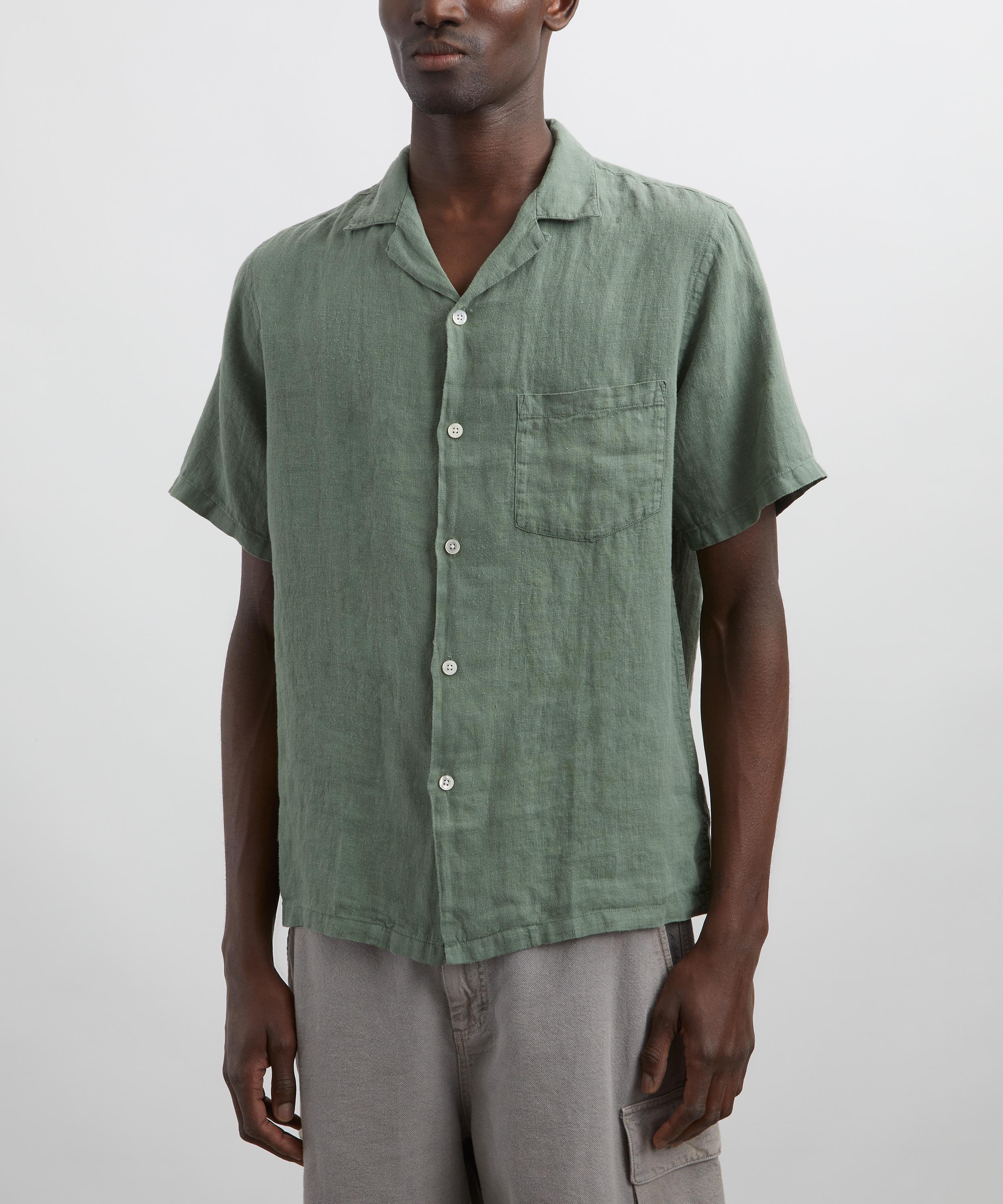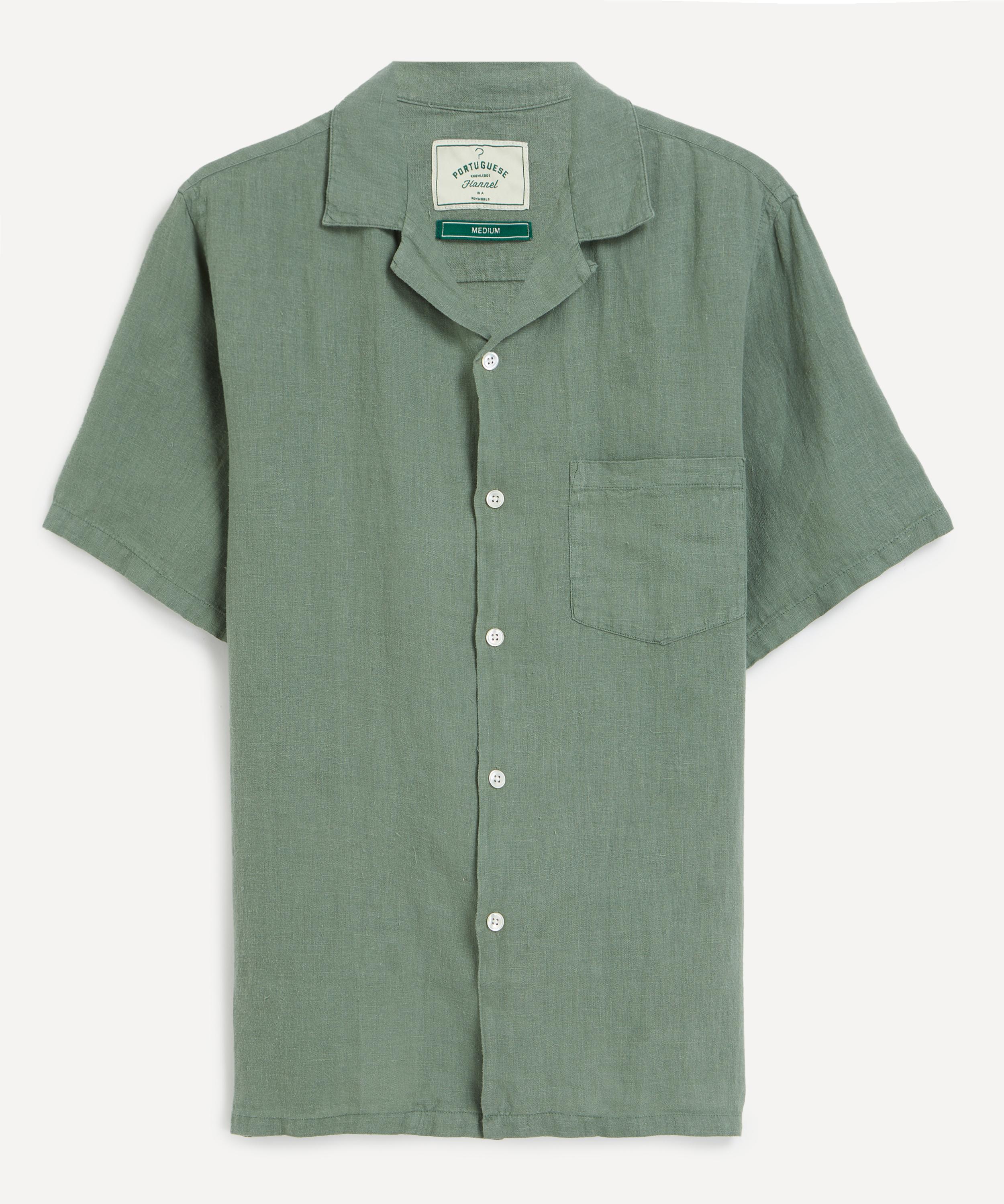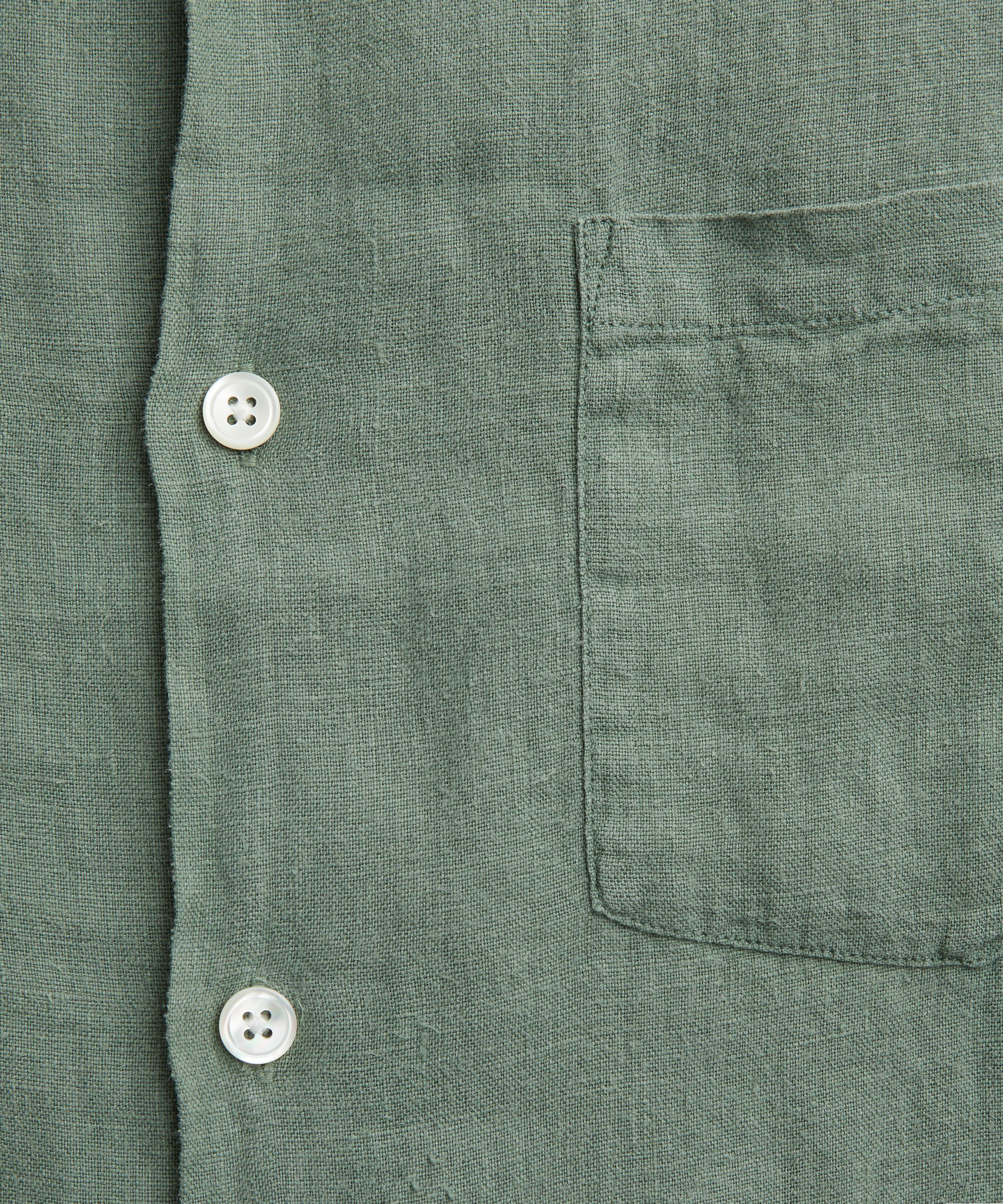 Crafted from premium linen using four generations of traditional techniques, this short-sleeve shirt epitomises effortless summer style. Ideal for layering over a tank or top, it showcases a camp collar, mother-of-pearl button closure, and a chest pocket, offering a relaxed yet versatile style.