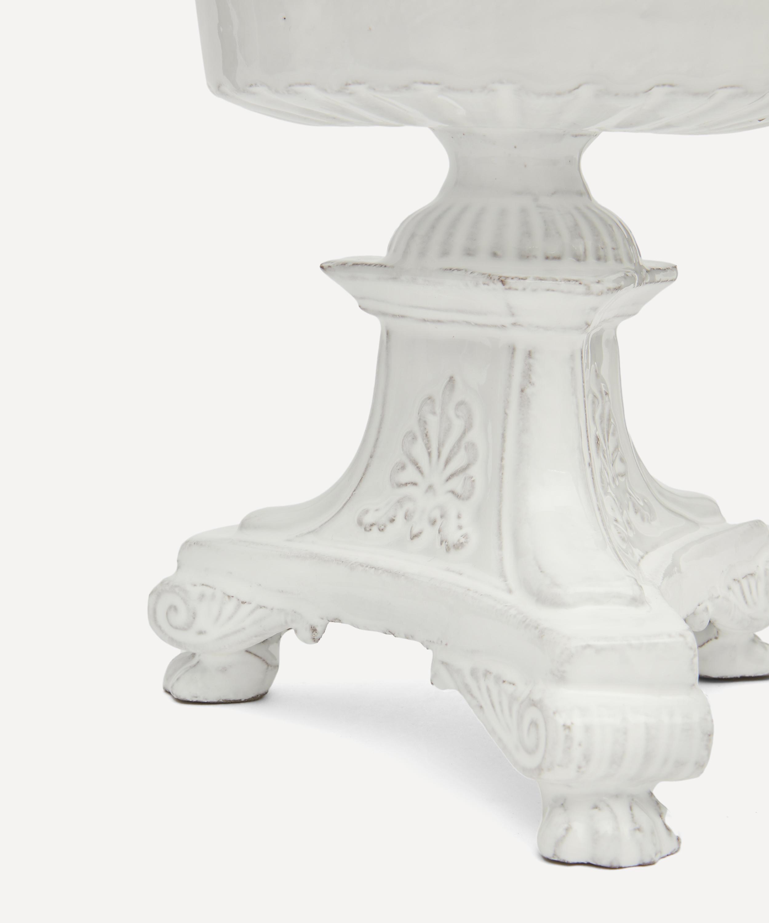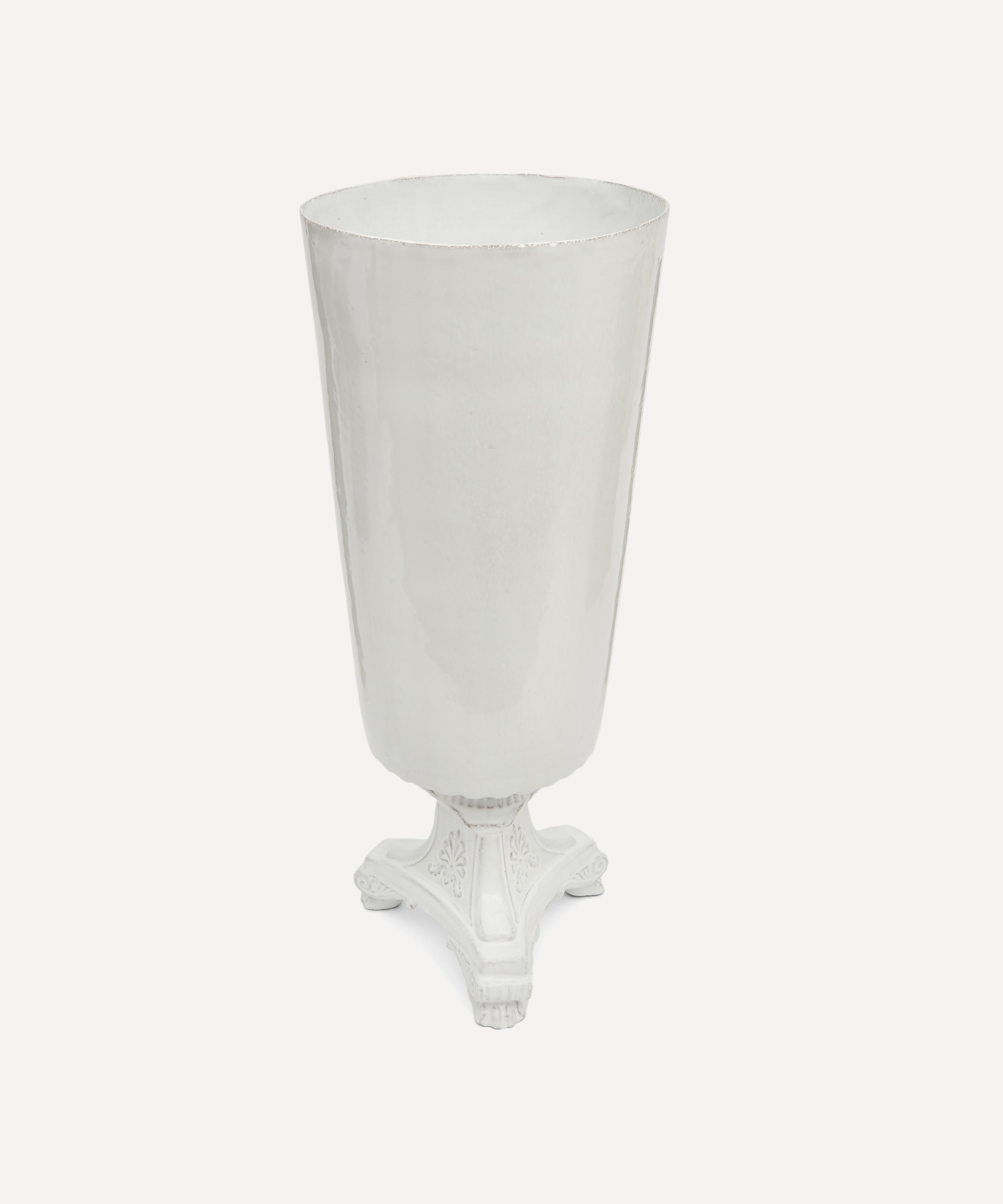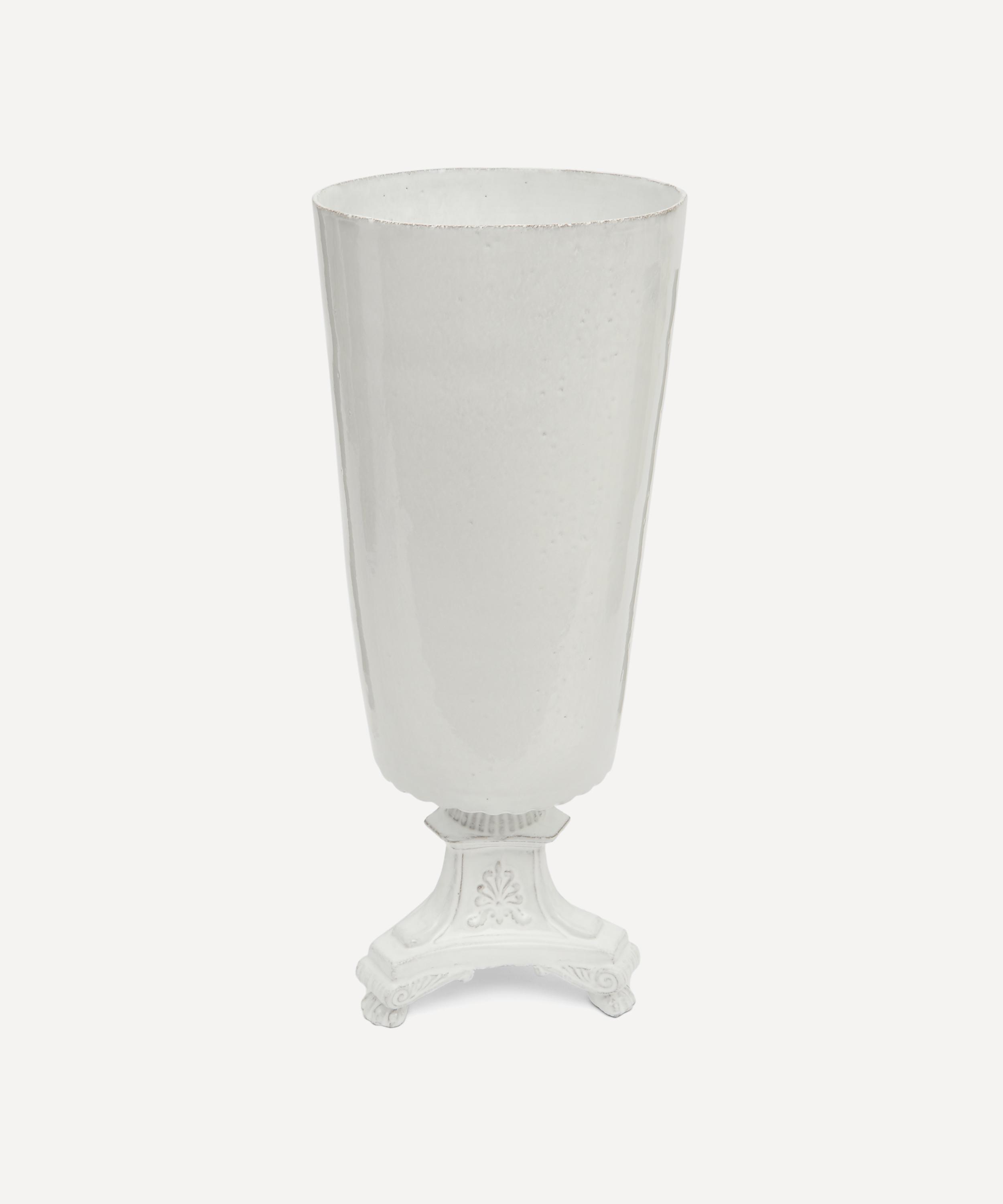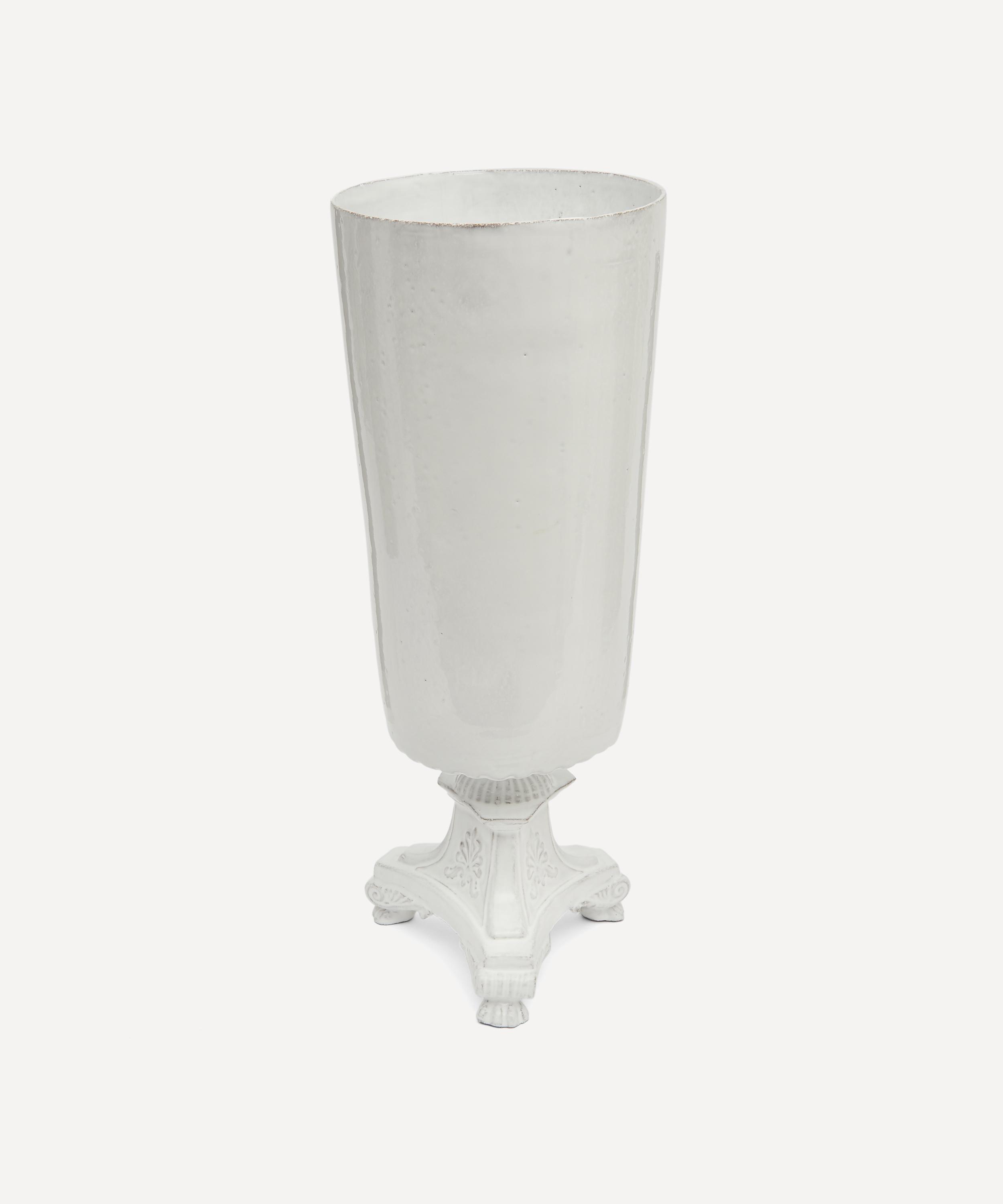 Votary of pre-industrial fabrication, Astier de Villatte is celebrated for being the one and only studio in Paris to hold and harbour the traditions of artisanal ceramic production. Restoring the ancestral systems of moulding and stamping, the Lion Large vase is made using techniques from the Middle Ages which involve moulding a sheet of handmade clay, double firing the ‘biscuit’ piece and glazing the product in white enamel – a lengthy process that requires a drying time of up to one month. Characterised by an opulently detailed base and goblet-style silhouette, the vase is engraved with the brand’s signature crest - depicting an interlacing A & V - alongside the initials of one of the 40 master artisans who created it. Each handmade piece tells a beautiful story, it romances and imparts a sense of nostalgia into its owner. Use this perfectly imperfect vase to display verdant fronds or vibrant bouquets.