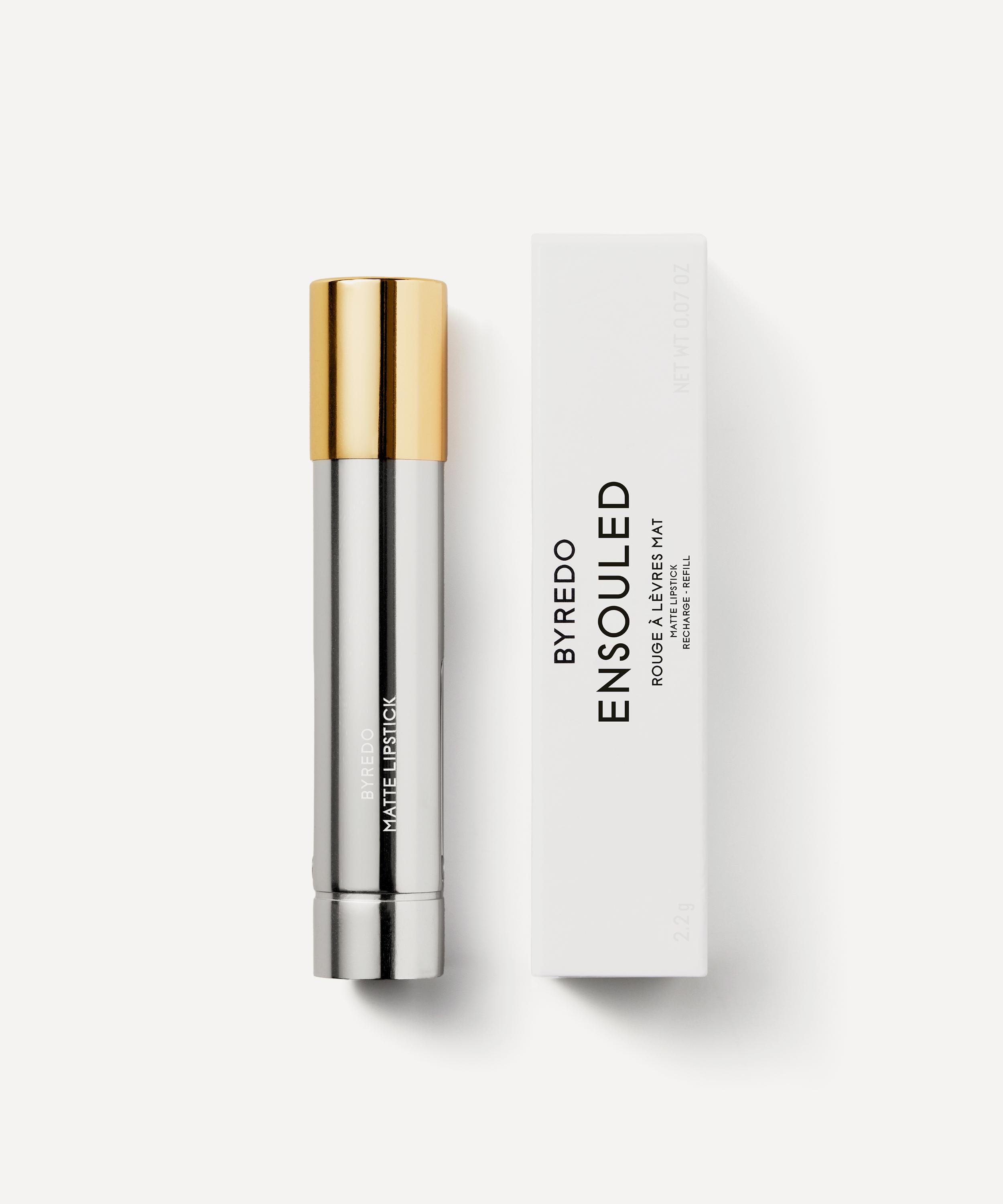 Offering a luxuriously sensorial application and strong colour pay-off, Byredo’s Lipstick Matte leaves behind a personal imprint with just one seamless stroke. Fusing waxes and pigments for a voluptuous, creamy yet weightless finish, this velvety-soft lipstick boasts a comforting texture that melts into the lips to deliver long-lasting colour saturation.