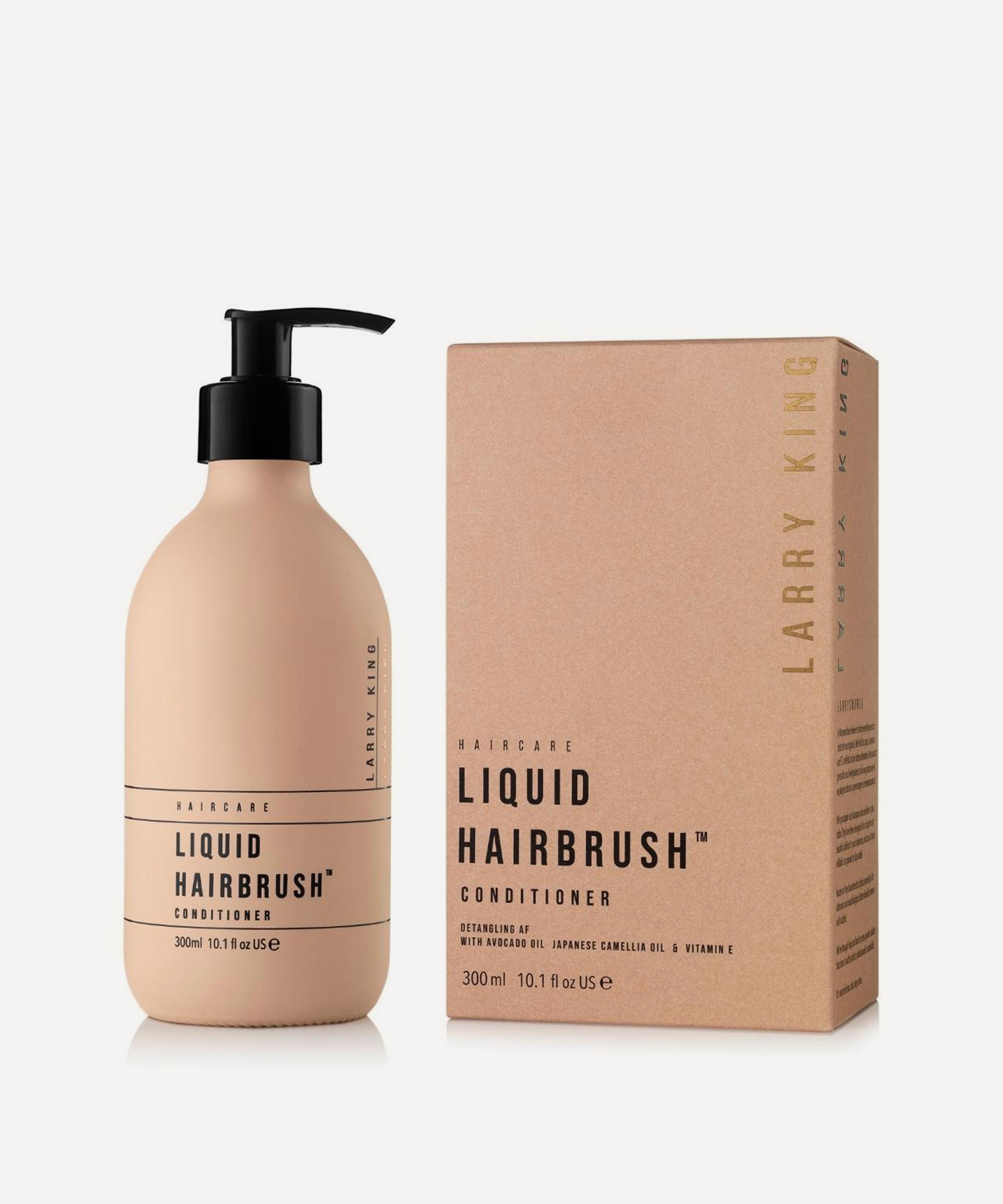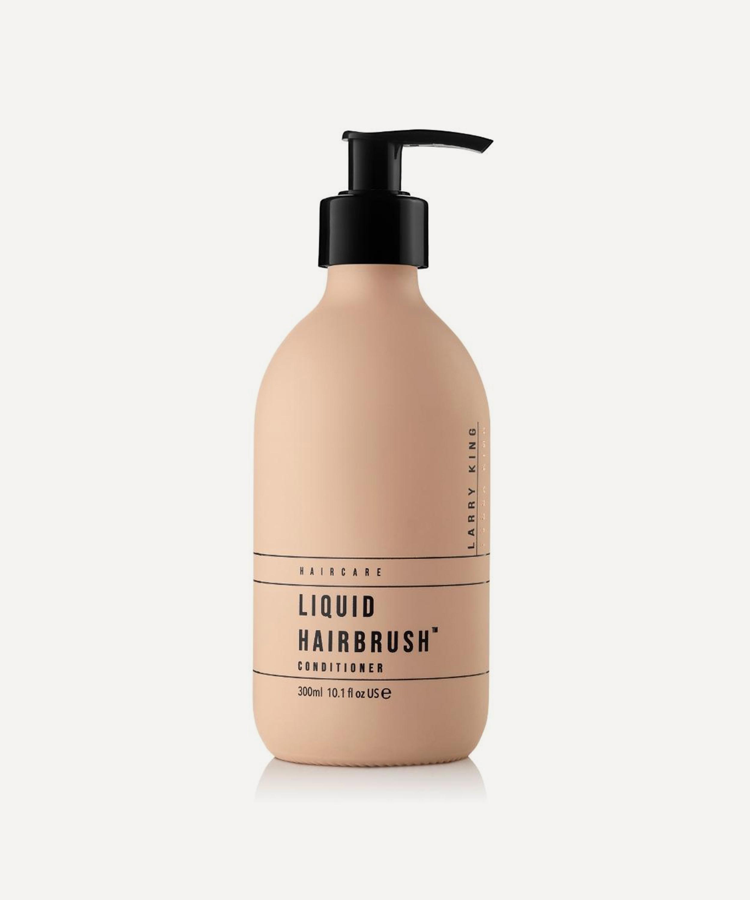Liquid Hairbrush Conditioner from Larry King Hair is a lightweight conditioning formula designed to smooth down the hair shaft, lock in moisture and combat tangles during rinsing, reducing the need for brushing.