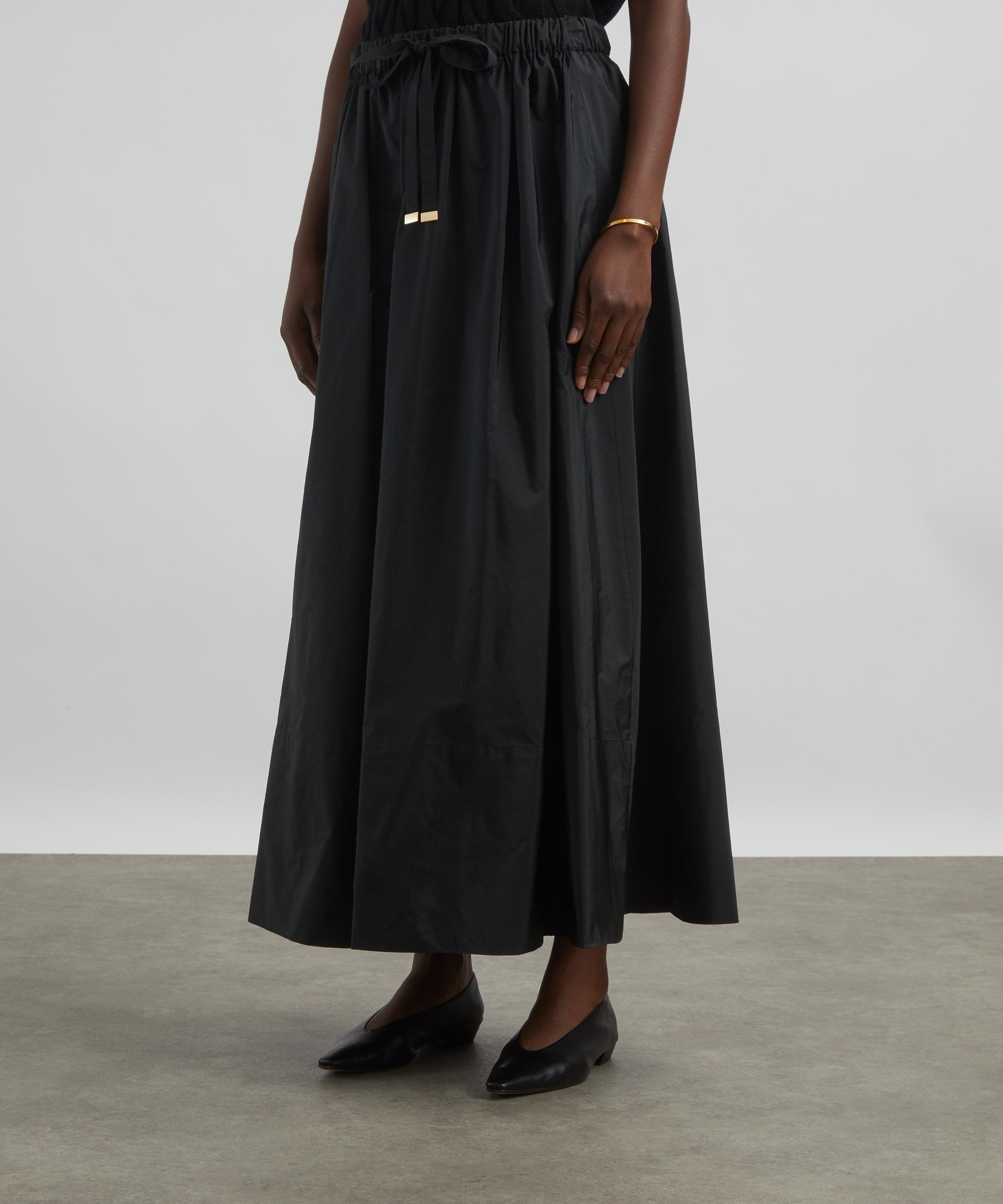 Crafted from lightweight, water-repellent technical taffeta, this maxi-skirt has a voluminous, flared silhouette complete with side pockets and a drawstring waist featuring grosgrain ribbon ties.