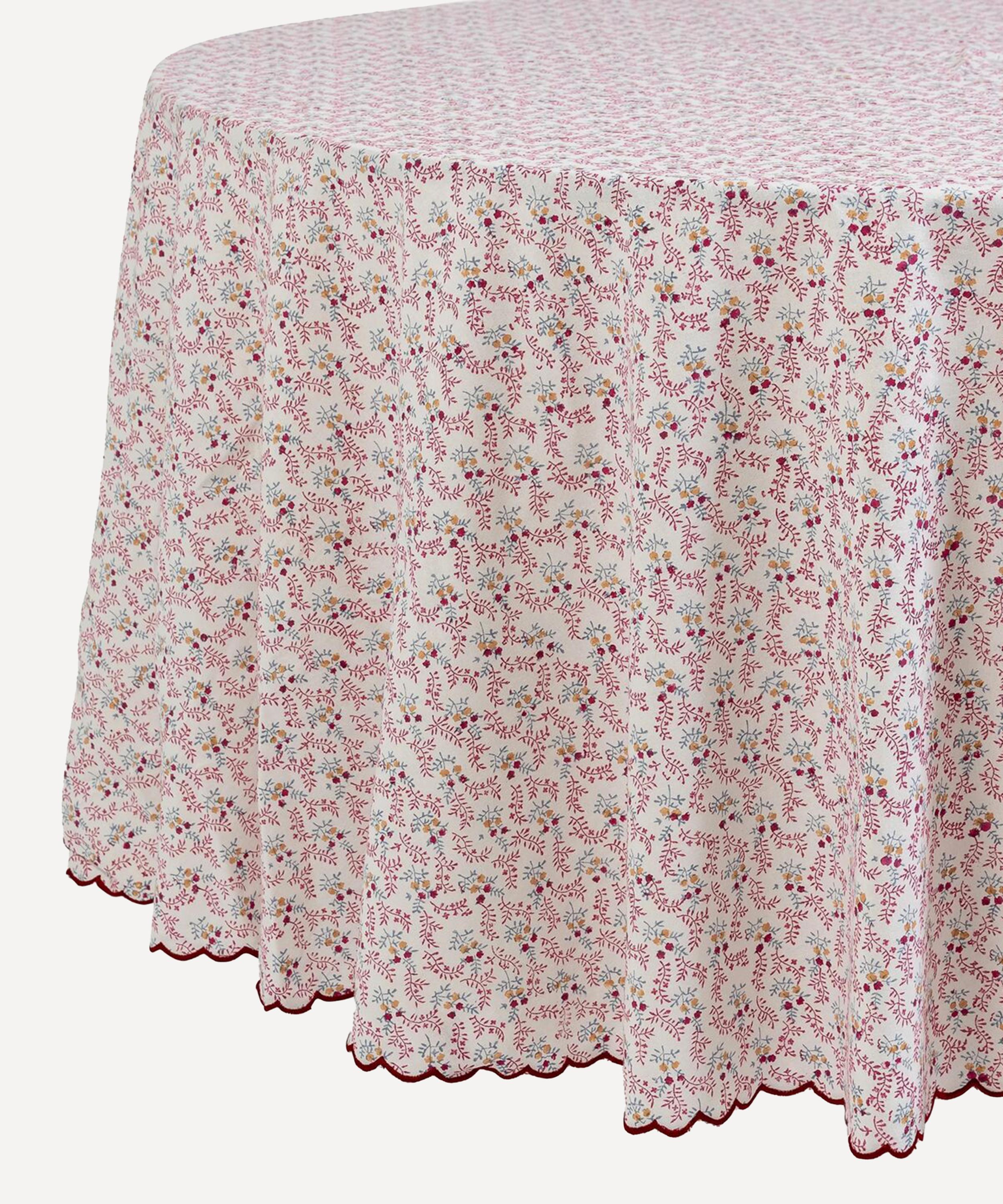 Cultivate a cool and colourful feel by finishing off your table setting with this Little Flower round tablecloth. Expertly made from soft cotton yarns, it’s defined by a hand-blocked floral pattern and scalloped edges – recalling the brand’s clever blend of creativity and craftsmanship. Partner it with the matching napkins for maximum impact.