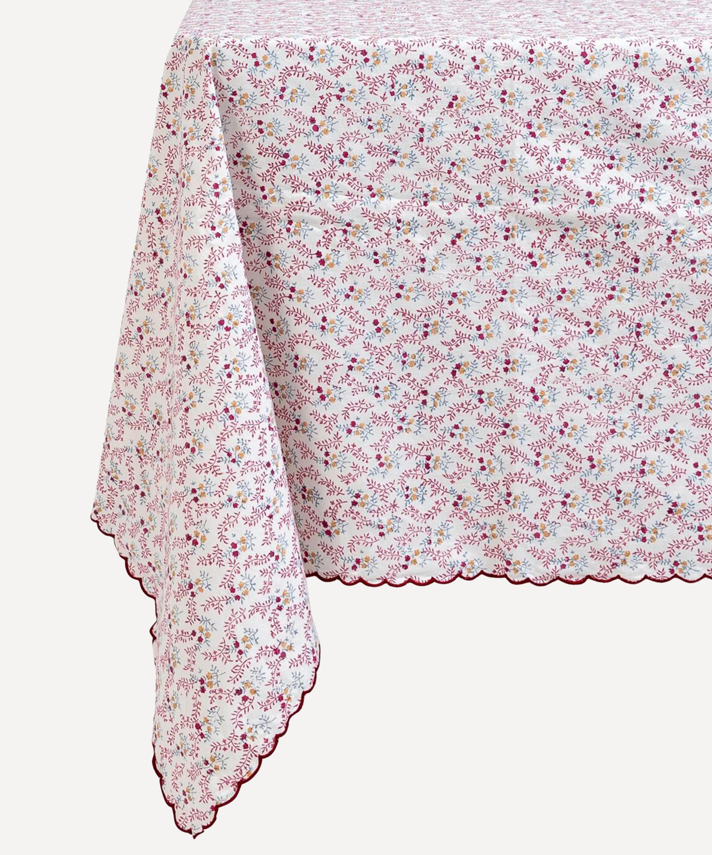 Cultivate a cool and colourful feel by finishing off your table setting with this Little Flower tablecloth. Expertly made from soft cotton yarns, it’s defined by a hand-blocked floral pattern and scalloped edges – recalling the brand’s clever blend of creativity and craftsmanship. Partner it with the matching napkins for maximum impact.