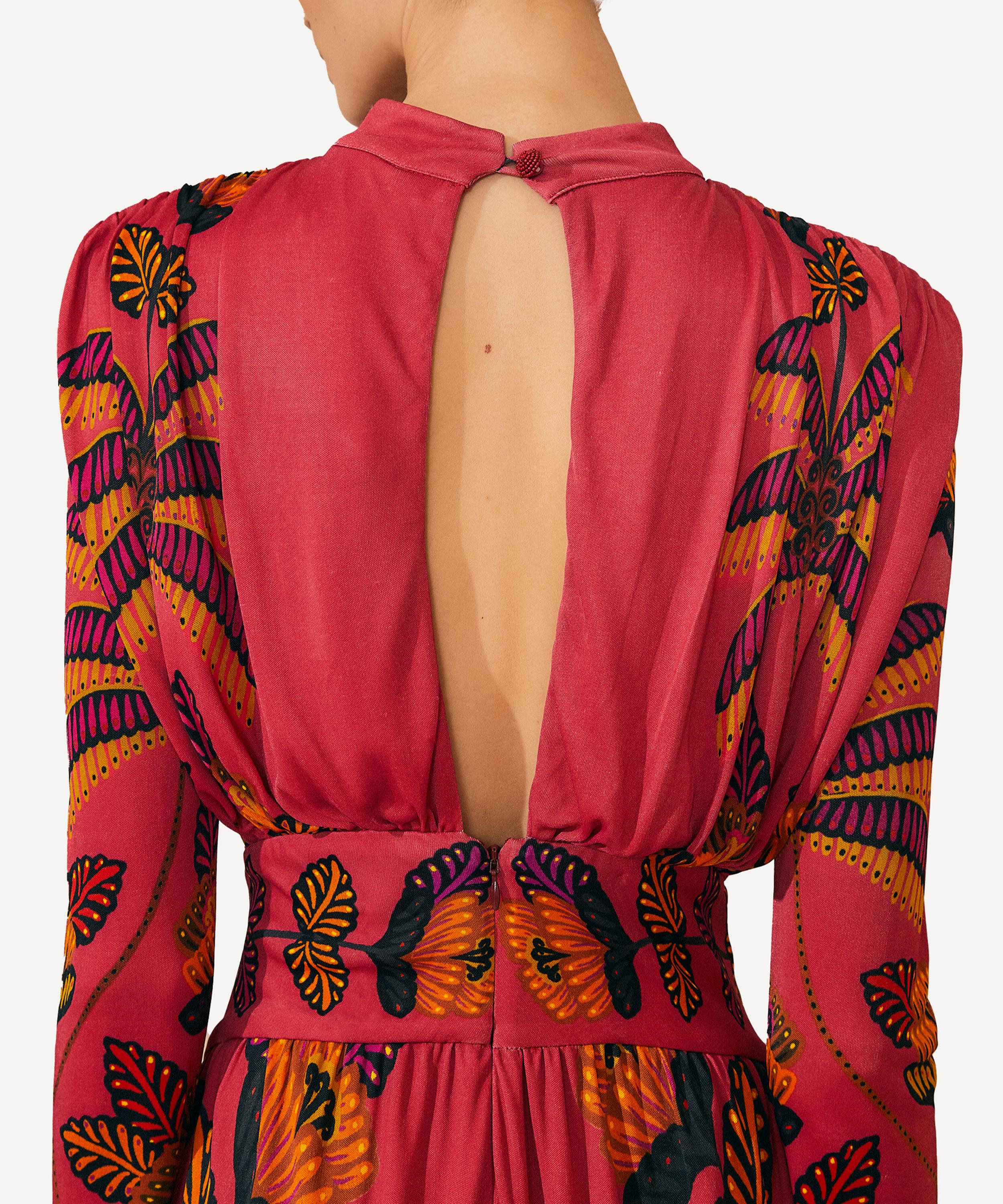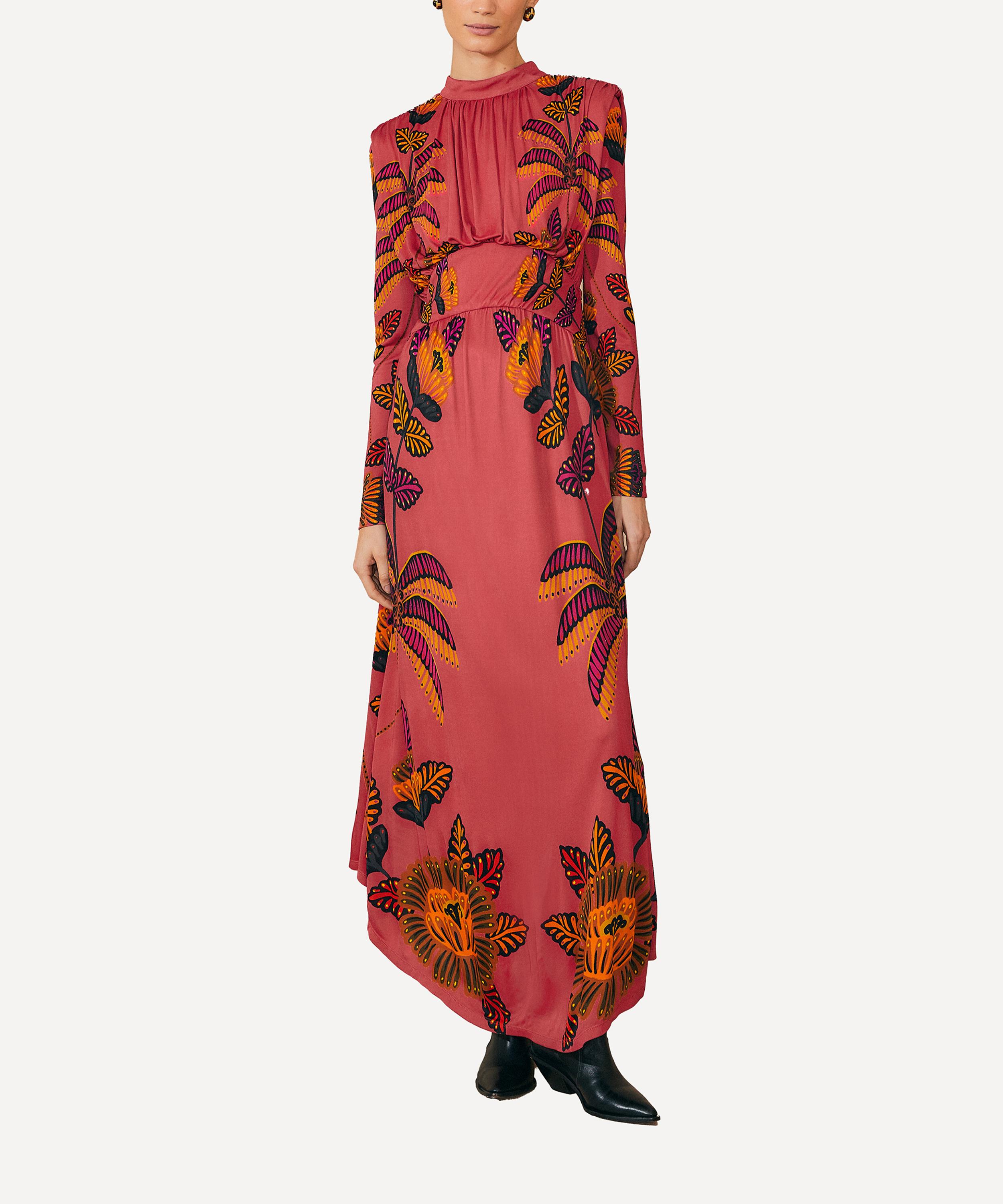 Adorned all-over in the bold and blooming Living Bloom Blush print, this statement maxi-dress is a versatile staple for any season or occasion with its long sleeves and high-neckline, complete with ruched shoulder detailing and an ankle-grazing, asymmetric hem.