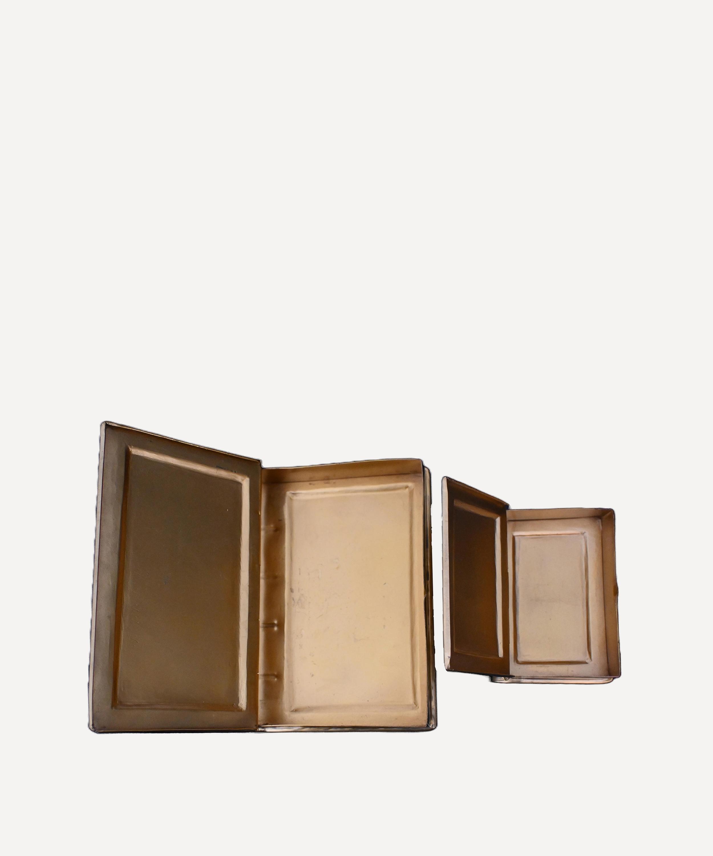 Meticulously crafted from durable patinated iron, these boxes feature wonderfully idiosyncratic book design. Looking especially charming when stacked atop one another, fill with odds and ends or arrange on your desk for the perfect eclectic yet practical accent to your workspace.