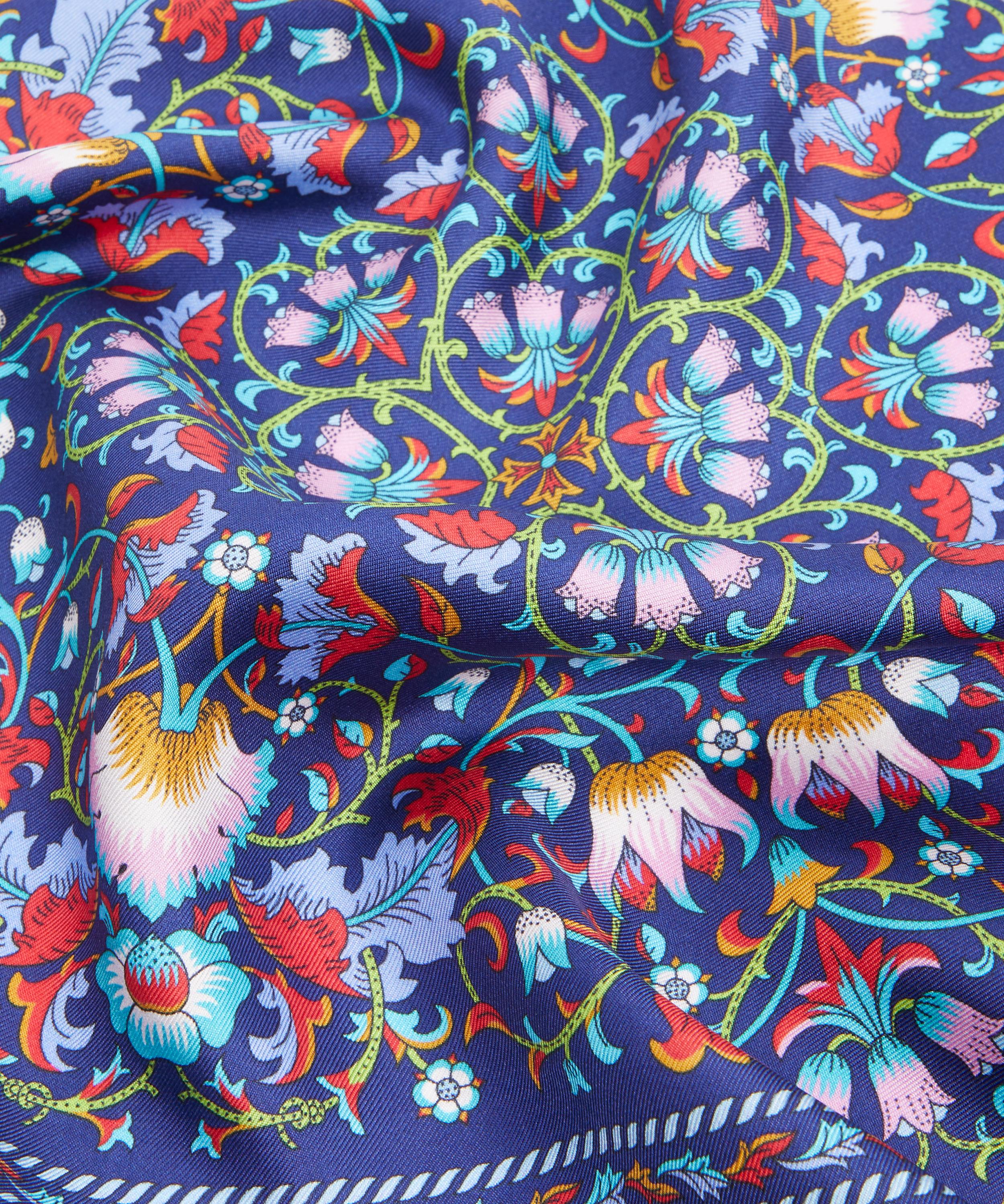 Update your look with a statement piece that is steeped in history; beautifully decorated in Lodden Liberty print, a design from 1884 credited to William Morris. When Morris & Co. closed down in 1939/40, the printers Stead McAlpine bought the original blocks, and Arthur Steward Liberty arranged for permission for a number of Morris designs to be used for Liberty. Here the original design has been transformed into this perfectly petite silk square scarf. Modernise the look by styling it creatively; think knotted onto bag handles, peeking from the neckline of a leather jacket or simply draped open around the neck.