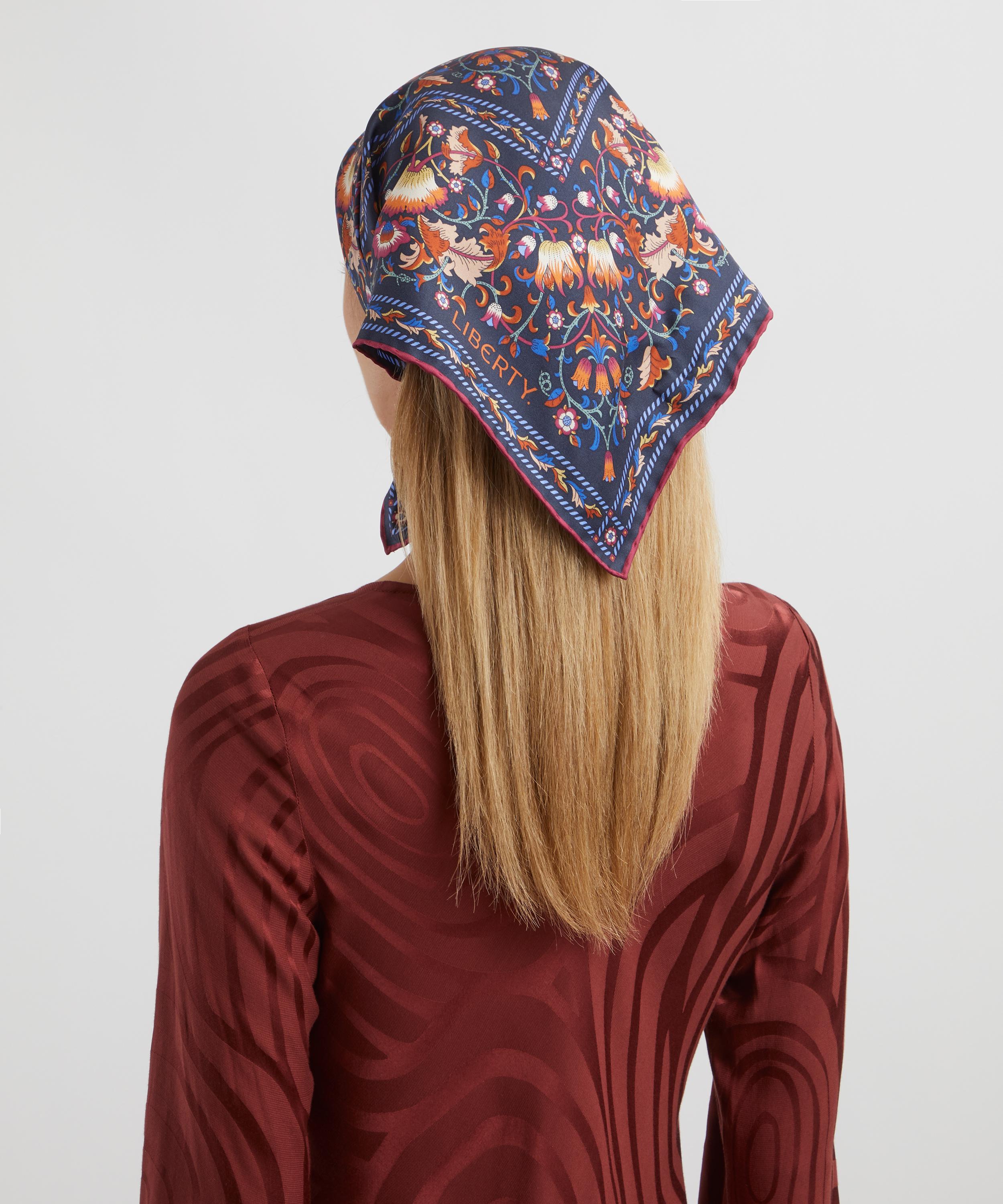 Meticulously crafted in Italy from an innovative and ultra-soft silk fabric with hand rolled hems, it’s characterised by our showstopping Loddon print – boasting an Arts and Crafts classic, originally designed by William Morris in 1884. Designed to stand the test of time, this versatile, year-round staple offer seamless adaptability, try styling it as a traditional neck scarf to lock in warmth, wear it as a chic hair accessory, or use as a creative embellishment to a bag, the possibilities are endless.