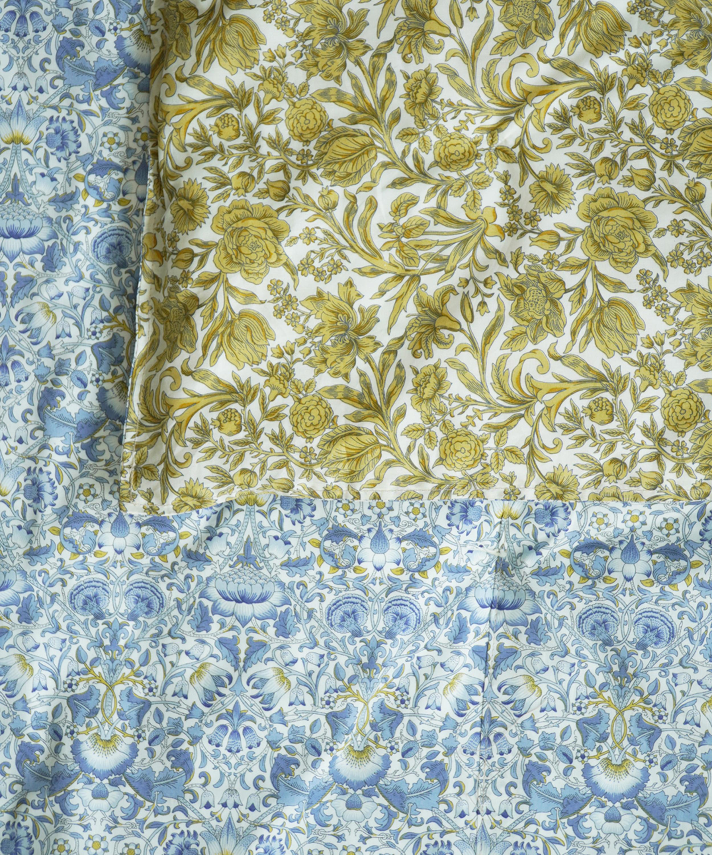 • Liberty Fabrics' Lodden in China Blue and Sambourne in Yellow prints