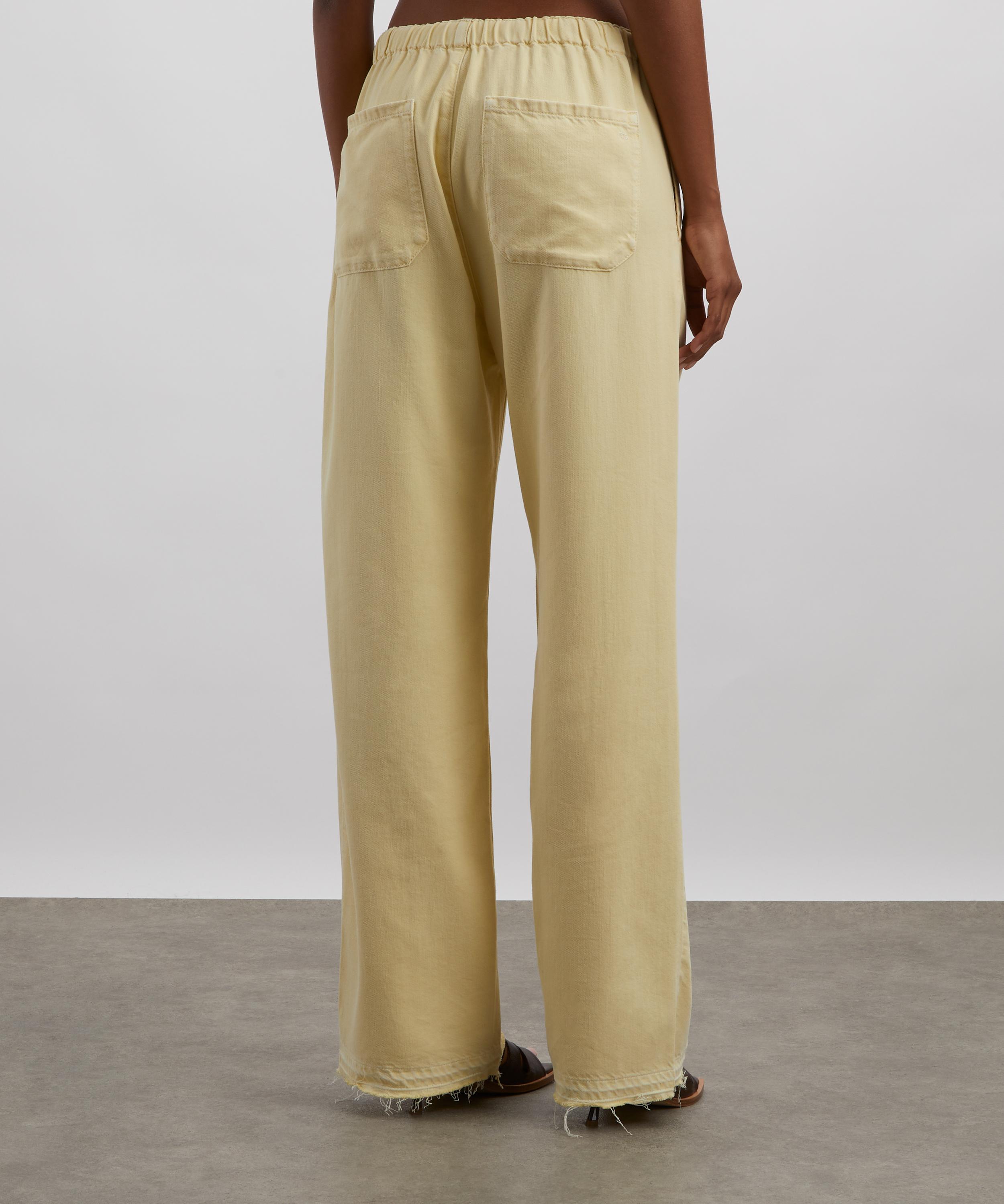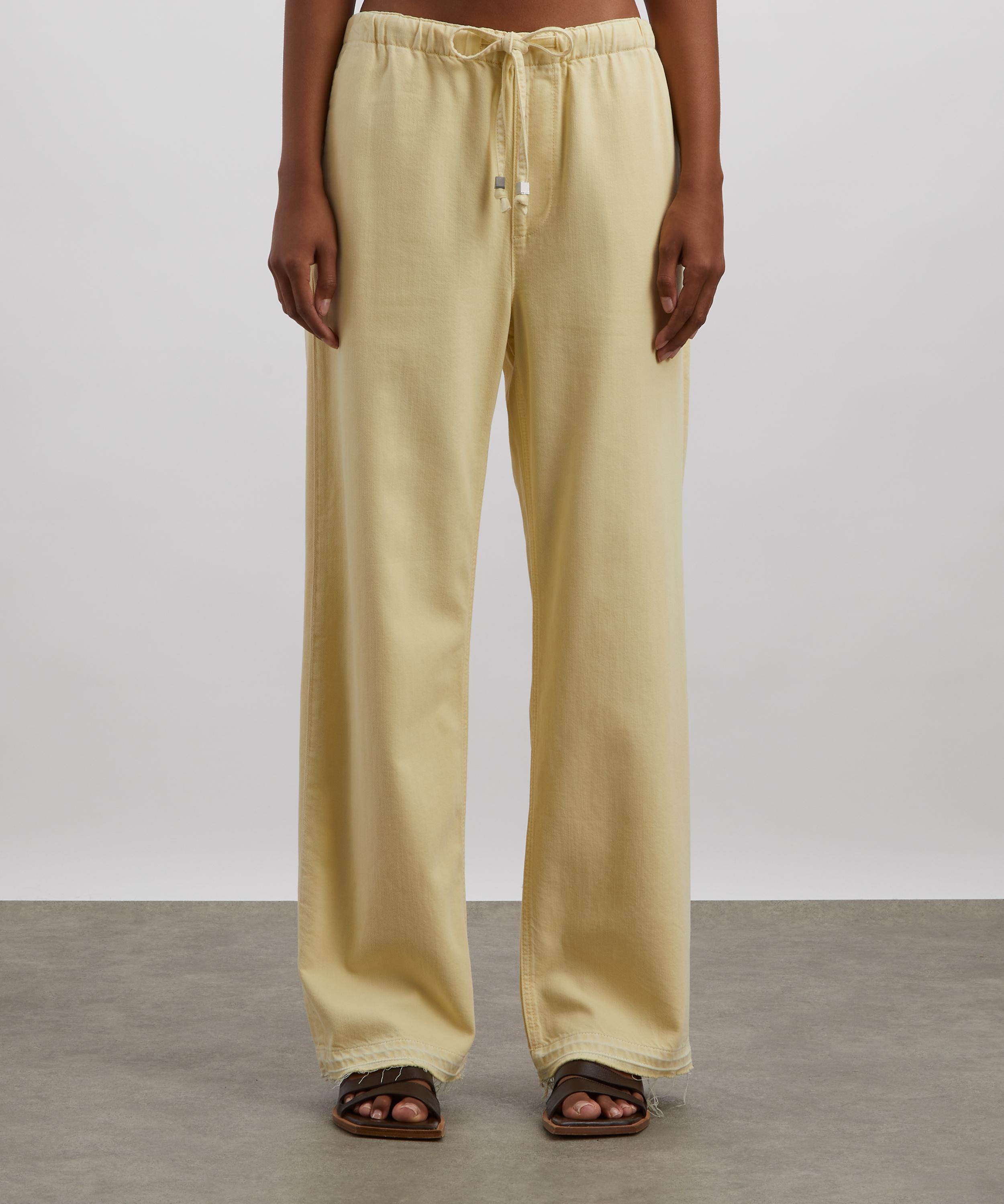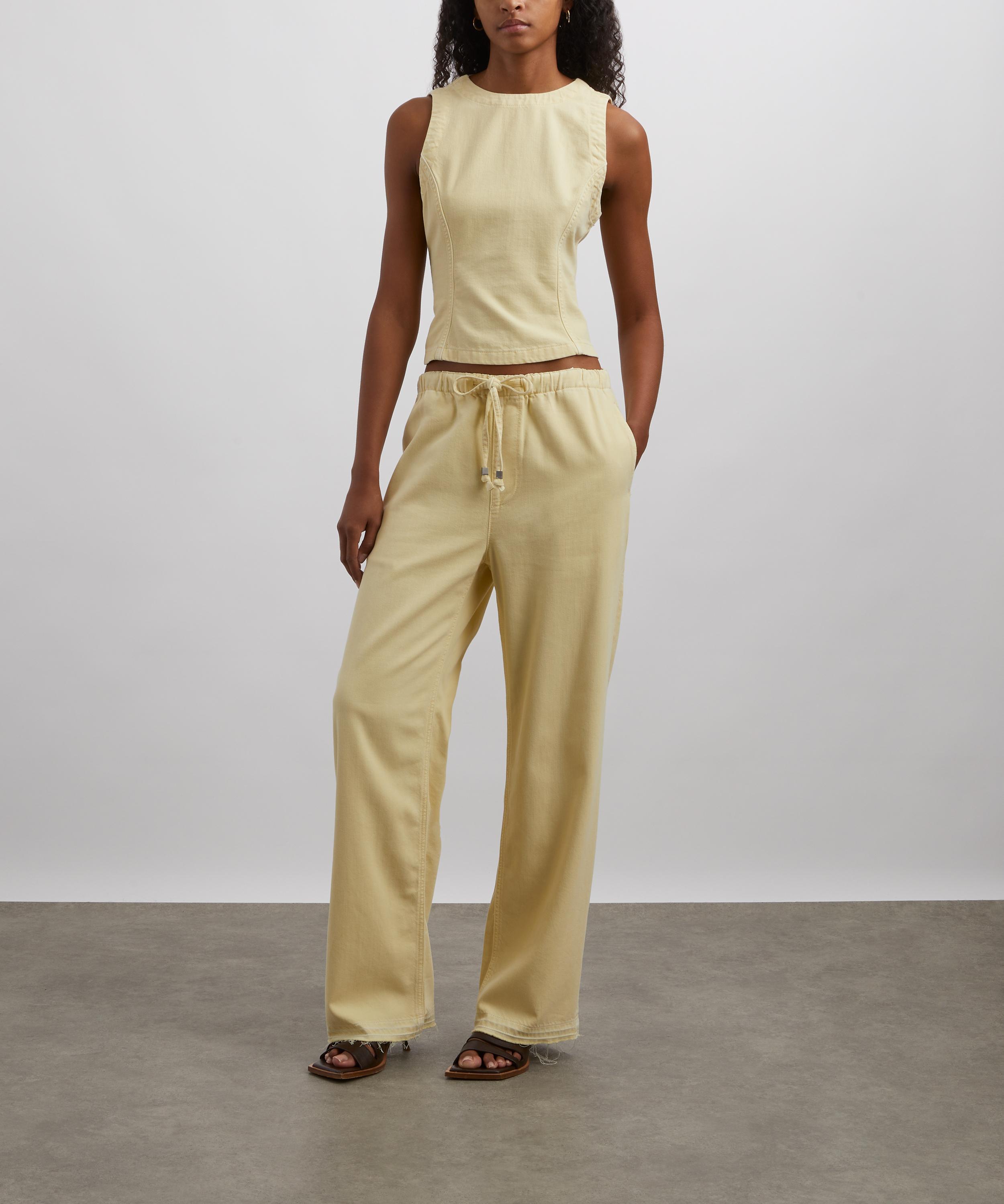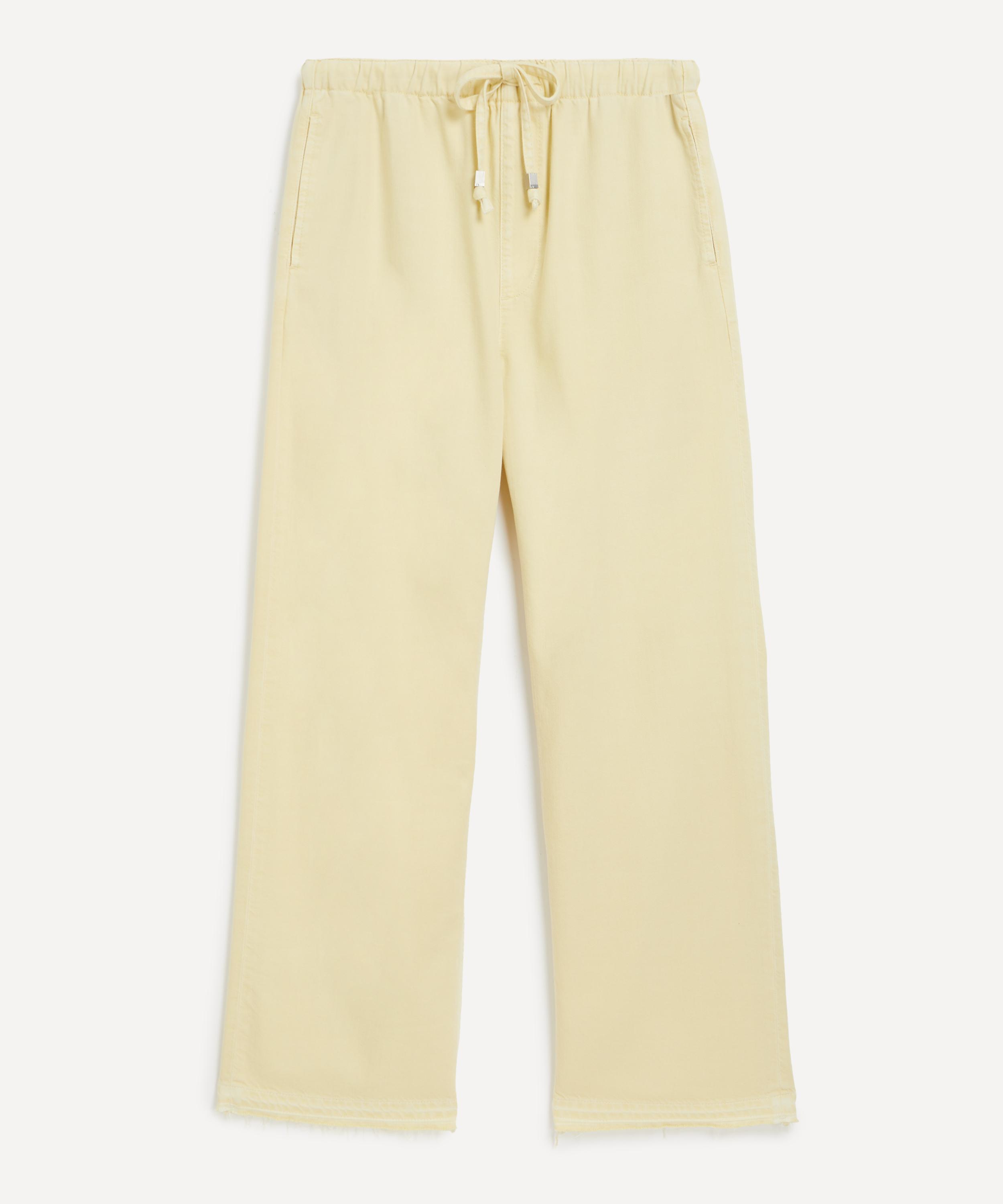 Made from a lightweight, breathable cotton blend, these pull-on wide-leg trousers effortlessly blend sophistication with comfort. Featuring an elasticated drawstring waistband, their soft lemon hue makes them the perfect go-to piece for effortless summer style.