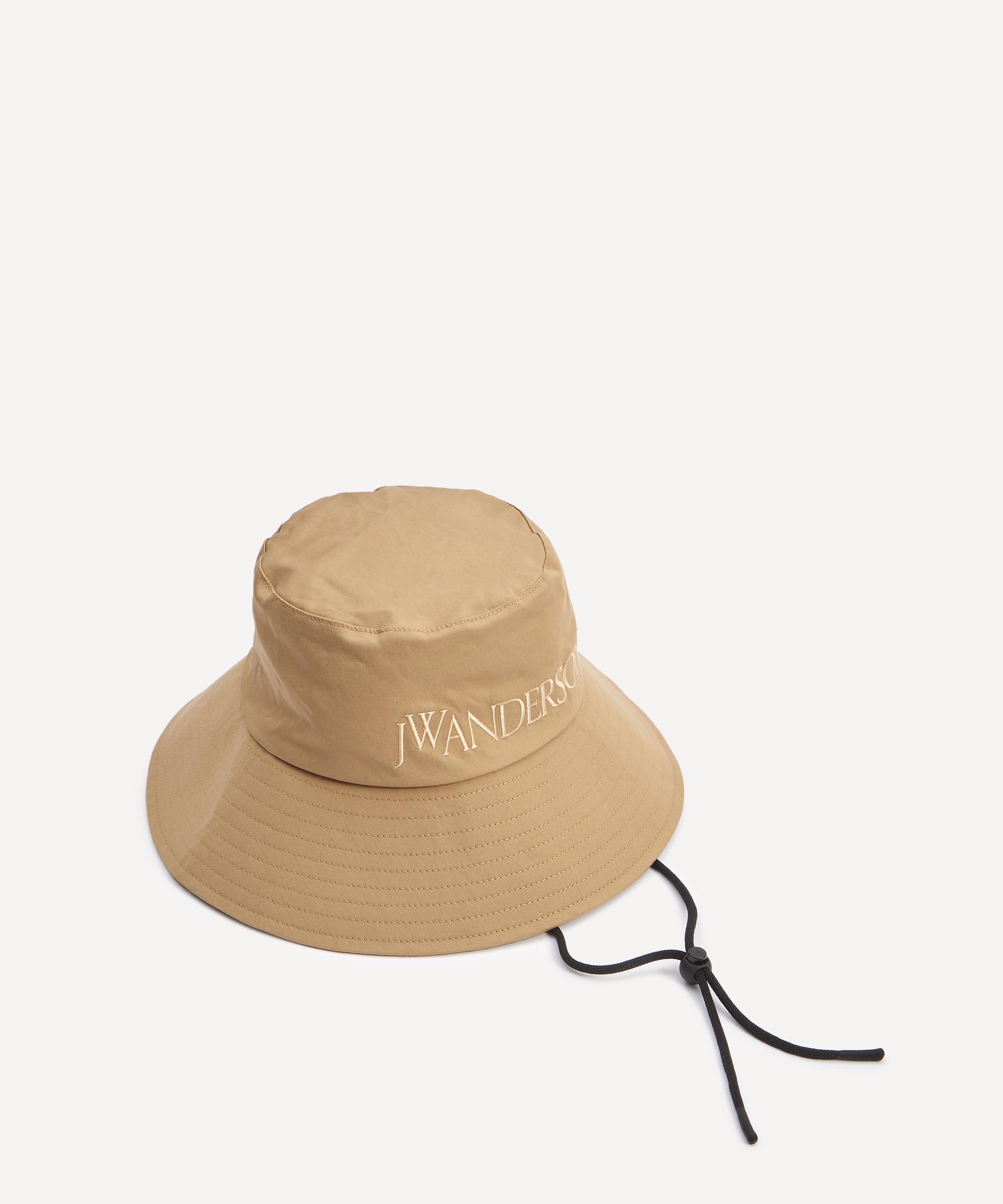 The endlessly chic Shade bucket hat from JW Anderson is defined by the large, tonal logo embroidery that adorns the front - the perfect accessory for weekends in the city. Crafted from a durable cotton canvas, this stylish hat boasts a wide stitched brim, a flat crown, an adjustable chin cord with toggle fastening and is finished with large embroidered branding across the front.