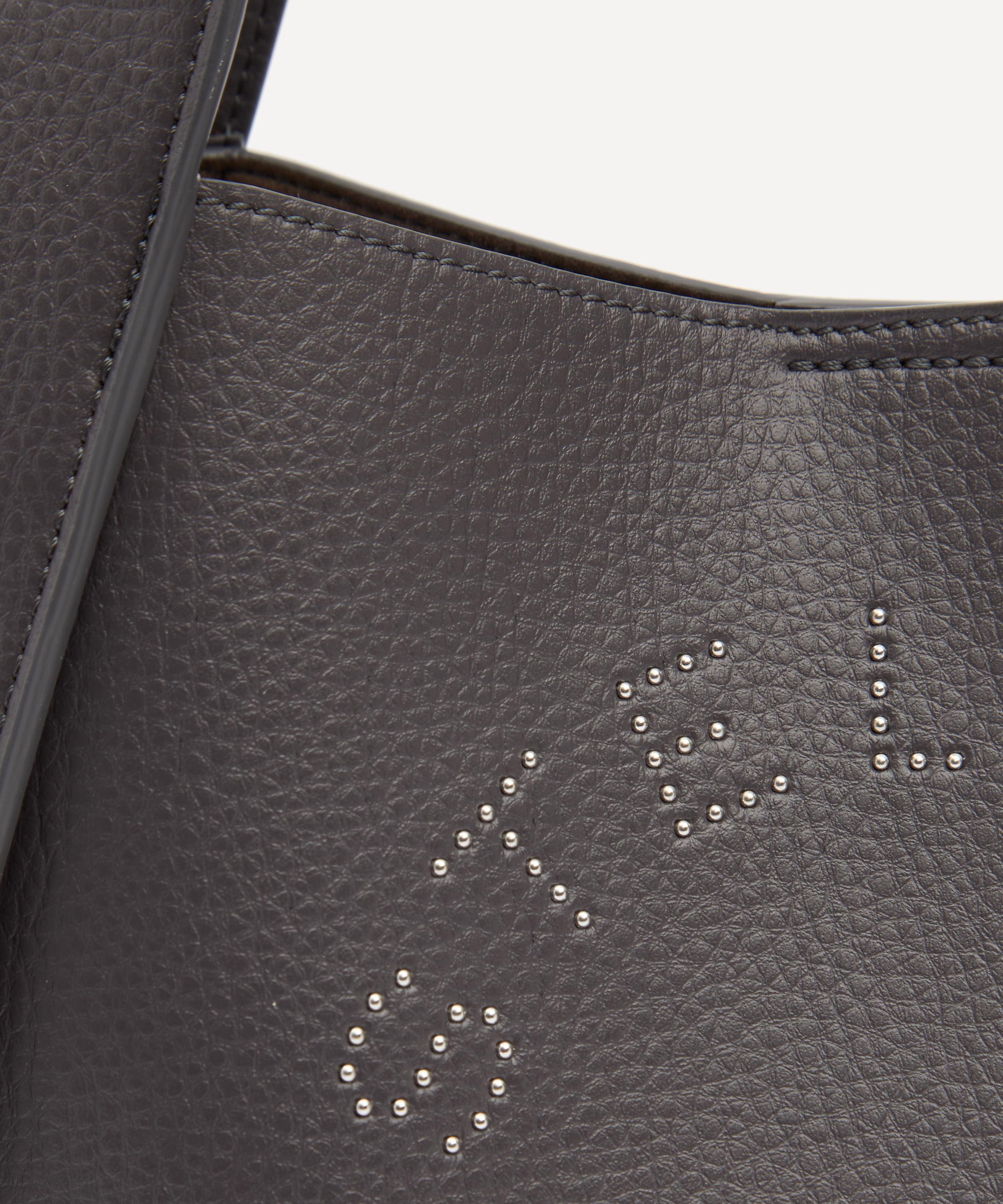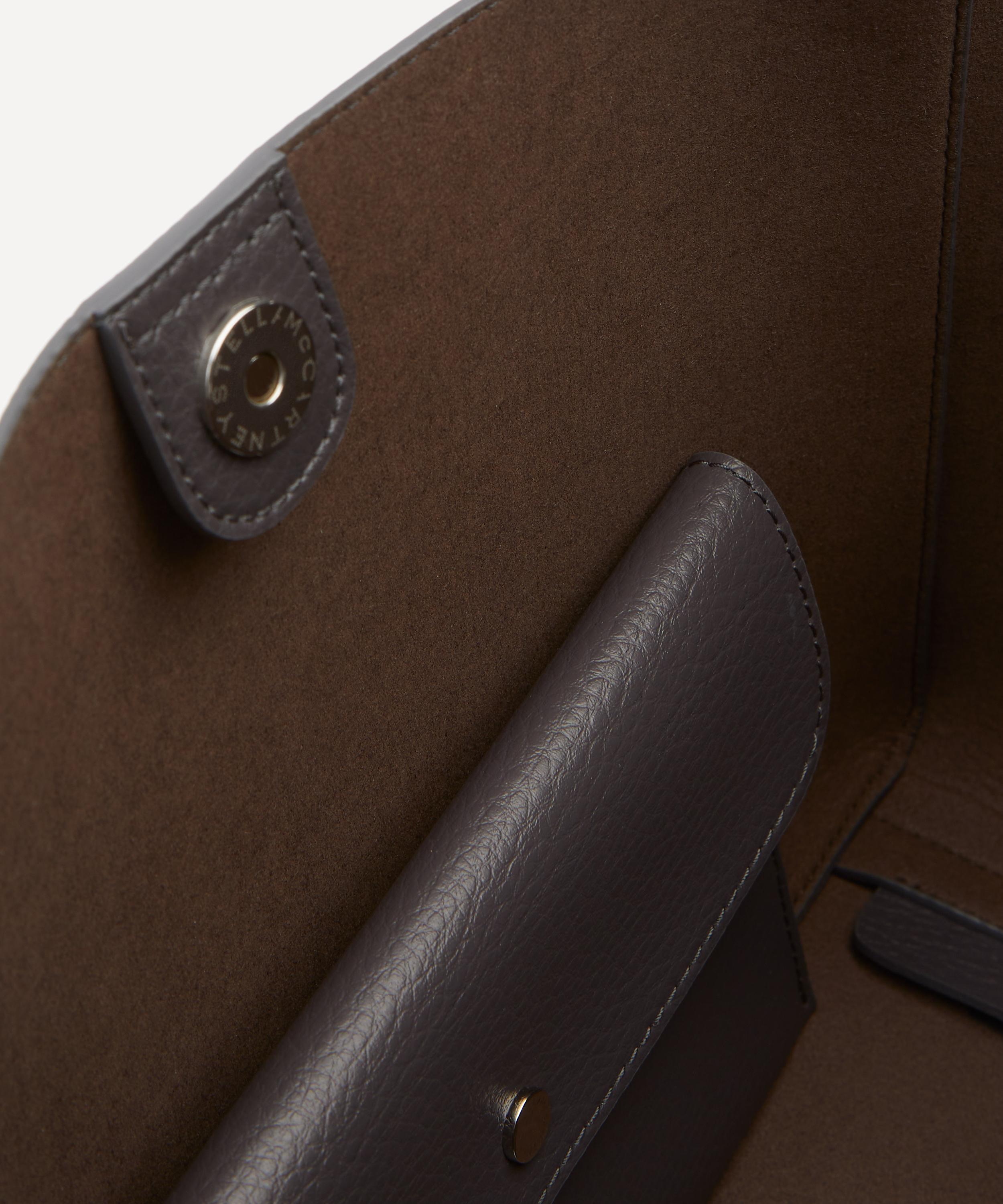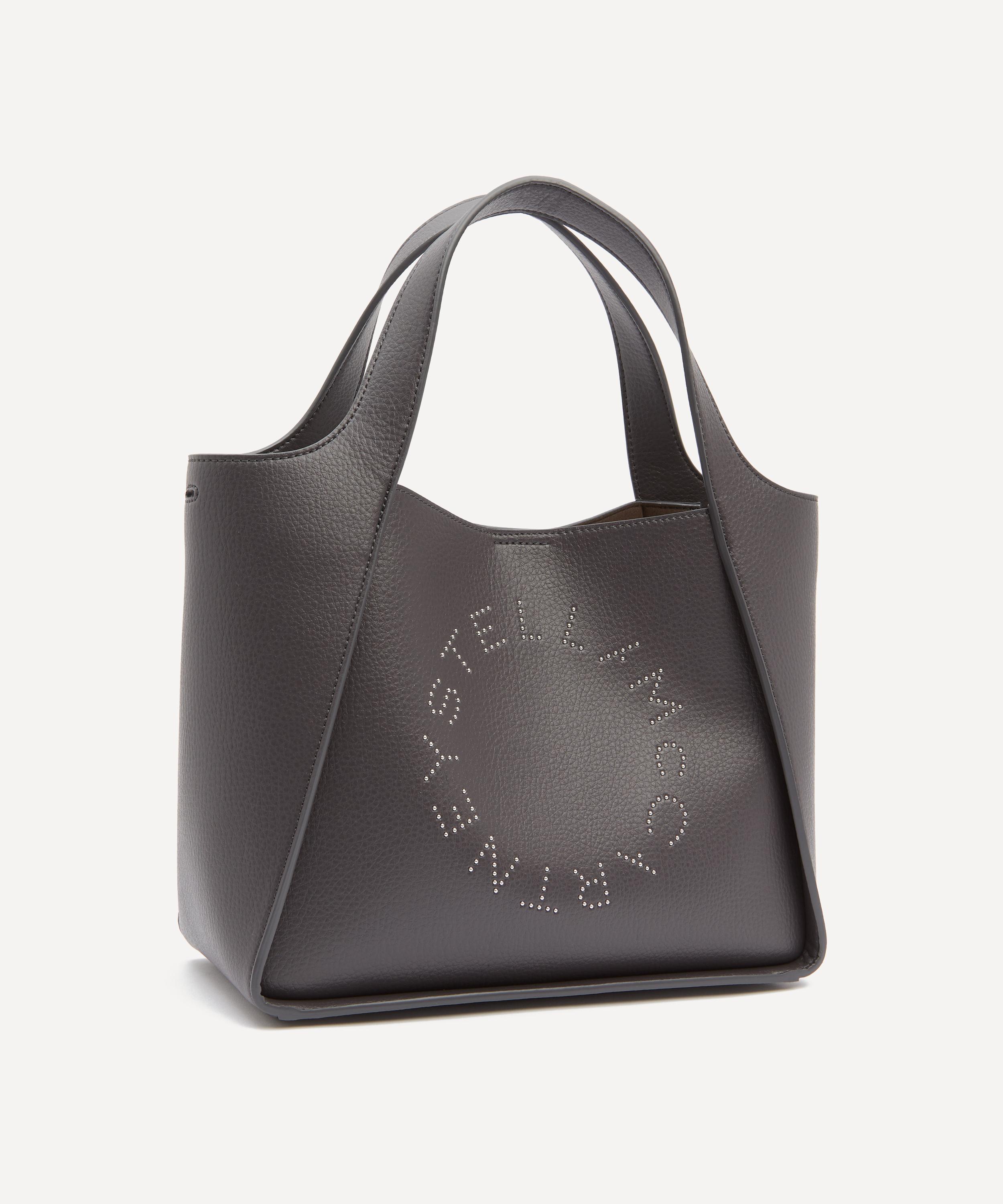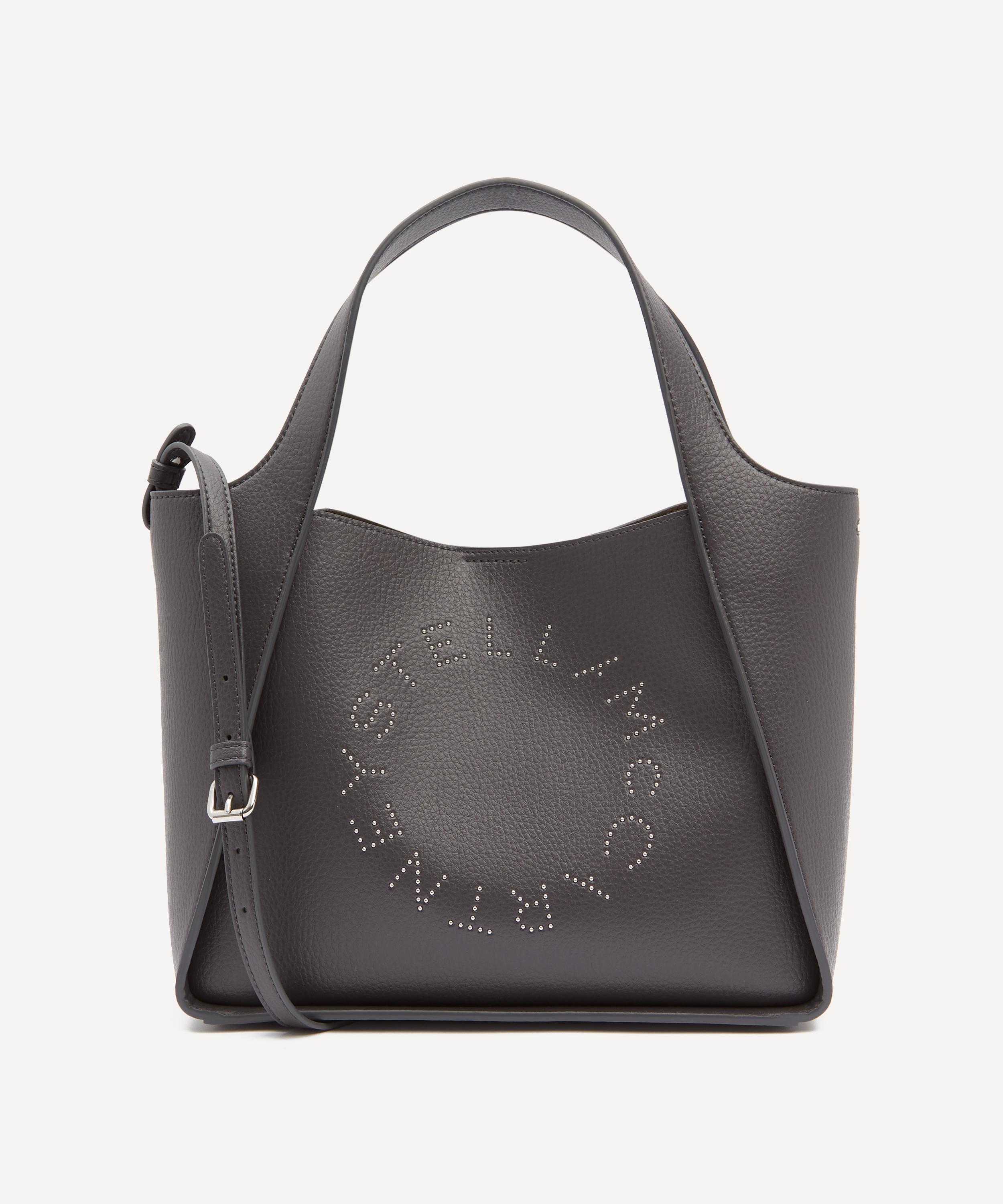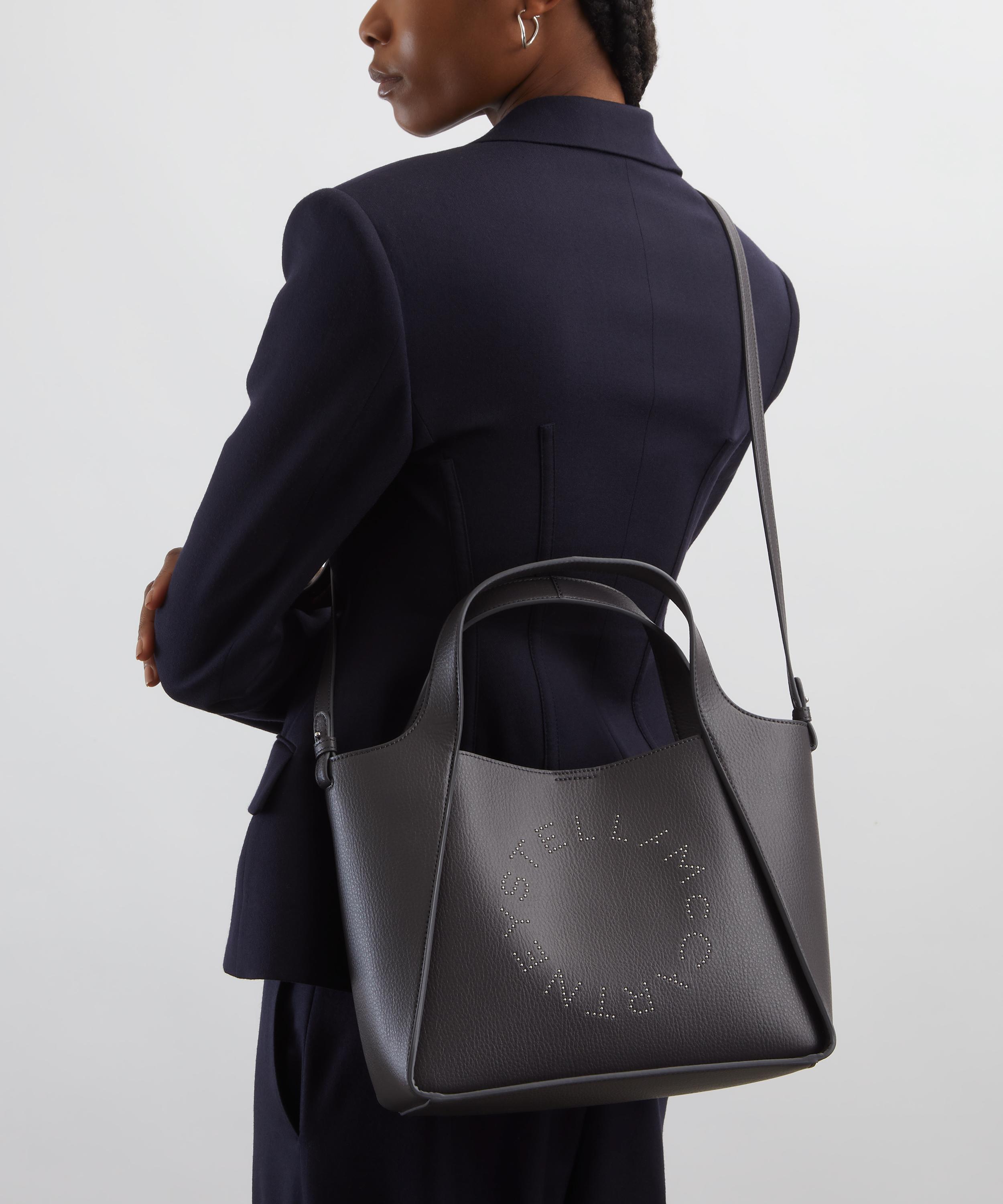 Characterised by a slouchy silhouette with a structured base and sides, this sophisticated tote bag features a spacious interior with a suede-effect lining and a removable snap button pouch for securing small essentials. The design is finished with the distinctive brand logo that appears throughout the Stella Logo collection, studded meticulously onto the front – complete with two top handles and an optional long strap, carry it in one hand or sling it over your shoulder for an elevated finish that’s set to become the focal point of any look.