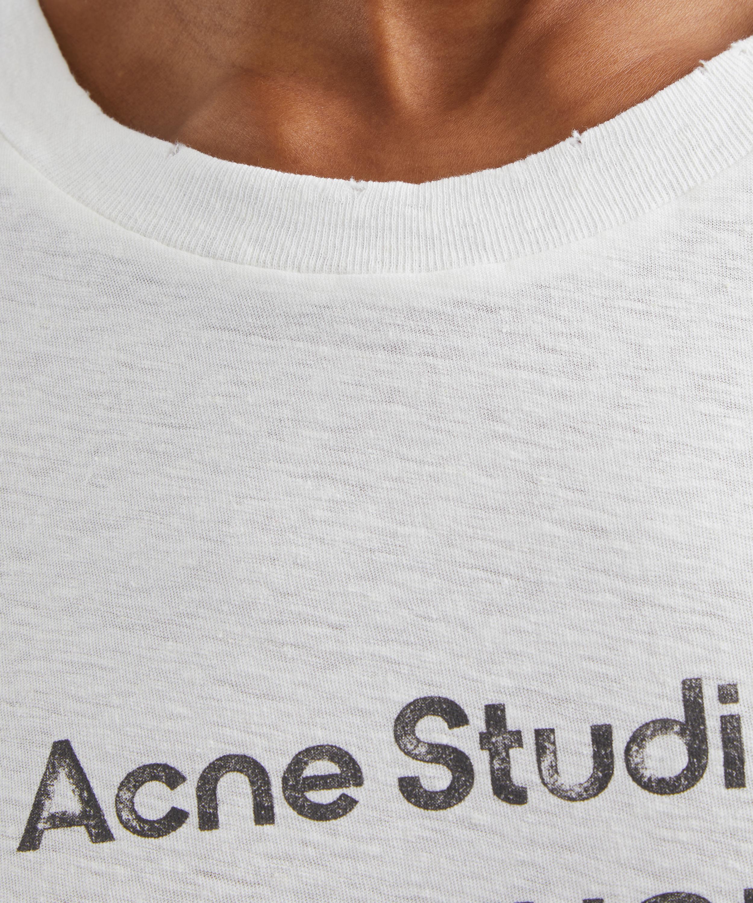 Crafted from a cotton-hemp blend, this T-shirt features a classic crew neckline, short sleeves, and distressed detailing at the neck, sleeves, and hem for a vintage, lived-in feel. Finished with an Acne Studios 1996 logo on the front, it offers a signature touch.