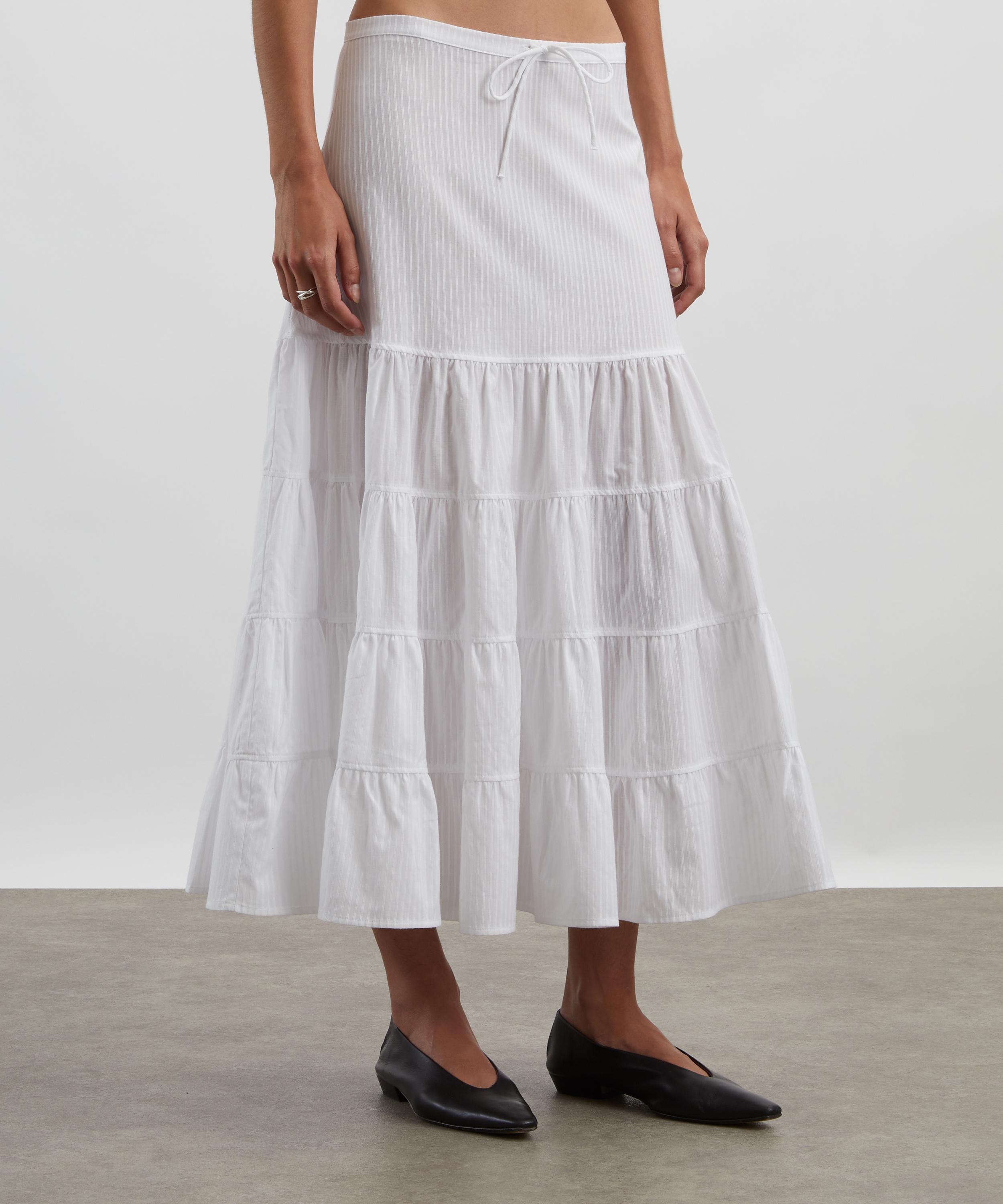 Expertly crafted in Spain from textured striped cotton, the Long Étoile skirt features a flowing, tiered silhouette that gracefully grazes the ankles.