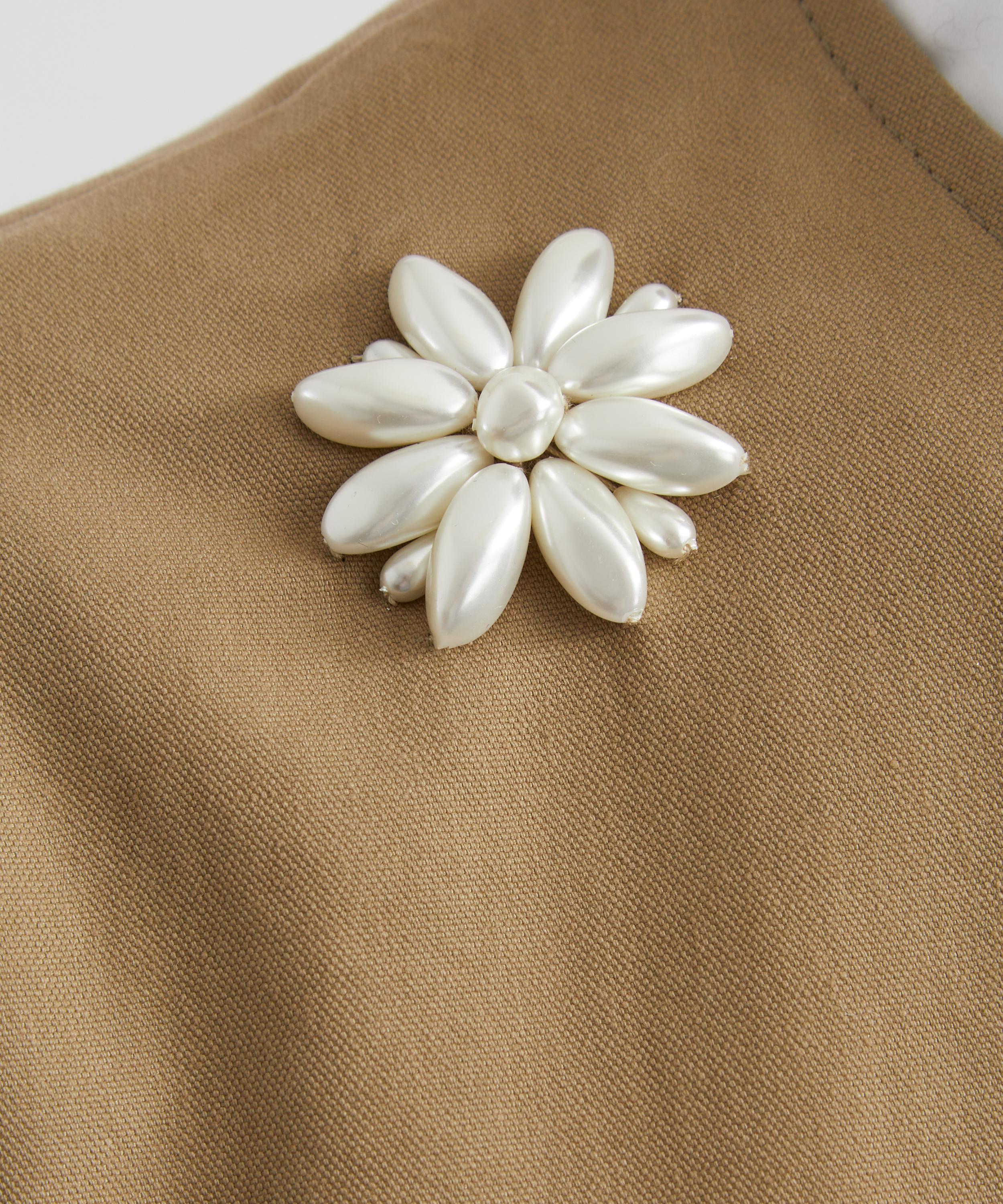 With a clean, collarless neckline and subtle front slits, this cotton-blend trench reimagines a classic silhouette with modern femininity. The double-breasted design is cinched with an adjustable buckle belt, while snap-on flower pearl buttons add a distinctive, signature finish.