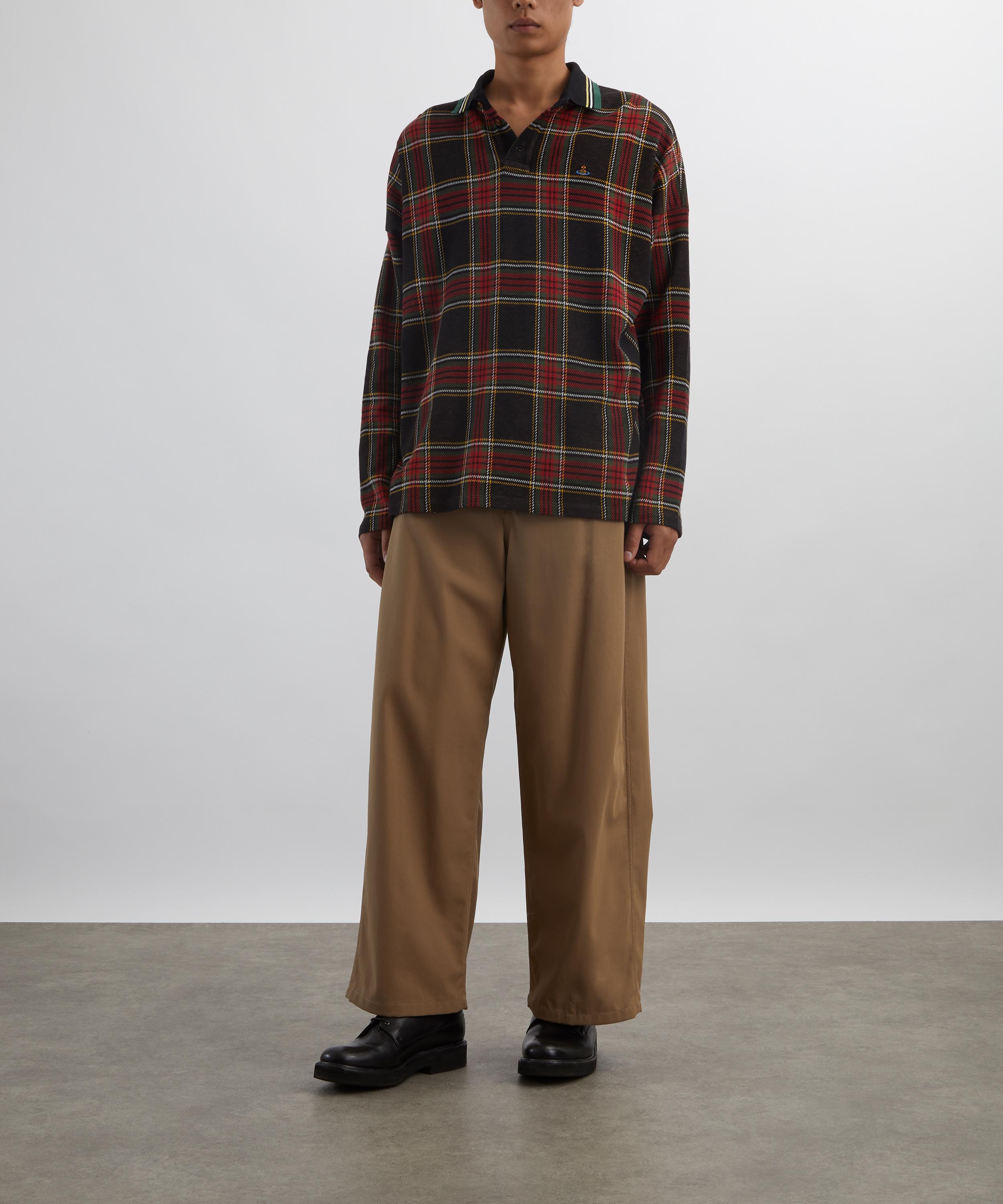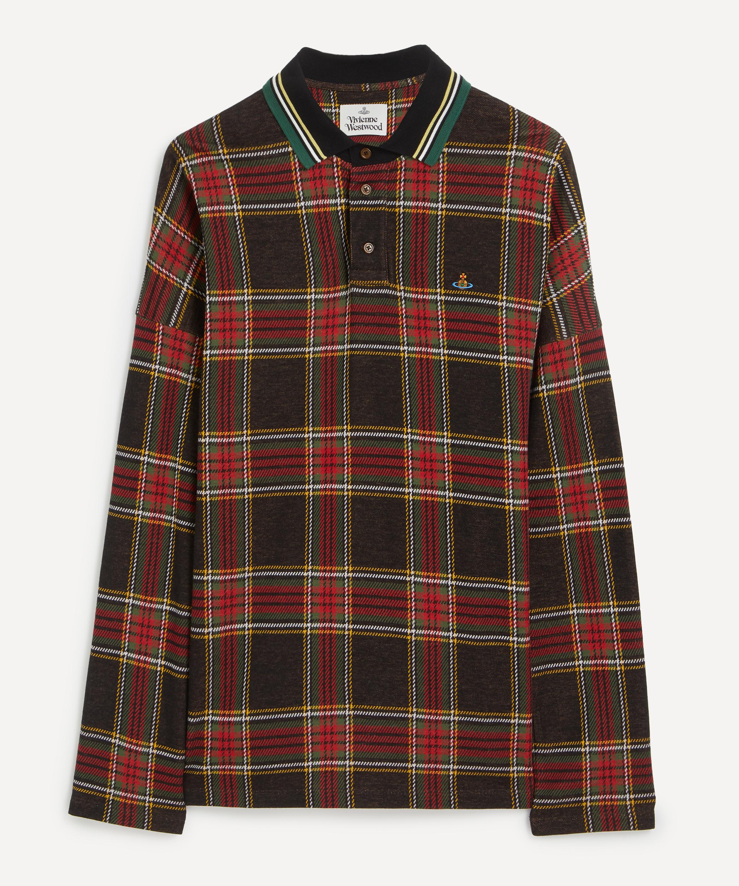 The Long-Sleeve Tartan Polo by Vivienne Westwood channels punk-inspired attitude and bold design, making it a striking statement piece.