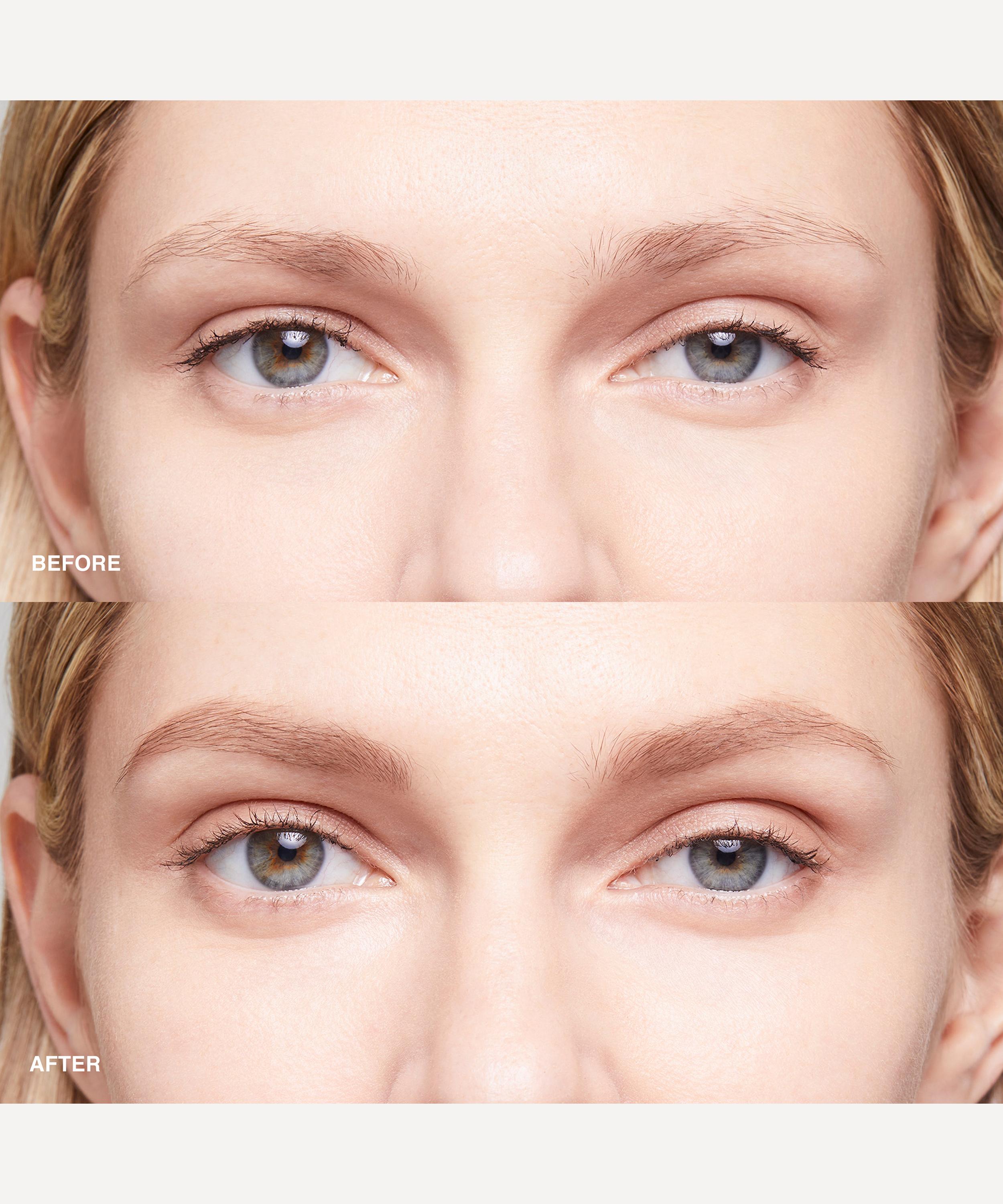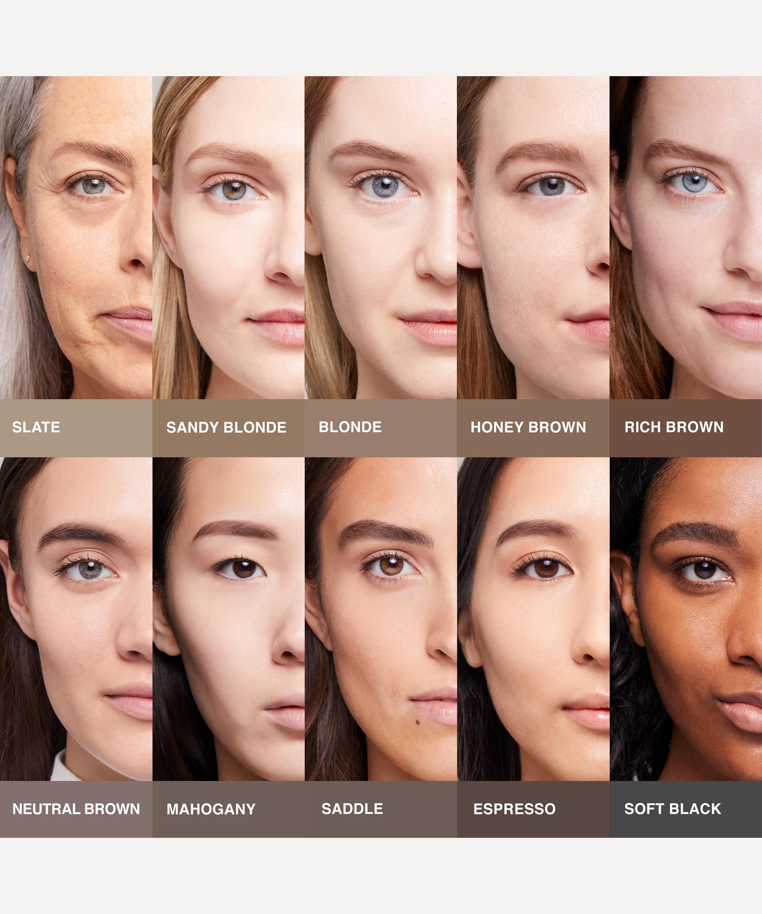 Start with the flat side of the pencil to shape and shade the head of the brow. Use the pencil’s pointed tip to define the arch and tail with short, precise strokes. Polish it off by combing hairs into place with the attached spoolie.