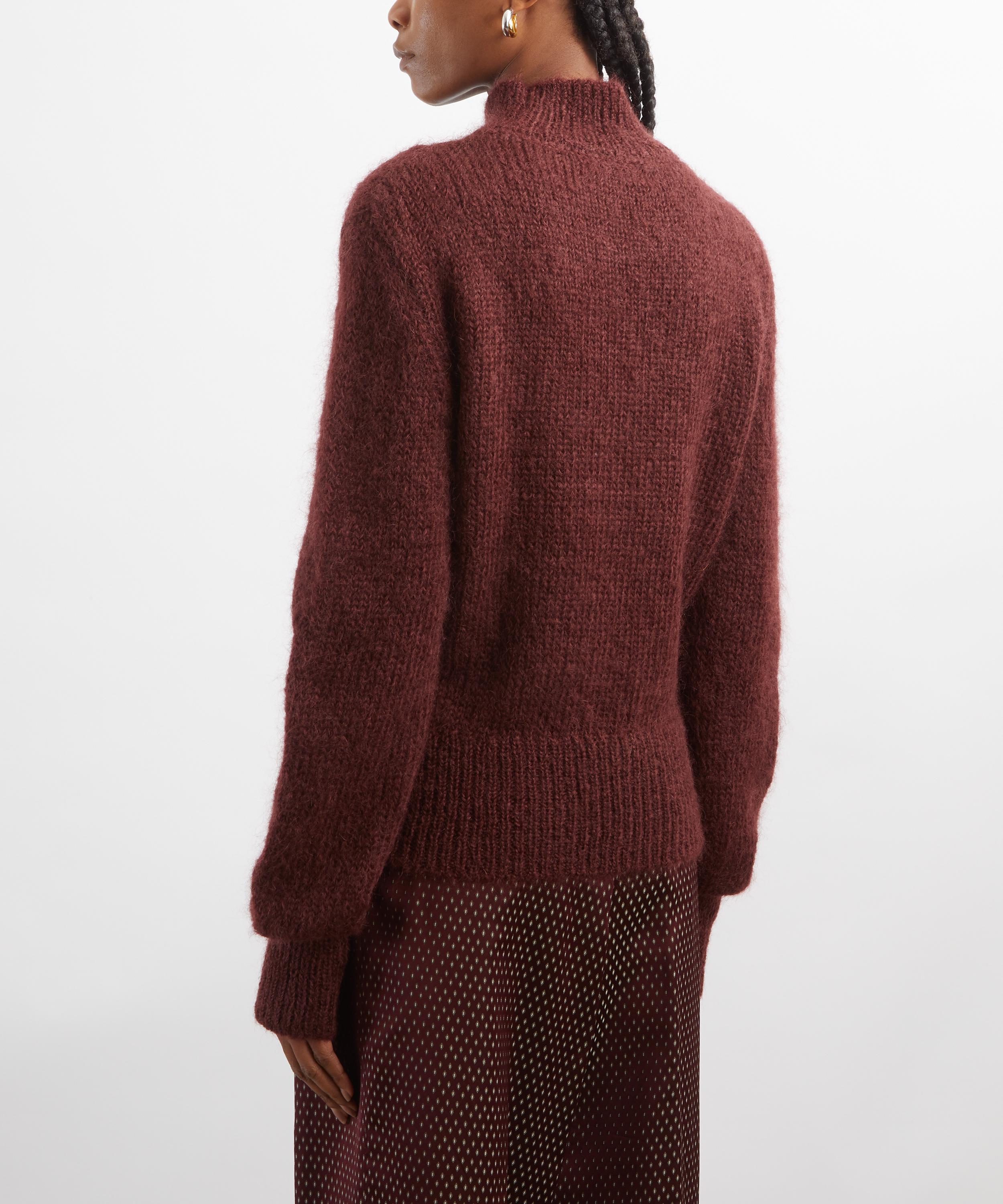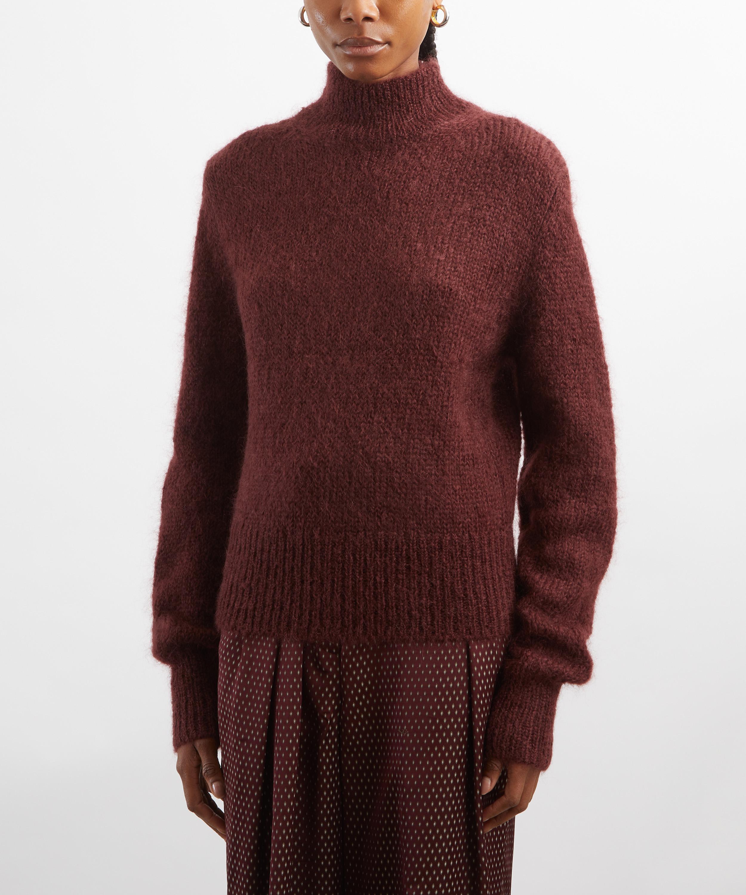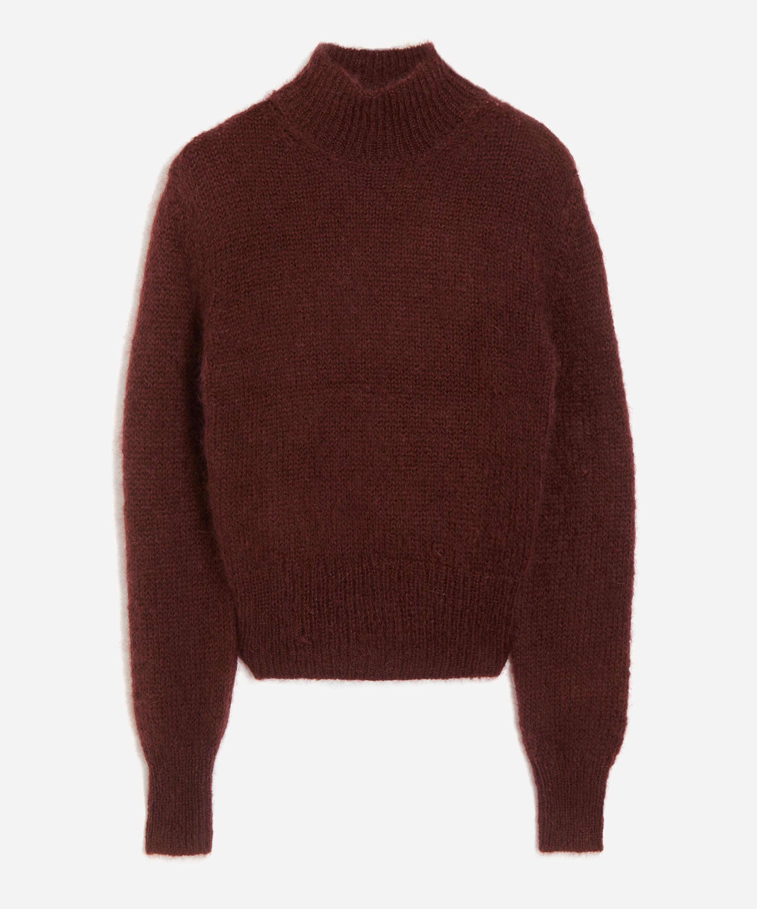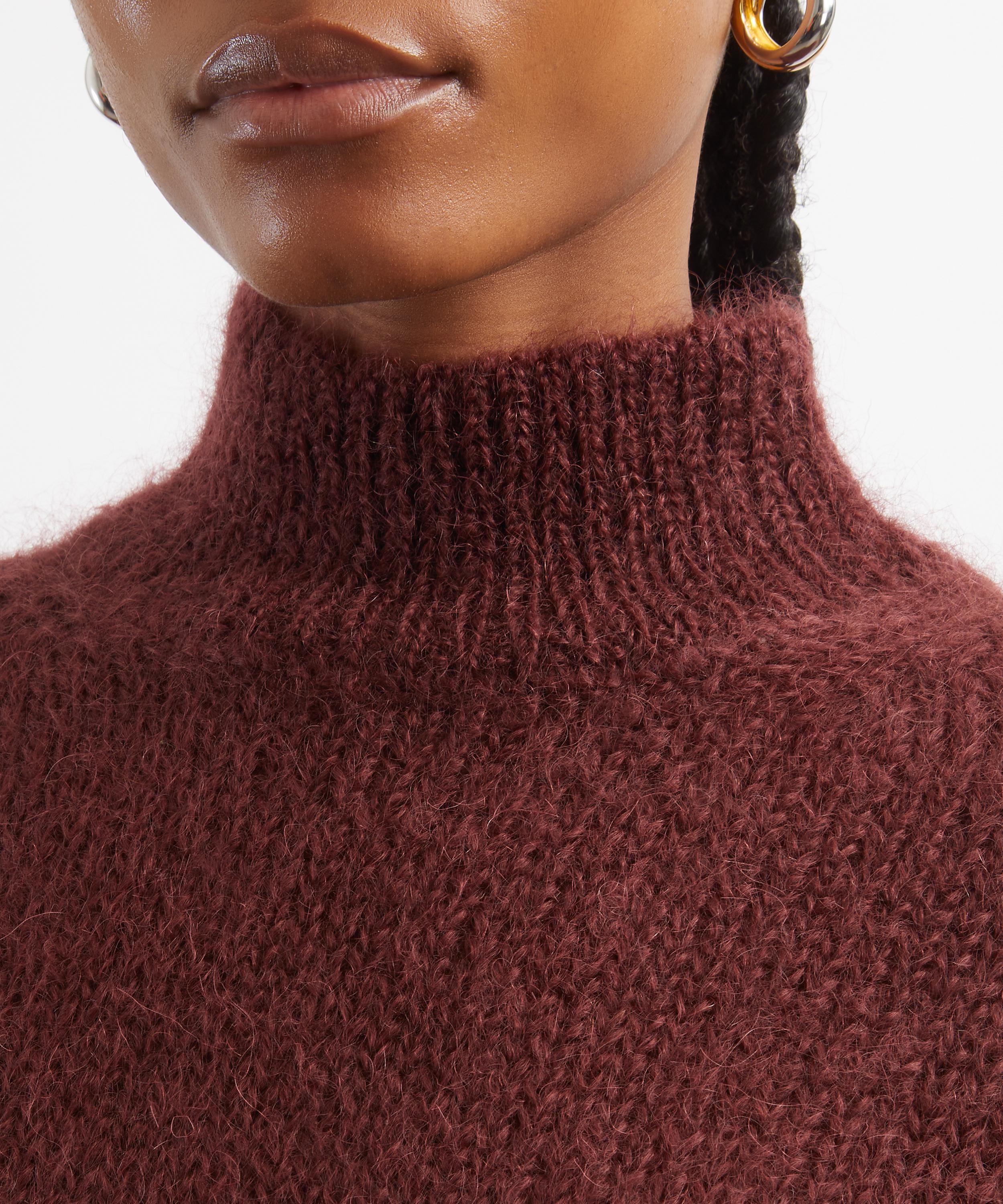 Crafted from a fluffy mohair blend, this cosy knit features a relaxed fit with dropped shoulders, long sleeves, and a snug turtleneck for ultimate warmth.