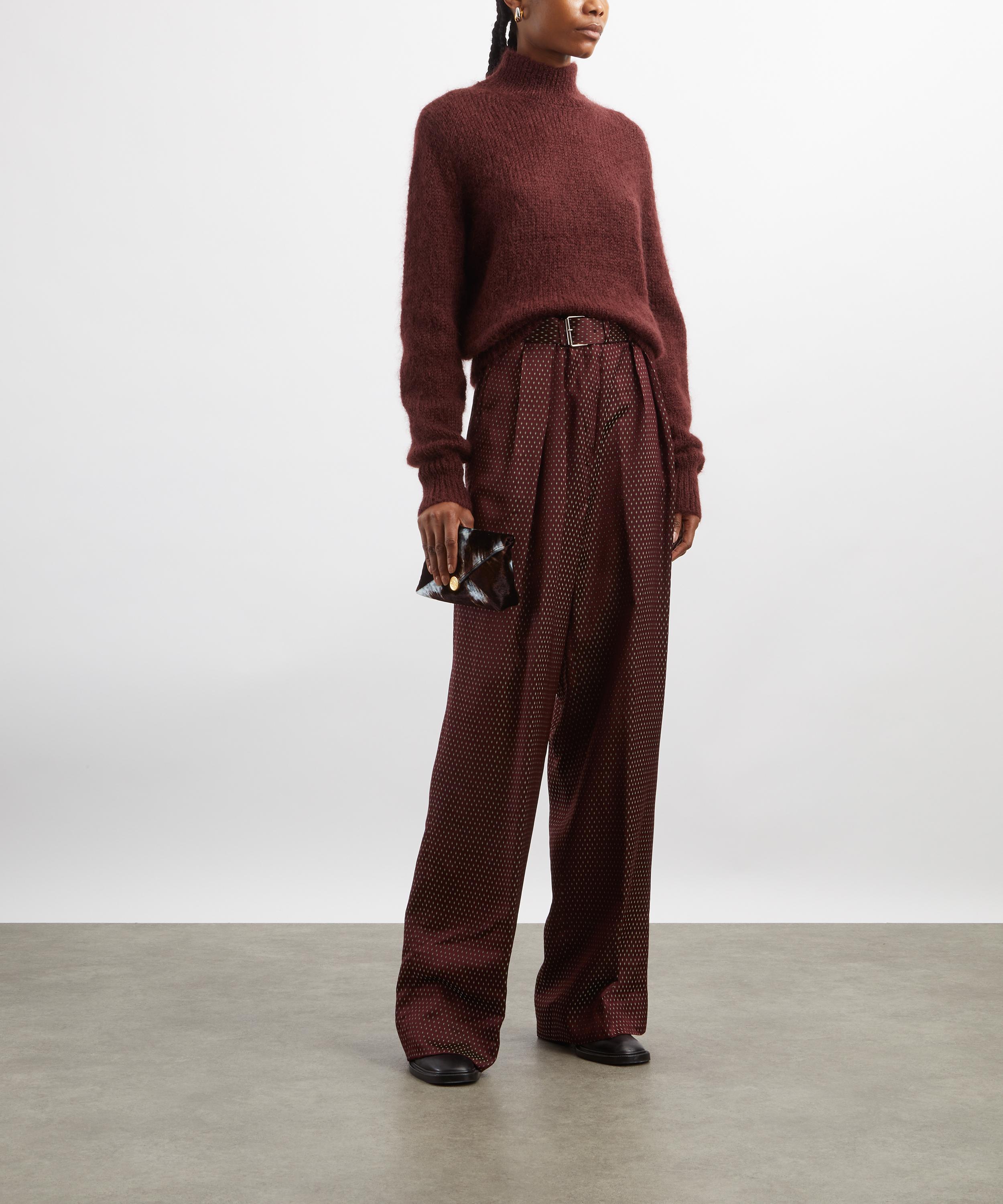 This Loose-Fit Mohair Jumper from Dries Van Noten exemplifies the Belgian label’s avant-garde approach to contemporary fashion.