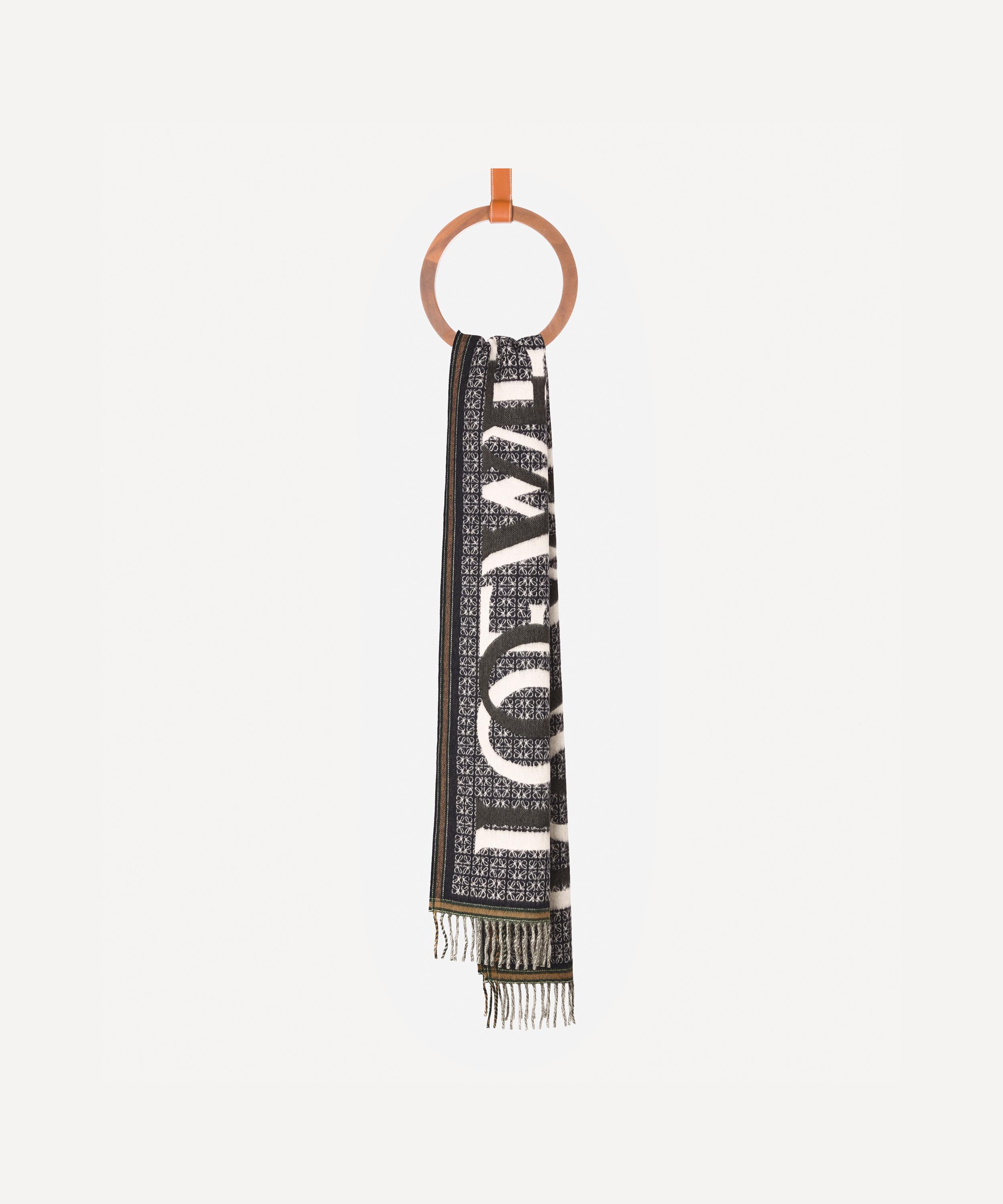 Crafted in a sumptuous wool and cashmere-blend, this jacquard scarf from Spanish fashion house Loewe shines a spotlight on the label's iconic Anagram pattern and Love motif.