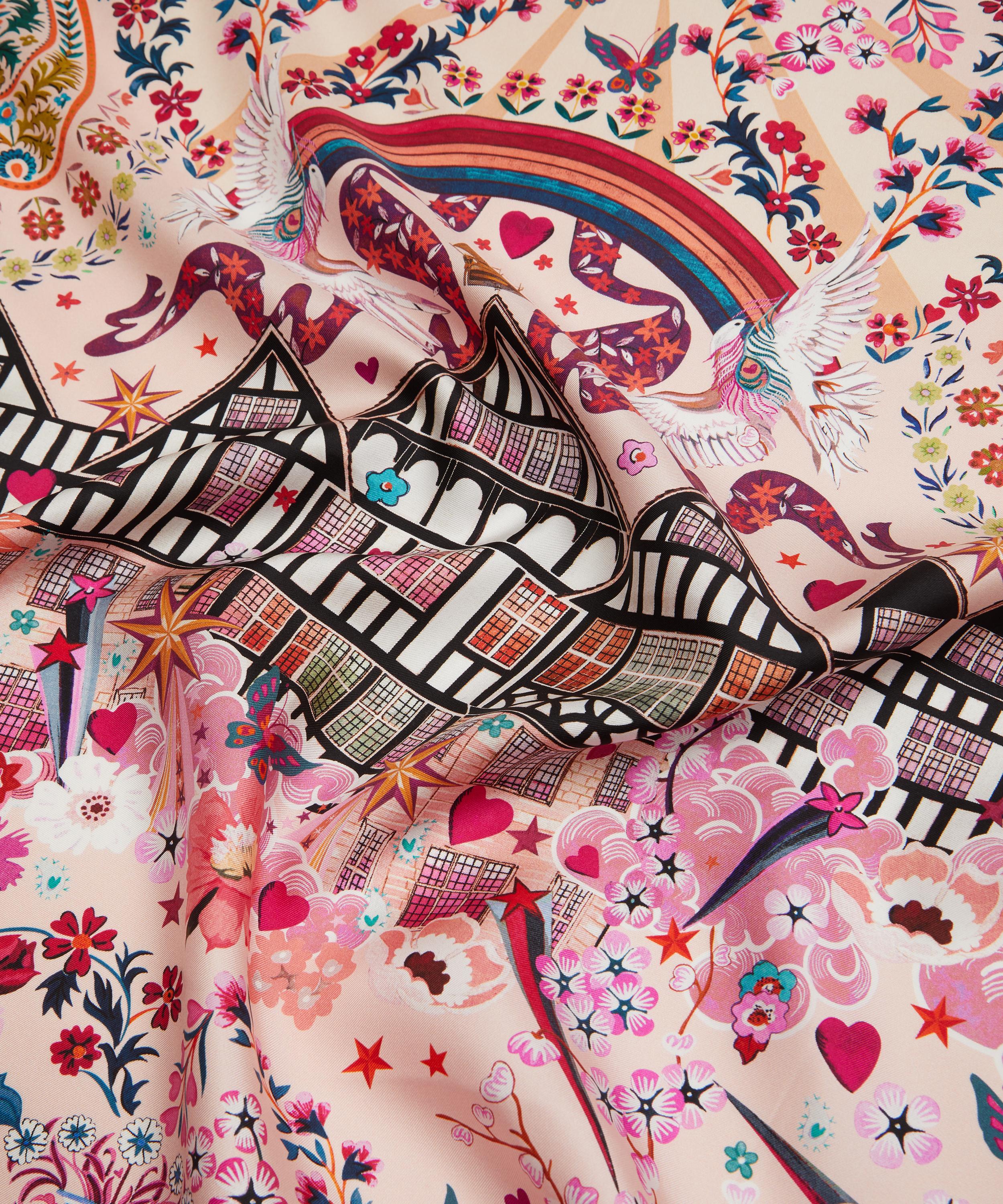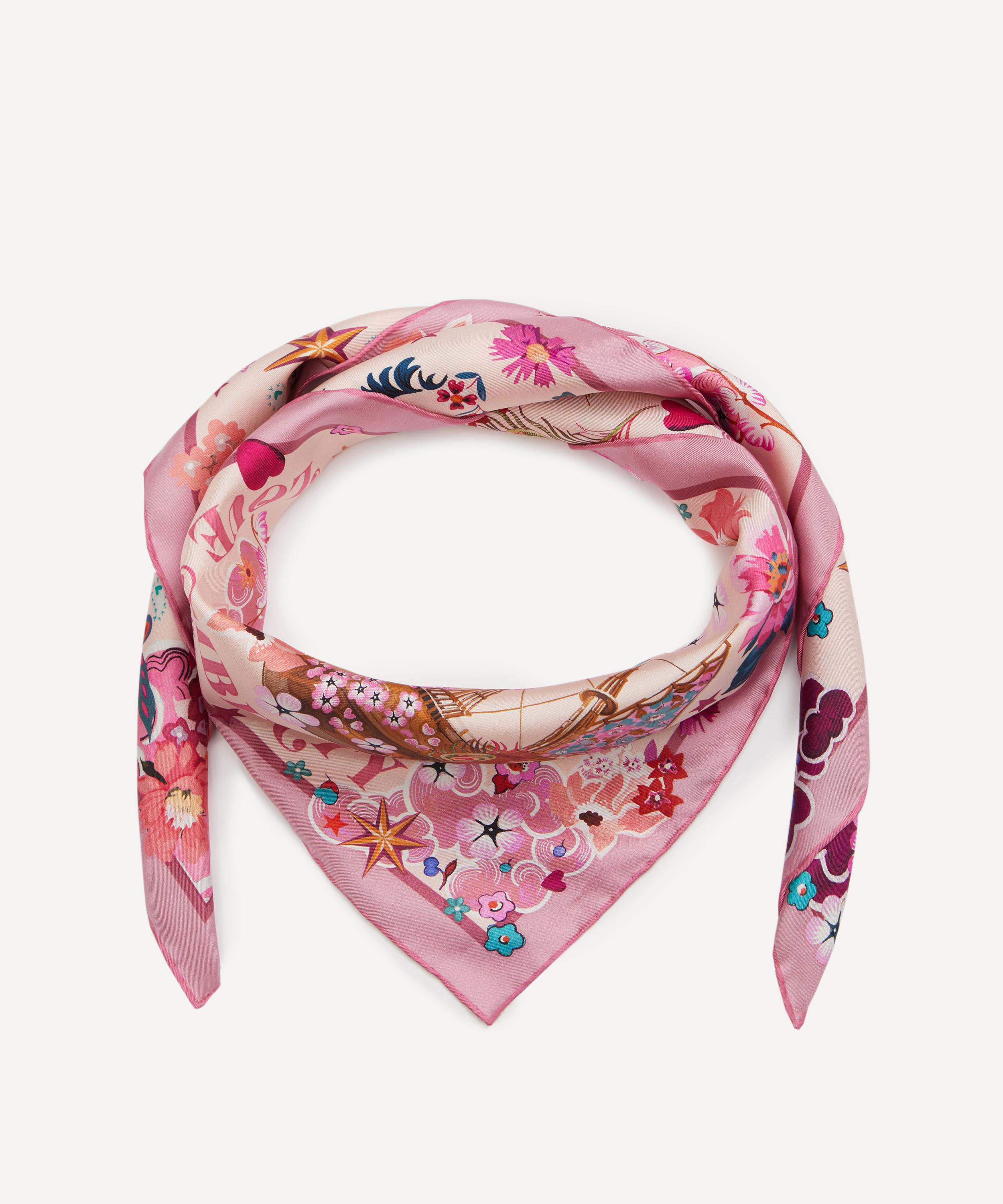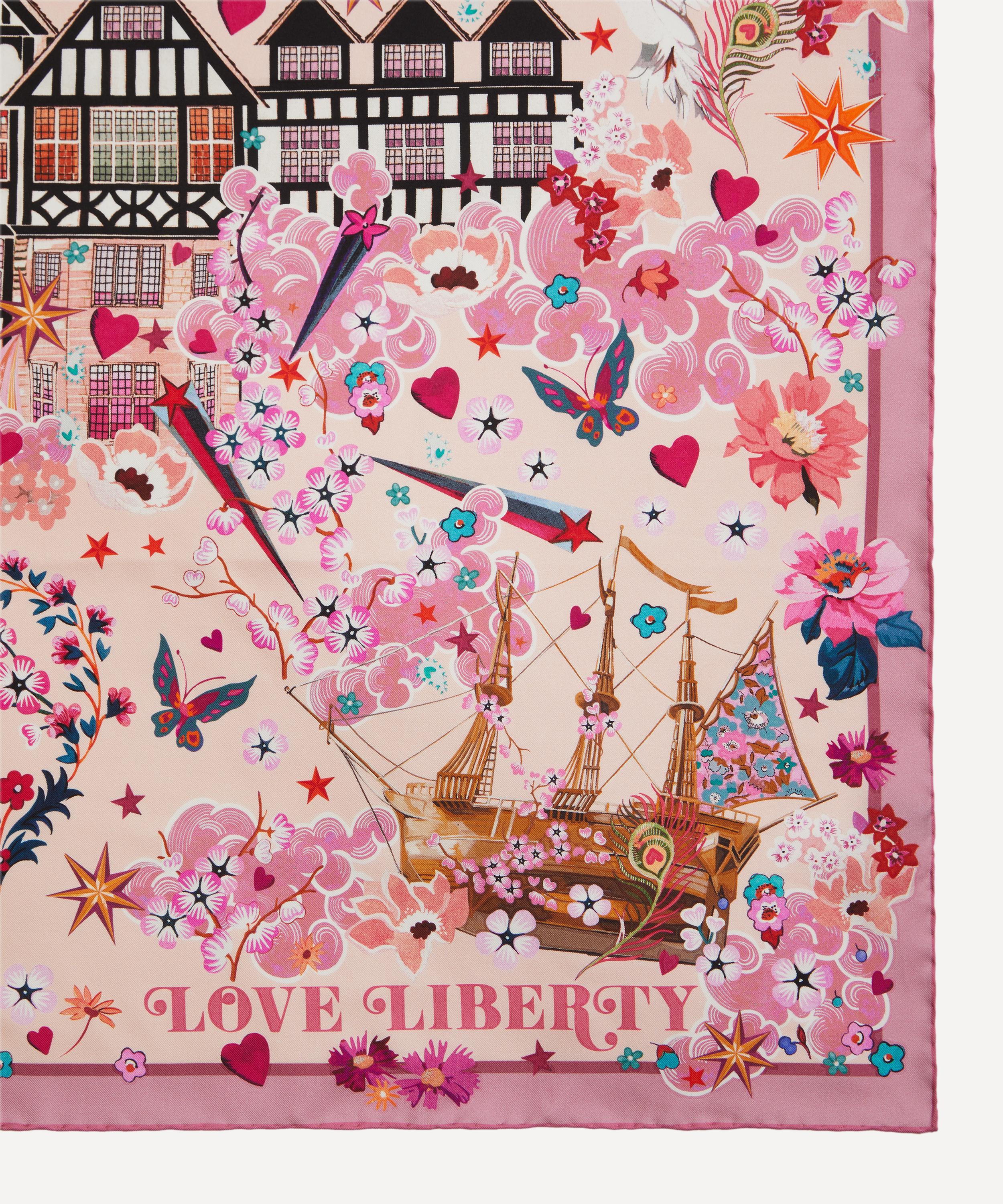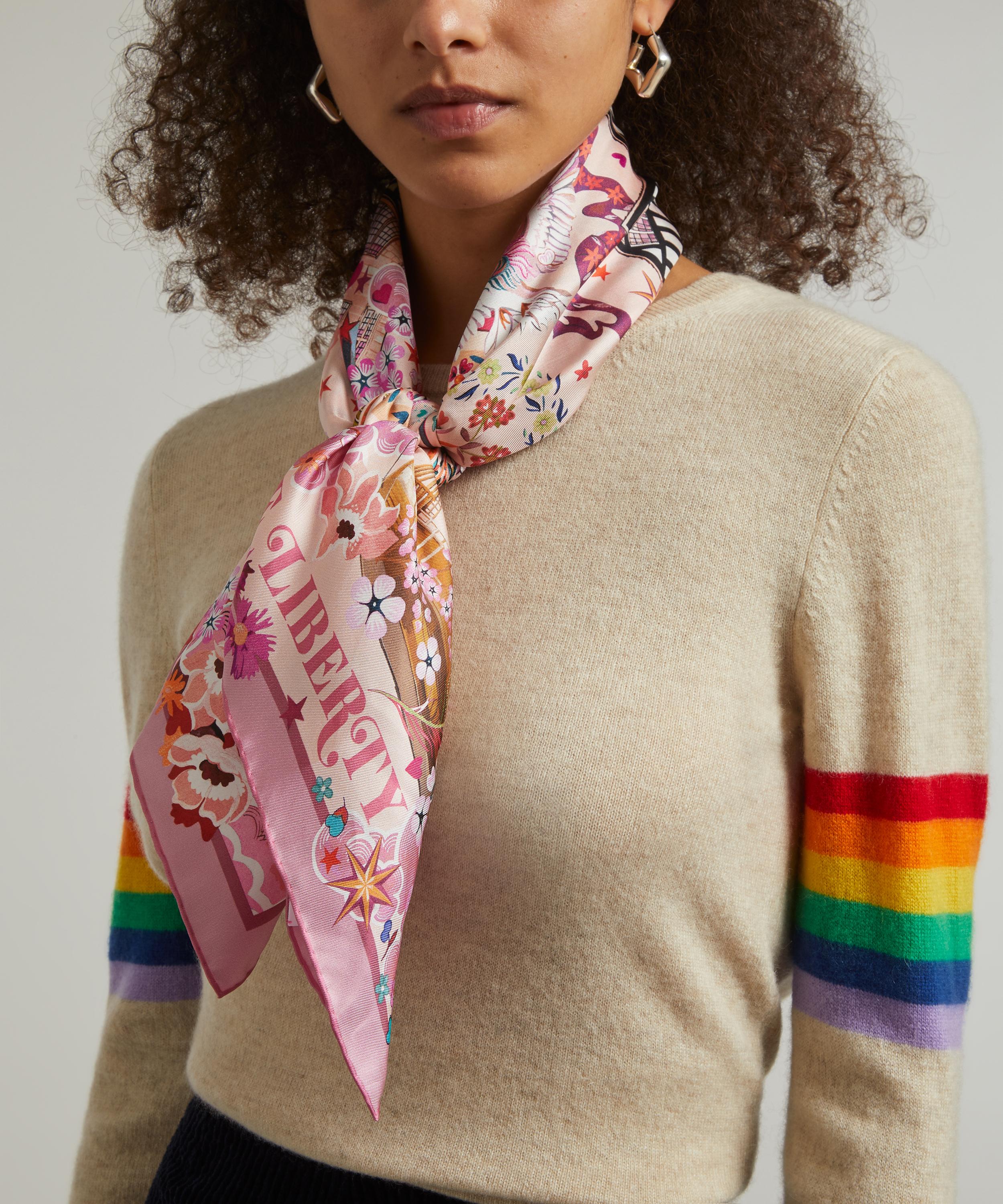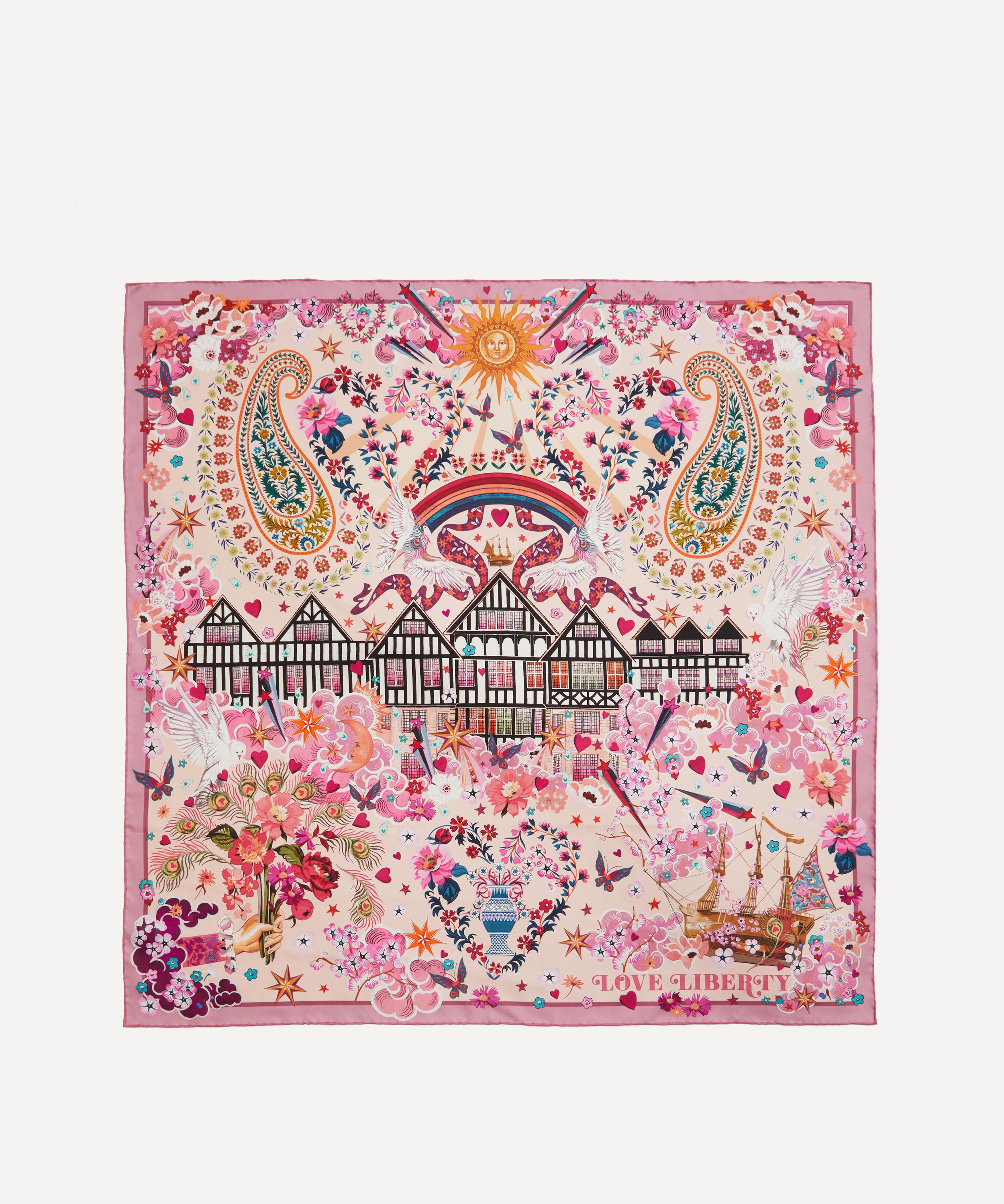 Update your look with this silk twill scarf from Liberty. Featuring a scenic canvas with our unique Tudor store, decorative florals and paisley motifs, it's finished with stitched ends - knot it over outerwear to inject a burst of energy into your daily edit.