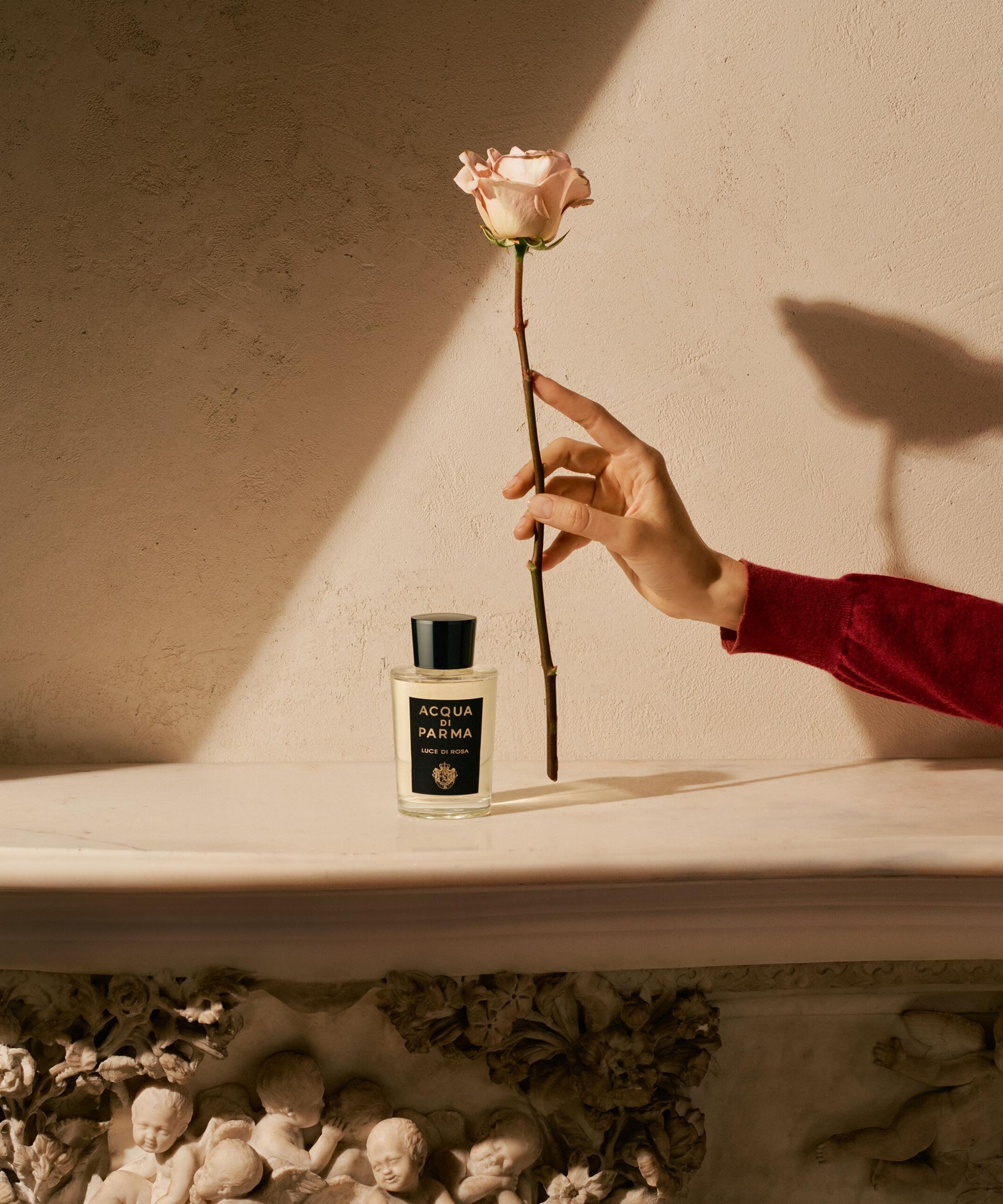 Bathe in the vibrant, clean, and bright aromas of Luce di Rosa eau de parfum from Acqua Di Parma, an enthralling embodiment of contrasts and dynamism.