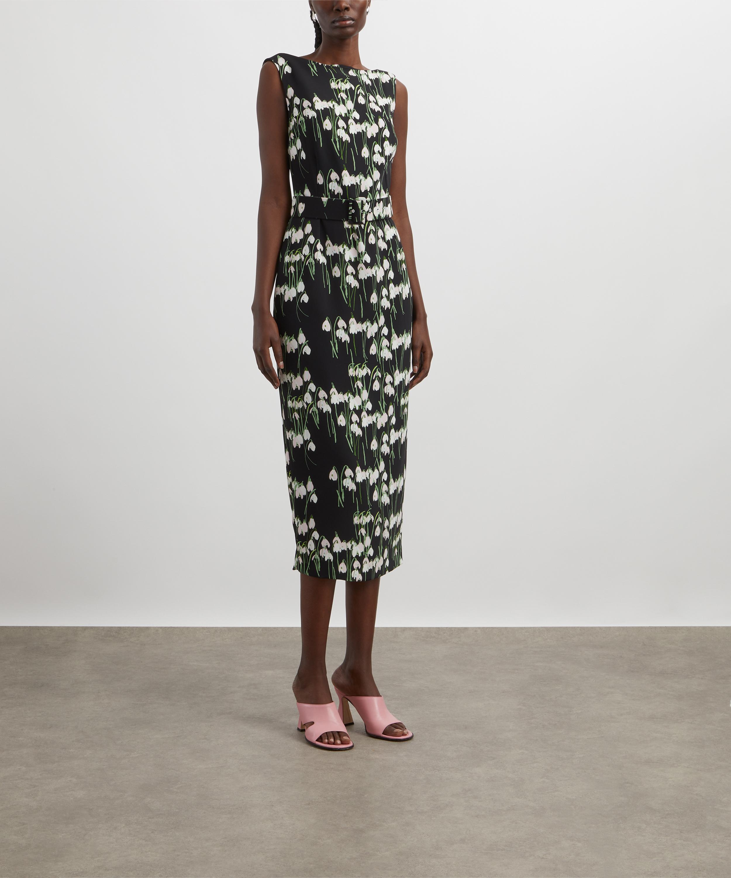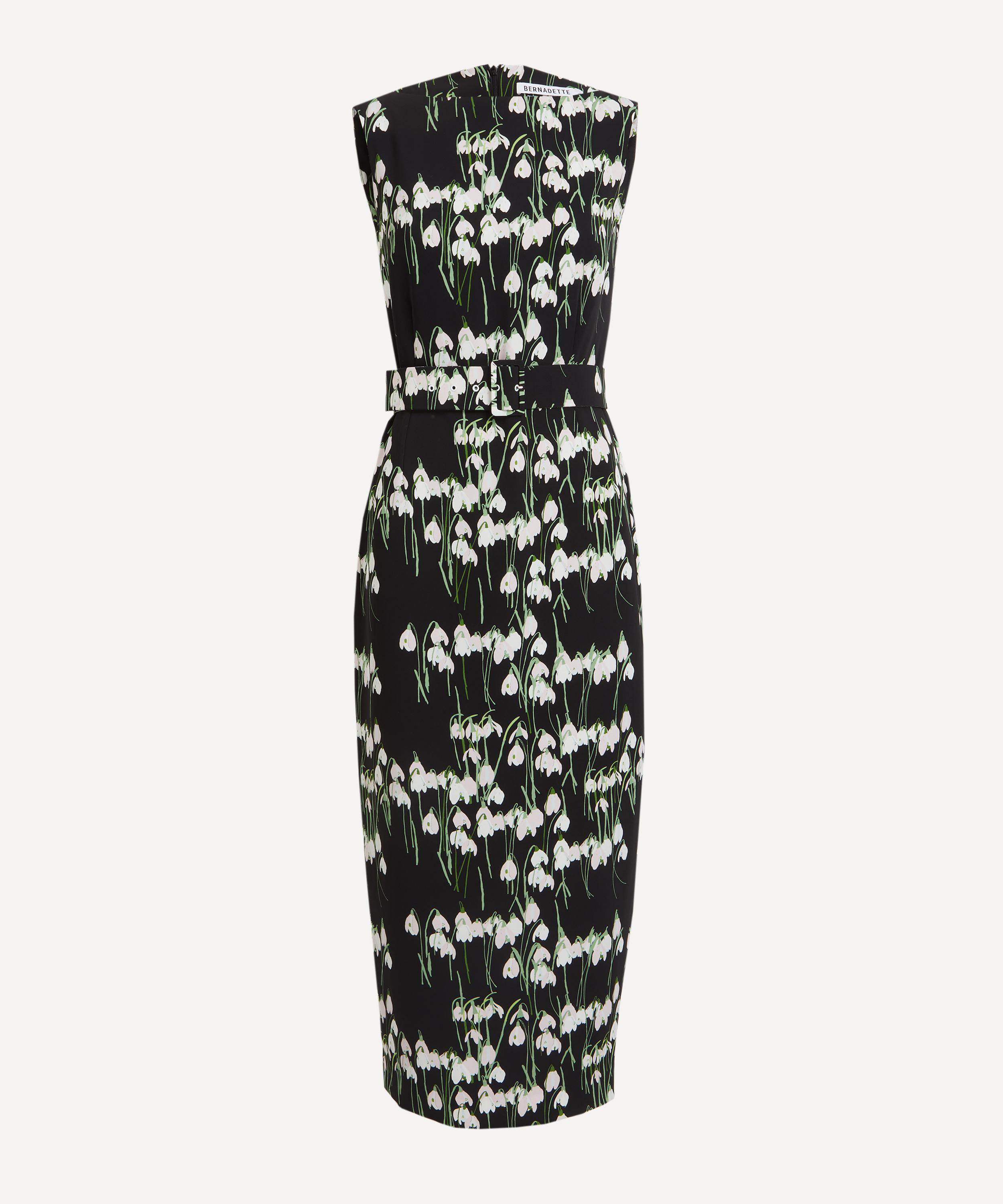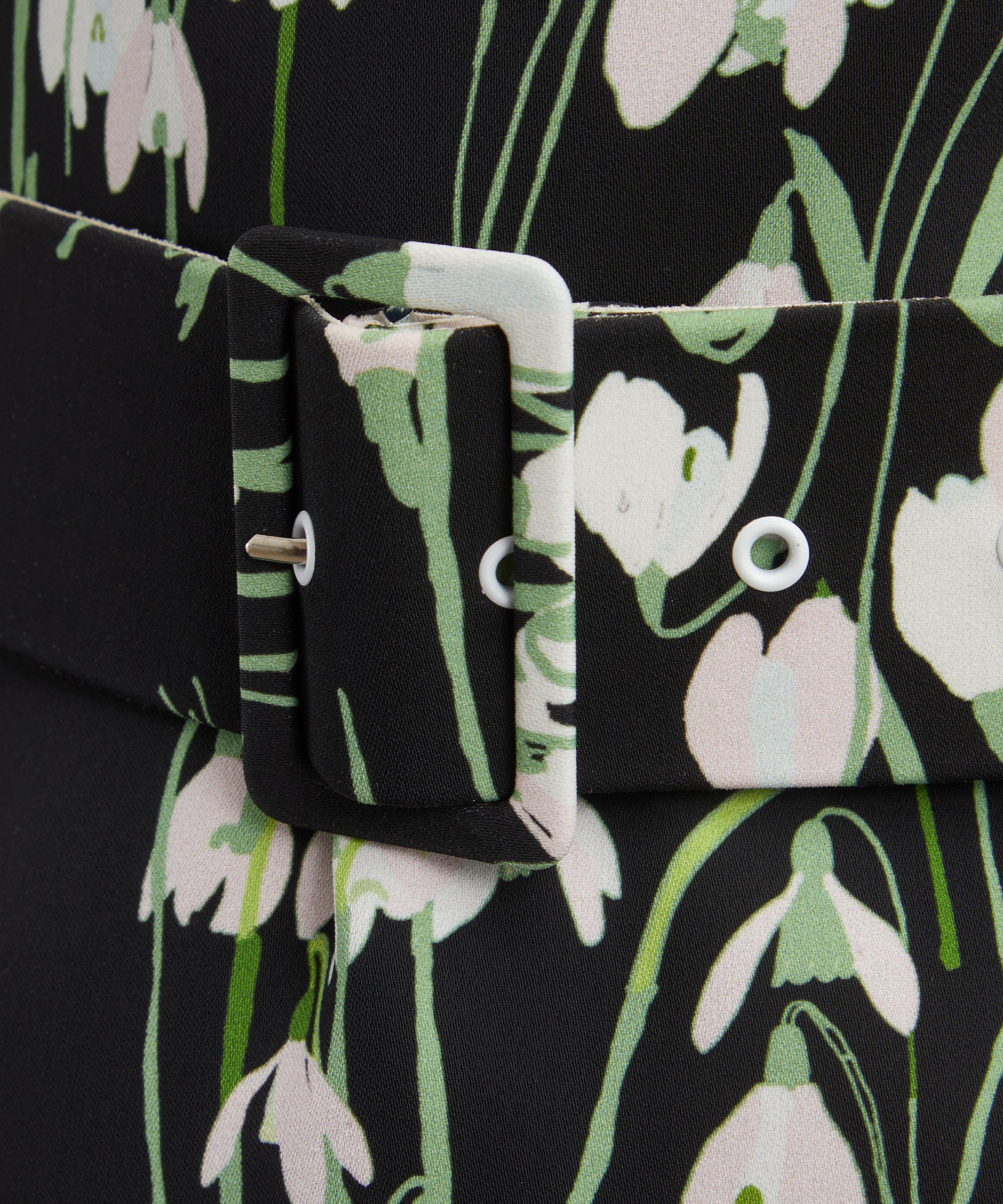 Crafted from crepe for a flattering slim fit, this sheath-style dress exudes elegance. Adorned with a delicate Snowdrop print, it features a boat neckline and a detachable belt to accentuate the waist.