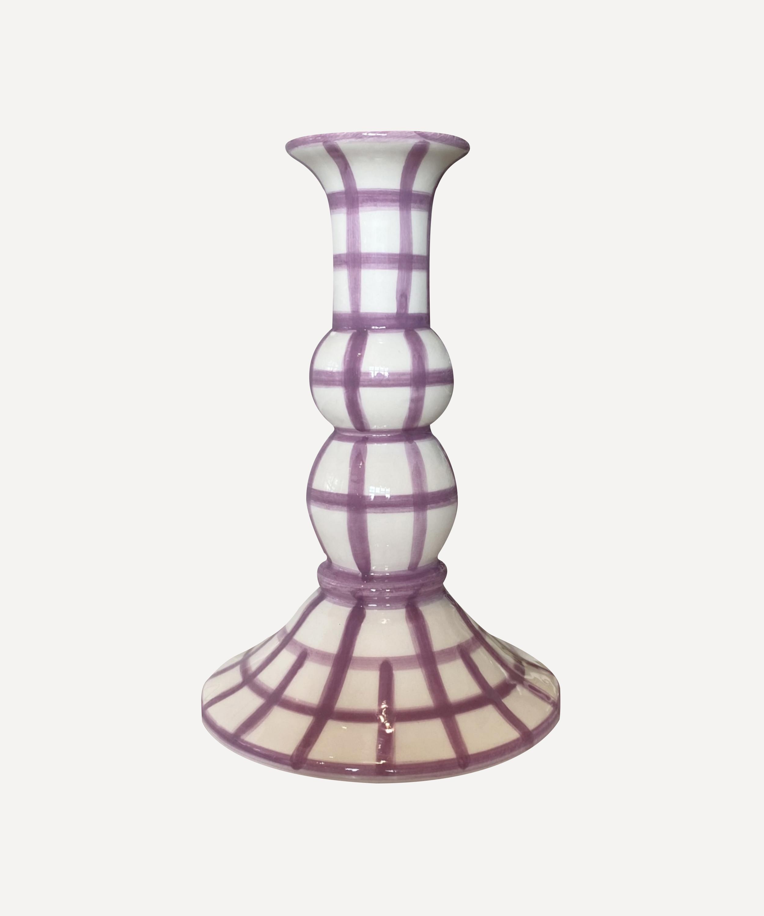 Handmade and hand-painted in Andalusia, Spain, by a family of skilled artisans, this candle holder is decorated in a lilac gingham that will lend a luxe, cottage-core vibe to any setting. The tall, column form is perfect for holding elegant dinner candles – mix and match the different colours to create a mantelscape that’s brimming with character.
