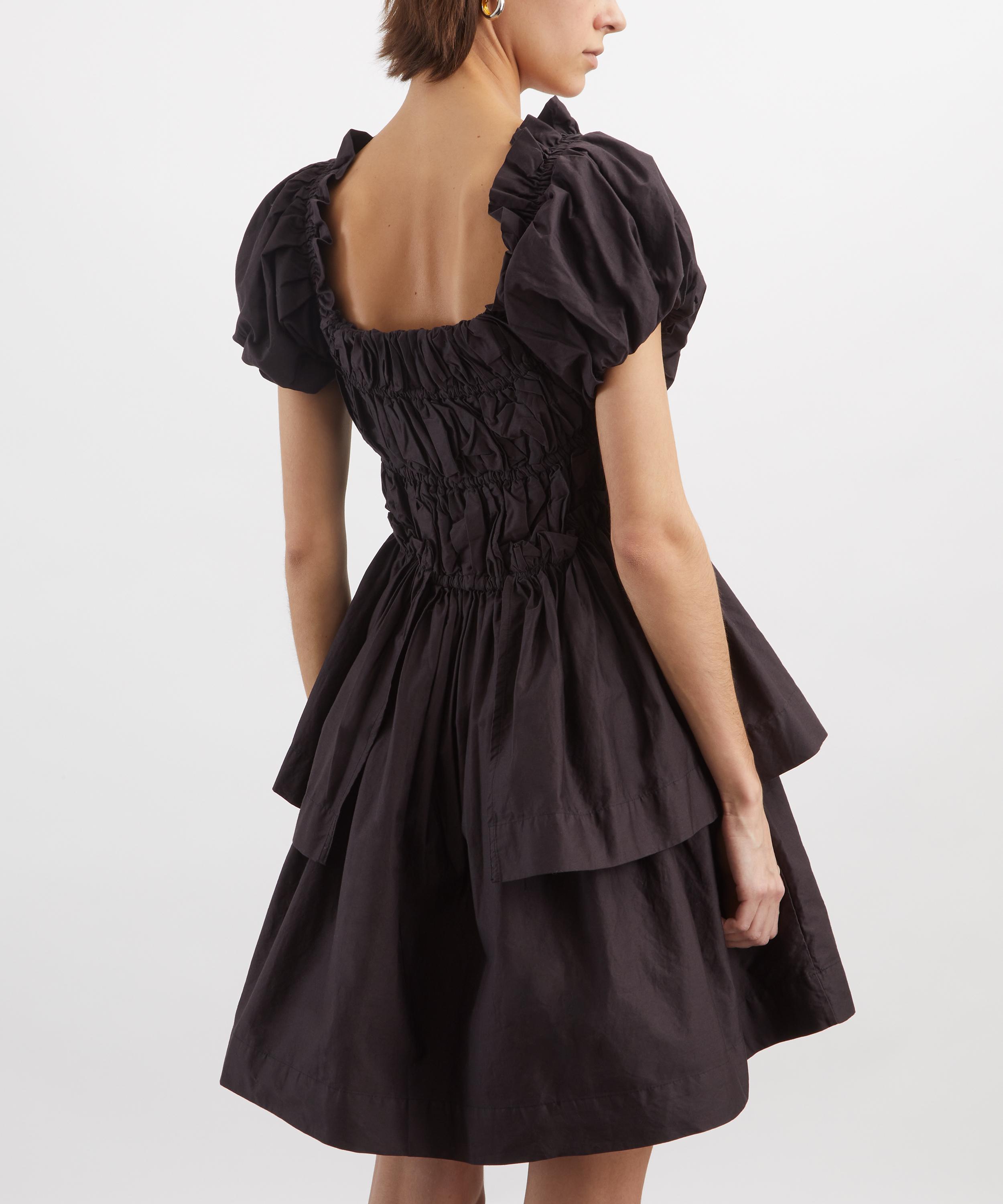 Cut from classic black cotton, this mini dress features a square neckline, short puff sleeves, and an elasticated ruched bodice that falls into a tiered skirt for an easy, flattering fit - making it the perfect throw-on LBD.