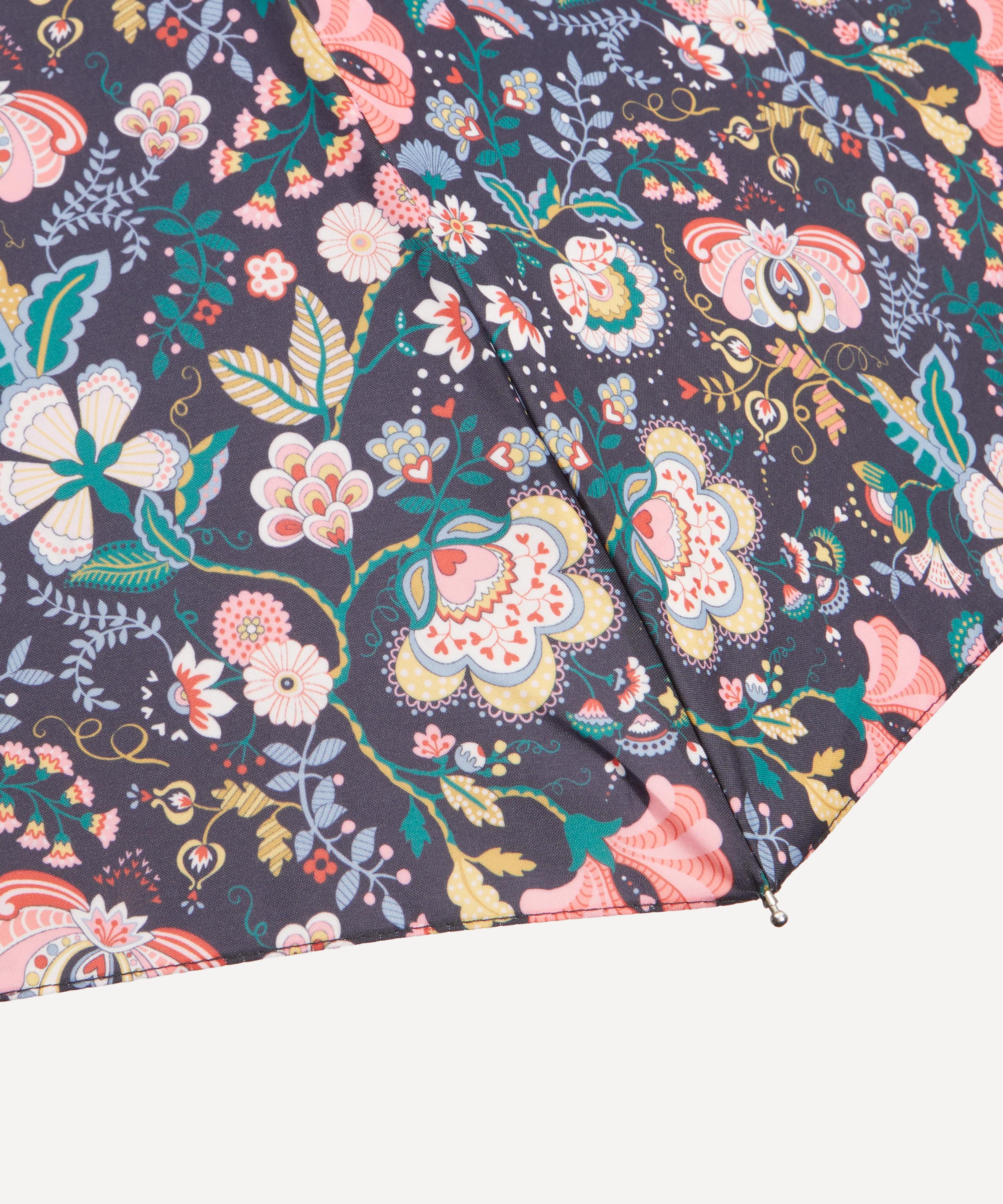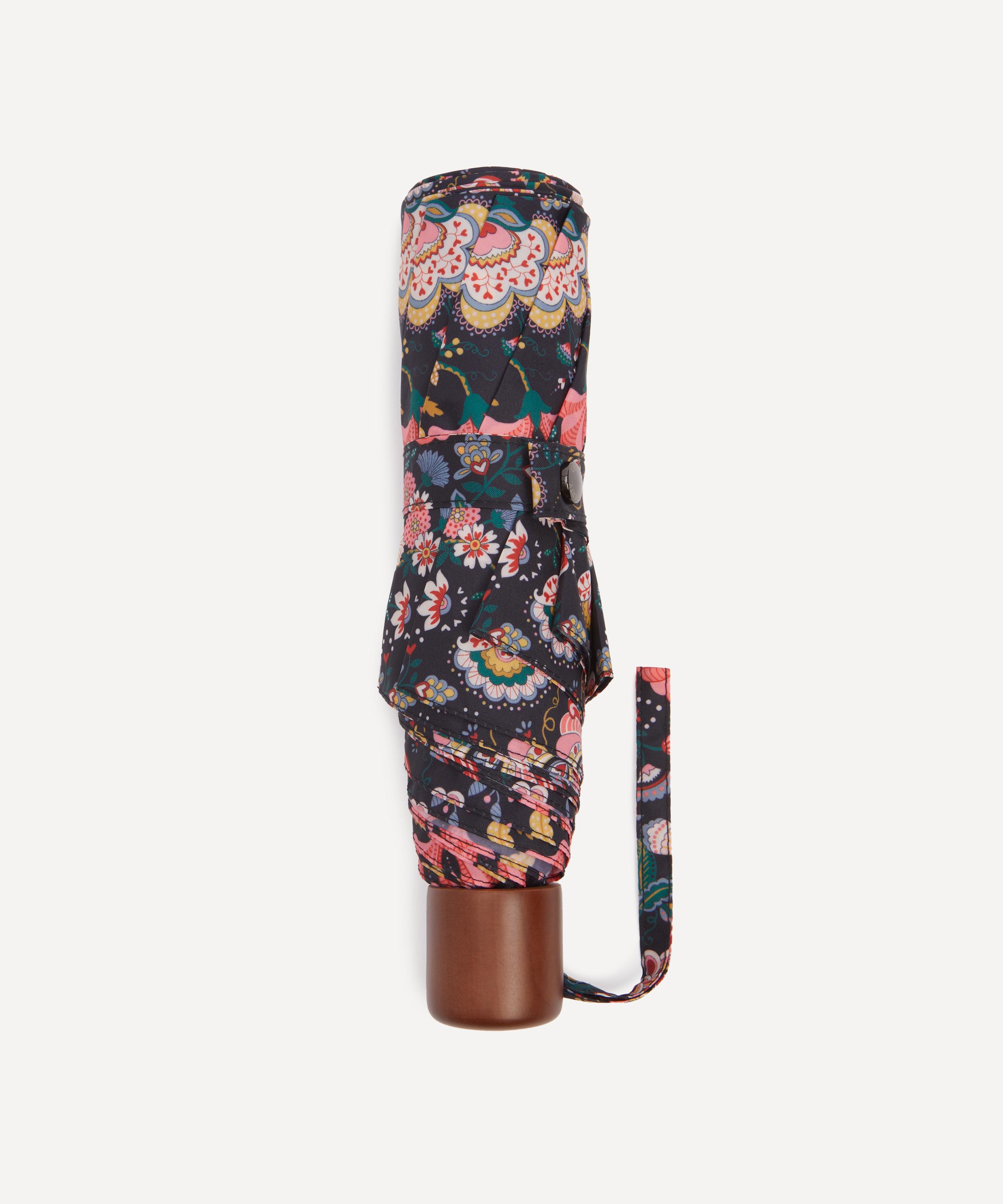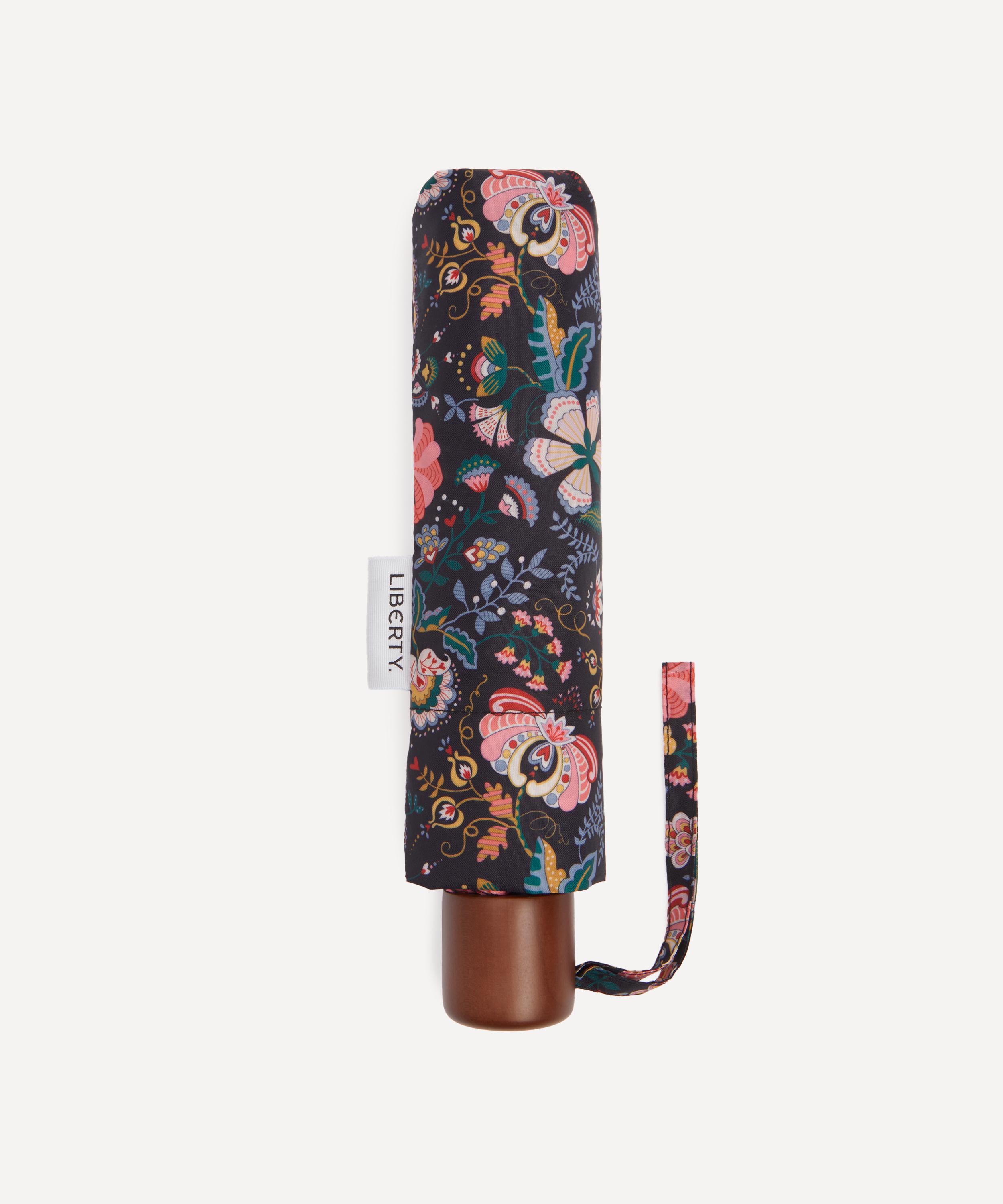 Brighten up gloomy days and stay dry in the rain with Liberty’s umbrella. Both stylish and practical, it’s dressed in our Mabelle Hall print – featuring cornucopia of psychedelia-tinged florals inspired by our archival Tree of Life designs. Our compact umbrellas are lightweight and foldable, small enough to stow away in your handbag and carry wherever you go.
