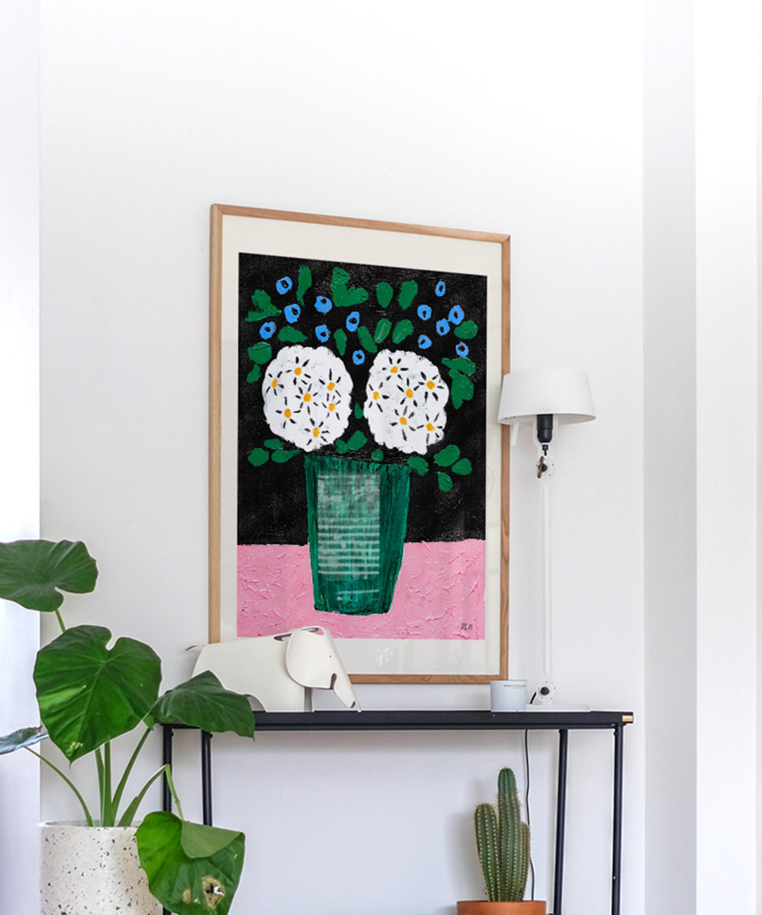 Offering an online emporium of premium posters and art exhibition prints, PSTR Studio seeks to enhance and restore unique vintage works and present unique pieces by brilliant upcoming as well as historically renowned artists. Bouquet in Green Vase features a striking composition produced through the sophisticated giclée printing process on premium matte paper - ensuring exceptional colour accuracy and stunning, vibrant details. Madelen Möllard employs various techniques, including acrylics, cut-outs, and digital art to create her vibrant work, often featuring dreamy and bold shapes and floral motifs. Hang it in an office, hallway or incorporate it into a gallery wall to bring delicate magic to your living space.