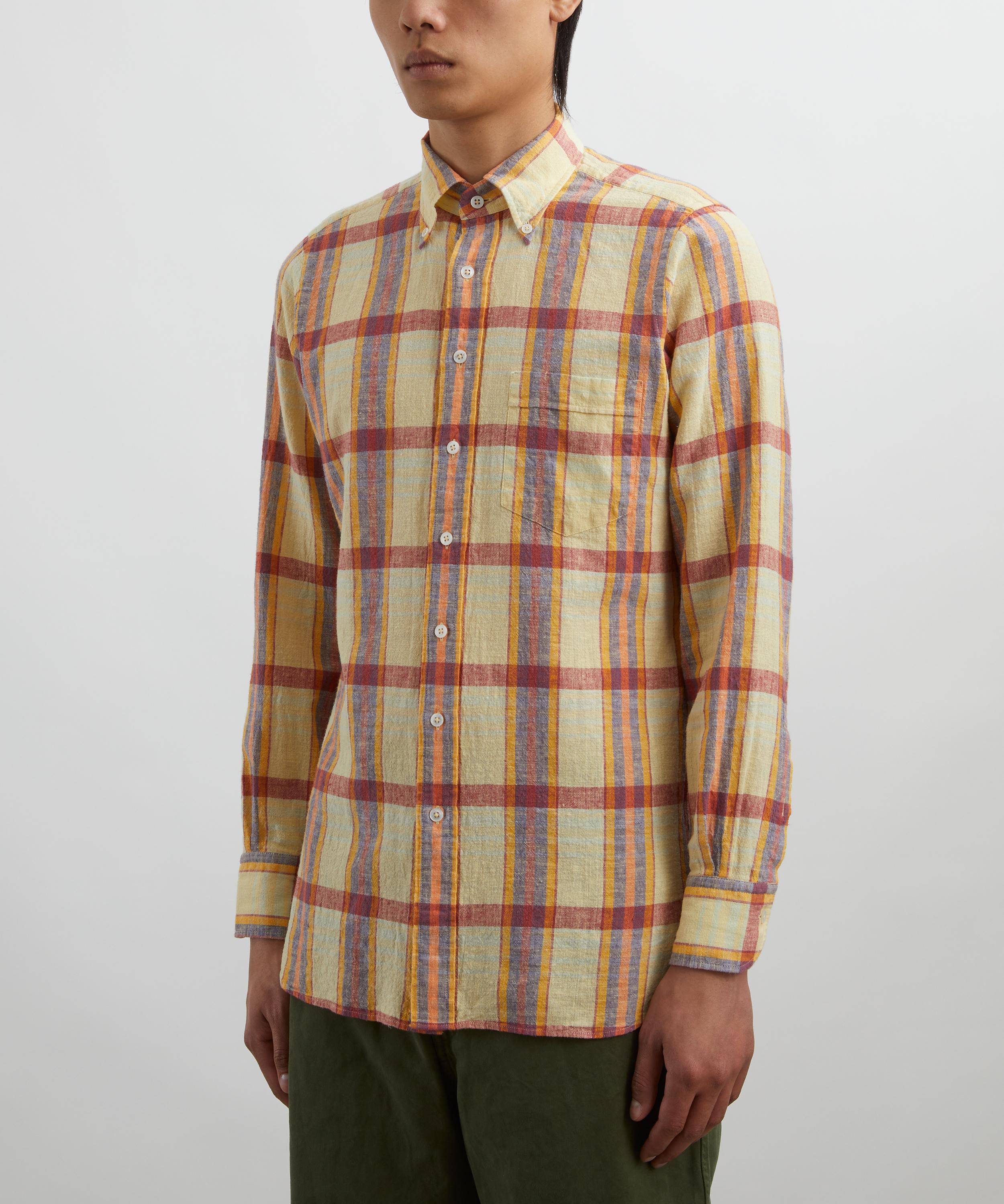 Drake’s Madras Check button-down shirt presents the brand’s flair for contemporary British classics.